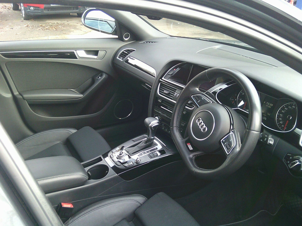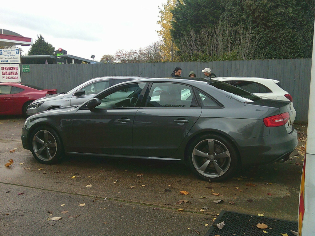 Fantastic looking car and a pure joy to drive, full service history including a recent gear box oil change. This 2014 Audi A4 TFSI Black Edition offers a compelling blend of performance and refinement. Featuring a powerful 2.0 litre petrol engine paired with Audi's renowned four wheel drive system, this Euro 6 compliant model delivers an engaging driving experience. The Black Edition trim enhances its sophisticated appeal, while notable features such as the electronic three zone climate control and the premium Bang and Olufsen sound system ensure comfort and enjoyment for all occupants. For added convenience and safety, it includes automatic headlights activated by a light sensor, rear parking sensors, and the comprehensive Audi Parking System Plus with both front and rear sensors.Experience impressive efficiency with a highlight fuel economy of 42 miles per gallon, alongside low CO2 emissions. This Audi A4 also boasts a swift acceleration of 0 to 62 miles per hour in just 6.4 seconds, demonstrating its dynamic capabilities. These highlights indicate how this vehicle offers a superior combination of performance and economy compared to other similar models on the market.191mo. 12V Power Socket, 12V Power Socket - Luggage Compartment, 19in Alloy Wheels - 5-Arm Rotor Design Titanium Finish, 6.5in Display Screen, ABS - Anti-Lock Braking System, AMI - Audi Music Interface, Acoustic Windscreen, Airbags - Driver, Airbags - Front Passenger, Airbags - Front Side, Airbags - Head System, Alarm - Thatcham Category 1, Audi Parking System Plus, Audi Sound System, Auto Opening Boot Lid, Auto-Dimming Rear-View Mirror, Automatic Wipers with Rain Sensor, Bang and Olufsen Sound System, Black Styling Package, Car Jack, Climate Control - Electronic 3-Zone, Cloth Headlining in Black, Colour Drivers Information System - DIS, Concert Radio - MP3/CD Player, Cruise Control, DAB Digital Radio, Daytime Running Lights, Door Mirrors - Electrically Adjustable and Heated, Door Sill Trims - Aluminium Optic, ESP - Electronic Stability Programme, Electric Windows - Front and Rear, Electrically Adjustable 4-Way Lumbar Support, Electromechanical Parking Brake, Electromechanical Power Steering, Exterior Aluminium Package, First Aid Kit, Front Centre Armrest, Front Fog Lights, Front Passenger Airbag Deactivation Switch, Front and Rear Floor Mats, Halogen Headlights, Headlights - Coming-Leaving Home Function, Headlights - Light Sensor, Headlights - Range Adjustment, ISOFIX Child Seat Preparation Front and Rear, Inlays - Piano Finish - Black, Interior Chrome Package, Mobile Telephone Preparation - Bluetooth Interface, Rear Armrest, Rear Parking Sensors, Remote Central Locking, Rest Recommendation System, Space Saver Spare Wheel, Split-Folding Rear Seats, Sport Suspension, Steering Wheel - 3-Spoke Leather-Multifunction-Flat Bottomed-Shift Paddles, Steering Wheel - Height and Reach Adjustable, Steering Wheel - Multi-function, Tool Kit, Warning Triangle.