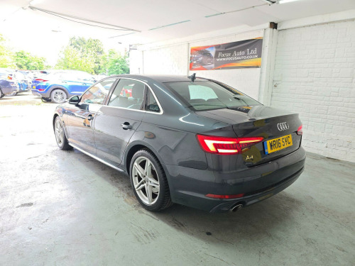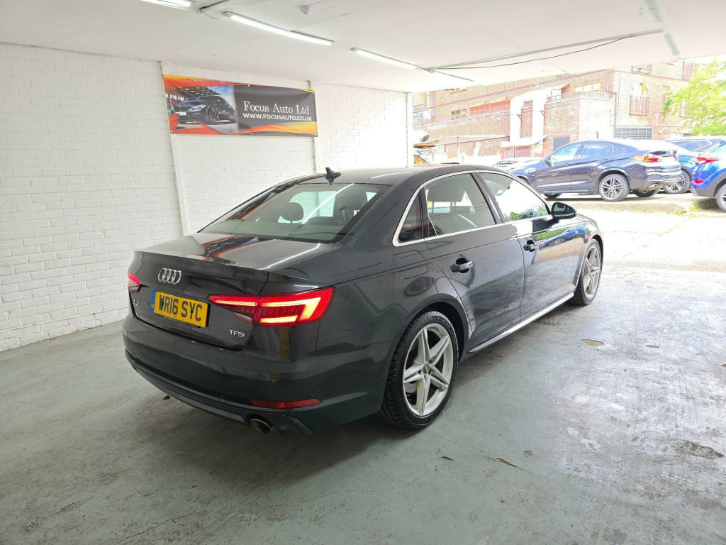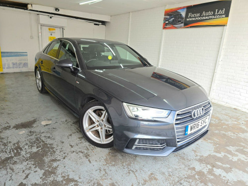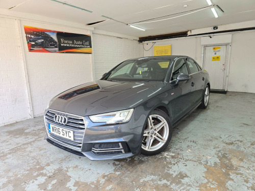 With only two previous owners and a recent service at 89,500 miles, this 2016 Audi A4 TFSI S line is ready for its next chapter. As an S line trim, this A4 features a responsive 2.0L petrol engine and meets Euro 6 emission standards. The car is equipped with a 54L fuel tank, light sensor headlights that automatically switch on, and deluxe 3-zone climate control. Stay connected on the go with the Bluetooth interface for mobile phone preparation. The LED headlights, accompanied by LED rear lights and dynamic rear indicators, enhance visibility and add a touch of modern style. You'll also have peace of mind with the MOT, which is valid until May 2026, and the included 3-month warranty.This Audi A4 stands out with its impressive fuel economy of up to 50 mpg, meaning fewer trips to the petrol station. It also boasts low CO2 emissions, making it a more environmentally conscious choice. Furthermore, it falls into a low insurance group, potentially saving you money on your premiums. The car can accelerate from 0 to 62mph in just 7.2 seconds, offering a blend of efficiency and performance.All vehicles are inspected by trained technicians and are history checked. Test drives and part-exchange are available, and you can choose, buy and drive away the same day. Three months mechanical parts and labour warranty included. Third party extended Warranty (up to 36 months) options are available. Free 12 months AA roadside breakdown Assistance. 5 days drive away Insurance available from £44.99 (term & conditions apply) Our cars are HPI cleared. Competitive finance options are available. NO Admin Fee- NO ADMIN fee on finance application made with us. Admin fee may apply on finance application made from third party( please ask for details). All Major cards are accepted. Look our website www.focusauto.co.uk for further information. v power socket, 18in alloy wheels - 5-twin-spoke star design, 2 x sdxc card readers, 3d map display, 4-way electric lumbar support for front seats, abs - anti-lock braking system, asr - anti slip regulation, aux-in socket, acoustic windscreen, airbags - curtain, airbags - driver, airbags - front passenger, airbags - front side, ambient lighting in the centre console - led, ambient lighting in the front and rear door trims - led, amplifier - 6-channel with total output of 180 watts, anti theft locking wheel bolts, anti-theft alarm, audi connect - 3 month trial, audi drive select, audi smartphone interface, audi sound system, auto-dimming rear-view mirror, automatic wipers with rain sensor, b-pillar trims and triangular rear door trim in high-gloss black, black headlining - black dashboard - black carpet, body coloured door mirrors, cd player, cloth headlining in black, contrast stitching on seats, contrast stitching on steering wheel and gear lever gaiter, cruise control with speed limiter, cupholders, dab digital radio, dis - drivers information system with display screen monochrome tft 5in, deluxe 3-zone climate control, display screen - 7in mmi colour display, door mirrors - electrically adjustable and heated with built-in led indicators, door sill trims with s line logo, dynamic led indicators - rear, dynamic route guidance with tmcpro, edl - electronic differential lock, esc - electronic stabilisation control, electric boot lid release, electric windows - front and rear, electromechanical parking brake, electromechanical power steering, emergency braking function, exhaust tailpipe - chrome plated, first aid kit, front centre armrest, front passenger airbag deactivation switch, front sports seats with s embossed logo, front and rear floor mats, front and rear roof module, fuel computer, fuel tank 54l, gear lever knob in black perforated leather, glovebox - illuminated, head restraints - front adjustable, headlights - dynamic adjustment, headlights - light sensor, heat insulating glass - windscreen and side windows, high gloss package, isofix child seat mounting for front passenger with airbag deactivation, isofix child seat preparation for rear seats with top tether, inlays - matt brushed aluminium, interior door handles - led illuminated, keyless go, led courtesy lighting on the exterior door handles for easy entry and exit in the dark, led daytime running lights, led entry lights - front and rear, led footwell lights - front and rear, led headlights with led rear lights and dynamic rear indicators, led illuminated cup holder, led illuminated vanity mirrors, led interior light package, led rear lights, luggage compartment - lighting, luggage compartment mat, mmi controller with integrated joystick function, mmi navigation, mmi search, manual height adjustment for front seats, mobile telephone preparation - bluetooth interface, model and engine technology badges at rear, multi collision brake assist, natural voice recognition, non-smoking package, parking sensors - rear, passive door warning lights, pedals and footrest - stainless steel, pop-up bonnet for pedestrian protection, pre-sense city, radiator grille - twilight grey matt with inlays in chrome, rear centre armrest, rear diffuser in twilight grey matt, rear grille - black grained, remote boot release, remote central locking, roof frame and window trims in aluminium, s line badges on front wings, s line front and rear bumpers and side skirts, seat belt monitoring, seats - split folding rear - 40-20-40, side air inlet grille in titan black matt with two side inlays in chrome, space saver spare wheel, speakers x10 including subwoofer, sport suspension, steering wheel - height and reach adjustable, steering wheel - multi-function, steering wheel - s line 3-spoke leather, steering wheel - sports, sun visors - with vanity mirror, tailgate lighting, tool kit and car jack, towbar preparation, tyre pressure warning light, usb connection x2, variable restraint system, voice control, warning triangle