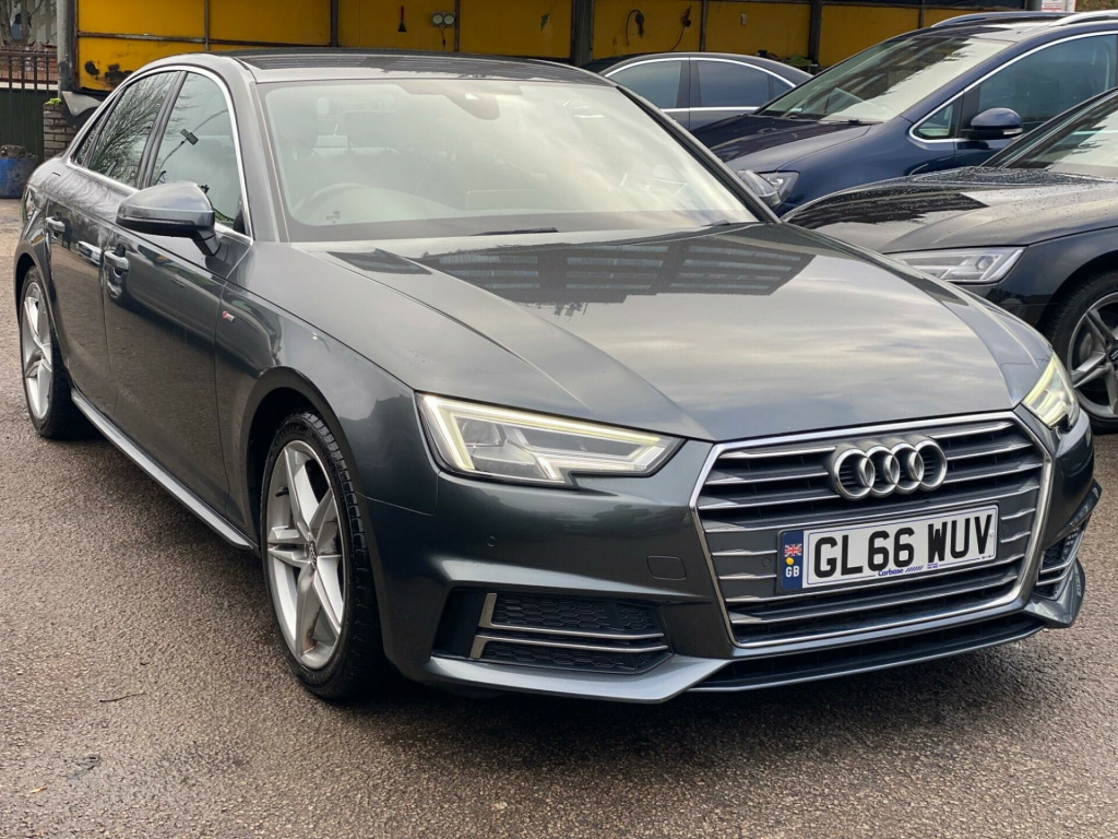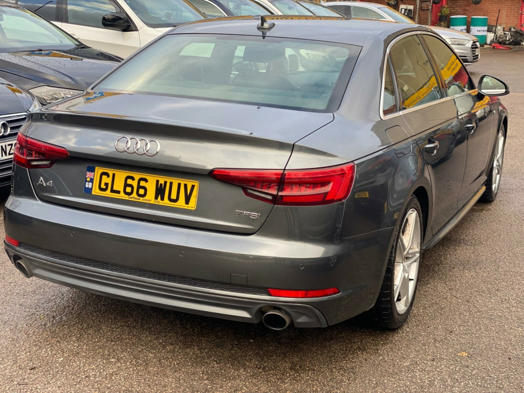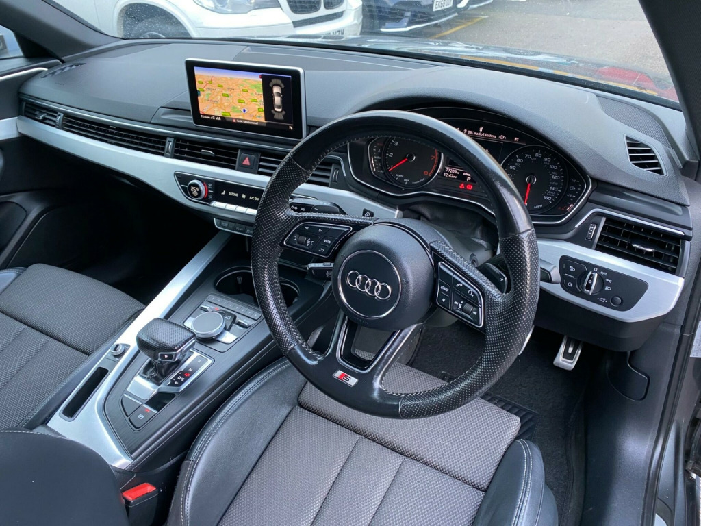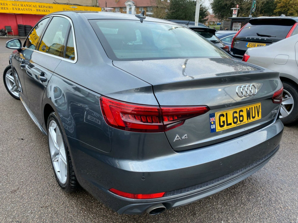 Cars Yard is delighted to present this stunning AUDI A4 2.0 TFSI 190 S LINE ((((((***FREE 6 MONTHS WARRANTY + 12 MONTHS FREE AA BREAKDOWN COVER ****))))) USED BY 2 FORMER KEEPER, SERVICE HISTORY, GREAT CONDITION IN AND OUT ***Excellent condition*** 5 Day Driveaway Insurance at Additional cost available for cars up to 10 years old STS, FINANCE AVAILABLE, CALL US ON 02045392878. AA Approved Dealer, FCA registered Dealer ar side airbags, parking assistance pack, 12v power socket, 18in alloy wheels - 5-twin-spoke star design, 2 x sdxc card readers, 3d map display, 4-way electric lumbar support for front seats, abs - anti-lock braking system, asr - anti slip regulation, aux-in socket, acoustic windscreen, airbags - curtain, airbags - driver, airbags - front passenger, airbags - front side, ambient lighting in the centre console - led, ambient lighting in the front and rear door trims - led, amplifier - 6-channel with total output of 180 watts, anti theft locking wheel bolts, anti-theft alarm, audi connect - 3 month trial, audi drive select, audi smartphone interface, audi sound system, auto-dimming rear-view mirror, automatic wipers with rain sensor, b-pillar trims and triangular rear door trim in high-gloss black, black headlining - black dashboard - black carpet, body coloured door mirrors, cd player, cloth headlining in black, contrast stitching on seats, contrast stitching on steering wheel and gear lever gaiter, cruise control system with freewheeling capability and speed limiter, cupholders, dab digital radio, dis - drivers information system with display screen monochrome tft 5in, deluxe 3-zone climate control, display screen - 7in mmi colour display, door mirrors - electrically adjustable and heated with built-in led indicators, door sill trims with s line logo, dynamic led indicators - rear, dynamic route guidance with tmcpro, edl - electronic differential lock, esc - electronic stabilisation control, electric boot lid release, electric windows - front and rear, electromechanical parking brake, electromechanical power steering, emergency braking function, exhaust tailpipe - chrome plated, first aid kit, front centre armrest, front passenger airbag deactivation switch, front sports seats with s embossed logo, front and rear floor mats, front and rear roof module, fuel computer, fuel tank 54l, gear lever knob in black perforated leather, glovebox - illuminated, head restraints - front adjustable, headlights - dynamic adjustment, headlights - light sensor, heat insulating glass - windscreen and side windows, high gloss package, isofix child seat mounting for front passenger with airbag deactivation, isofix child seat preparation for rear seats with top tether, inlays - matt brushed aluminium, interior door handles - led illuminated, keyless go, led courtesy lighting on the exterior door handles for easy entry and exit in the dark, led daytime running lights, led entry lights - front and rear, led footwell lights - front and rear, led headlights with led rear lights and dynamic rear indicators, led illuminated cup holder, led illuminated vanity mirrors, led interior light package, led rear lights, luggage compartment - lighting, luggage compartment mat, mmi controller with integrated joystick function, mmi navigation, mmi search, manual height adjustment for front seats, mobile telephone preparation - bluetooth interface, model and engine technology badges at rear, multi collision brake assist, natural voice recognition, non-smoking package, parking sensors - rear, passive door warning lights, pedals and footrest - stainless steel, pop-up bonnet for pedestrian protection, pre-sense city, radiator grille - twilight grey matt with inlays in chrome, rear centre armrest, rear diffuser in twilight grey matt, rear grille - black grained, remote boot release, remote central locking, roof frame and window trims in aluminium, s line badges on front wings, s line front and rear bumpers and side skirts, seat belt monitoring, seats - split folding rear - 40-20-40, side air inlet grille in titan black matt with two side inlays in chrome, space saver spare wheel, speakers x10 including subwoofer, sport suspension, steering wheel - gear shift paddles, steering wheel - height and reach adjustable, steering wheel - multi-function, steering wheel - s line 3-spoke leather, steering wheel - sports, sun visors - with vanity mirror, tailgate lighting, tool kit and car jack, towbar preparation, tyre pressure warning light, usb connection x2, variable restraint system, voice control, warning triangle