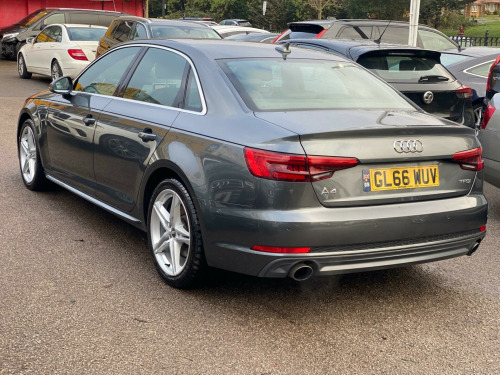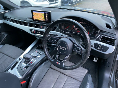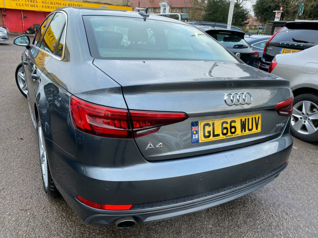 Cars Yard is delighted to present this stunning AUDI A4 2.0 TFSI 190 S LINE ((((((***FREE 6 MONTHS WARRANTY + 12 MONTHS FREE AA BREAKDOWN COVER ****))))) USED BY 2 FORMER KEEPER, SERVICE HISTORY, GREAT CONDITION IN AND OUT ***Excellent condition*** 5 Day Driveaway Insurance at Additional cost available for cars up to 10 years old STS, FINANCE AVAILABLE, CALL US ON 02045392878. AA Approved Dealer, FCA registered Dealer. 12V Power Socket, 18in Alloy Wheels - 5-Twin-Spoke Star Design, 2 x SDXC Card Readers, 3D Map Display, 4-Way Electric Lumbar Support for Front Seats, ABS - Anti-Lock Braking System, ASR - Anti Slip Regulation, AUX-IN Socket, Acoustic Windscreen, Airbags - Curtain, Airbags - Driver, Airbags - Front Passenger, Airbags - Front Side, Ambient Lighting in the Centre Console - LED, Ambient Lighting in the Front and Rear Door Trims - LED, Amplifier - 6-Channel with Total Output of 180 Watts, Anti Theft Locking Wheel Bolts, Anti-Theft Alarm, Audi Connect - 3 Month Trial, Audi Drive Select, Audi Smartphone Interface, Audi Sound System, Auto-Dimming Rear-View Mirror, Automatic Wipers with Rain Sensor, B-pillar Trims and Triangular Rear Door Trim in High-gloss Black, Black Headlining - Black Dashboard - Black Carpet, Body Coloured Door Mirrors, CD Player, Cloth Headlining in Black, Contrast Stitching on Seats, Contrast Stitching on Steering Wheel and Gear Lever Gaiter, Cruise Control System with Freewheeling Capability and Speed Limiter, Cupholders, DAB Digital Radio, DIS - Drivers Information System with Display Screen Monochrome TFT 5in, Deluxe 3-Zone Climate Control, Display Screen - 7in MMI Colour Display, Door Mirrors - Electrically Adjustable and Heated with Built-in LED Indicators, Door Sill Trims with S Line Logo, Dynamic LED Indicators - Rear, Dynamic Route Guidance with TMCpro, EDL - Electronic Differential Lock, ESC - Electronic Stabilisation Control, Electric Boot Lid Release, Electric Windows - Front and Rear, Electromechanical Parking Brake, Electromechanical Power Steering, Emergency Braking Function, Exhaust Tailpipe - Chrome Plated, First Aid Kit, Front Centre Armrest, Front Passenger Airbag Deactivation Switch, Front Sports Seats with S Embossed Logo, Front and Rear Floor Mats, Front and Rear Roof Module, Fuel Computer, Fuel Tank 54L, Gear Lever Knob in Black Perforated Leather, Glovebox - Illuminated, Head Restraints - Front Adjustable, Headlights - Dynamic Adjustment, Headlights - Light Sensor, Heat Insulating Glass - Windscreen and Side Windows, High Gloss Package, ISOFIX Child Seat Mounting for Front Passenger with Airbag Deactivation, ISOFIX Child Seat Preparation for Rear Seats with Top Tether, Inlays - Matt Brushed Aluminium, Interior Door Handles - LED Illuminated, Keyless Go, LED Courtesy Lighting on the Exterior Door Handles for Easy Entry and Exit in the Dark, LED Daytime Running Lights, LED Entry Lights - Front and Rear, LED Footwell Lights - Front and Rear, LED Headlights with LED Rear Lights and Dynamic Rear Indicators, LED Illuminated Cup Holder, LED Illuminated Vanity Mirrors, LED Interior Light Package, LED Rear Lights, Luggage Compartment - Lighting, Luggage Compartment Mat, MMI Controller with Integrated Joystick Function, MMI Navigation, MMI Search, Manual Height Adjustment for Front Seats, Mobile Telephone Preparation - Bluetooth Interface, Model and Engine Technology Badges at Rear, Multi Collision Brake Assist, Natural Voice Recognition, Non-Smoking Package, Parking Sensors - Rear, Passive Door Warning Lights, Pedals and Footrest - Stainless Steel, Pop-Up Bonnet for Pedestrian Protection, Pre-Sense City, Radiator Grille - Twilight Grey Matt with Inlays in Chrome, Rear Centre Armrest, Rear Diffuser in Twilight Grey Matt, Rear Grille - Black Grained, Remote Boot Release, Remote Central Locking, Roof Frame and Window Trims in Aluminium, S Line Badges on Front Wings, S line Front and Rear Bumpers and Side Skirts, Seat Belt Monitoring, Seats - Split Folding Rear - 40-20-40, Side Air Inlet Grille in Titan Black Matt with Two Side Inlays in Chrome, Space Saver Spare Wheel, Speakers x10 Including Subwoofer, Sport Suspension, Steering Wheel - Gear Shift Paddles, Steering Wheel - Height and Reach Adjustable, Steering Wheel - Multi-function, Steering Wheel - S Line 3-Spoke Leather, Steering Wheel - Sports, Sun Visors - with Vanity Mirror, Tailgate Lighting, Tool Kit and Car Jack, Towbar Preparation, Tyre Pres.