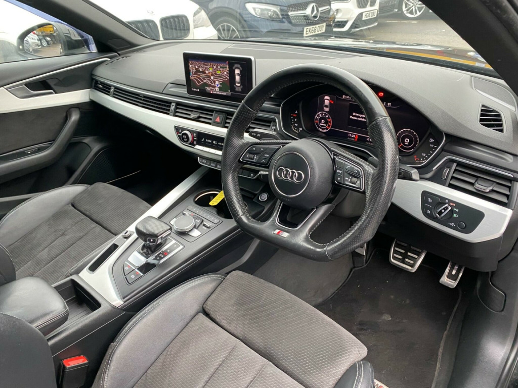 Cars Yard is delighted to present this stunning AUDI A4 2.0 TFSI 190 S LINE ((((((***FREE 6 MONTHS WARRANTY + 12 MONTHS FREE AA BREAKDOWN COVER ****))))) USED BY ONE FORMER KEEPER, FULL SERVICE HISTORY, GREAT CONDITION IN AND OUT ***Excellent condition*** 5 Day Driveaway Insurance at Additional cost available for cars up to 10 years old STS, FINANCE AVAILABLE, CALL US ON 02045392878. AA Approved Dealer, FCA registered Dealer di side assist including pre-sense rear, technology pack, technology package, rear side airbags, bang and olufsen 3d sound system, parking assistance pack, audi phone box with wireless charging, 18in alloy wheels - 5-twin-spoke star design, 4-way electric lumbar support for front seats, 6-airbag system, anti theft locking wheel bolts, anti-theft alarm, audi connect - 3 month trial, audi drive select, audi smartphone interface, audi sound system, auto-dimming rear-view mirror, bluetooth interface, body coloured door mirrors, chrome-plated trims for exhaust system, cloth headlining in black, cruise control with speed limiter, dab digital radio, deluxe 3-zone electronic climate control, door mirrors - electrically adjustable and heated with built-in led indicators, drivers information system - 5in monochrome display, esc - electronic stabilisation control inc abs - asr and edl, electric boot lid release, electric windows - front and rear, electromechanical parking brake, electromechanical power steering, first aid kit and warning triangle, front and rear floor mats, gear lever knob in black perforated leather, high gloss package, isofix child seat mounting and top tether, illuminated door sill trims with s logo, inlays - matt brushed aluminium, keyless go, led headlights with led rear lights and dynamic rear indicators, led interior light package, light and rain sensor, luggage compartment mat, mmi navigation - sd card based, manual height adjustment for front seats, model and engine technology badges at rear, multi collision brake assist, non-smoking package, parking system plus, pedals and footrest - stainless steel, pop-up bonnet for pedestrian protection, pre-sense city, radiator grille - twilight grey matt with inlays in chrome, rear diffuser in twilight grey matt, rear grille - black grained, remote central locking, s line 3-spoke leather multi-function sport steering wheel - grips in perforated leather, s line badges on front wings, s line front and rear bumpers and side skirts, seat belt monitoring, side air inlet grille in titan black matt with chrome inlays in unique s line design, space saver spare wheel, split-folding rear seat bench in 3 parts - 40-20-40 with rear centre armrest, sport suspension, sun visors - with vanity mirror, tool kit and car jack, towbar preparation, tyre pressure warning light, variable restraint system, windscreen with acoustic glazing