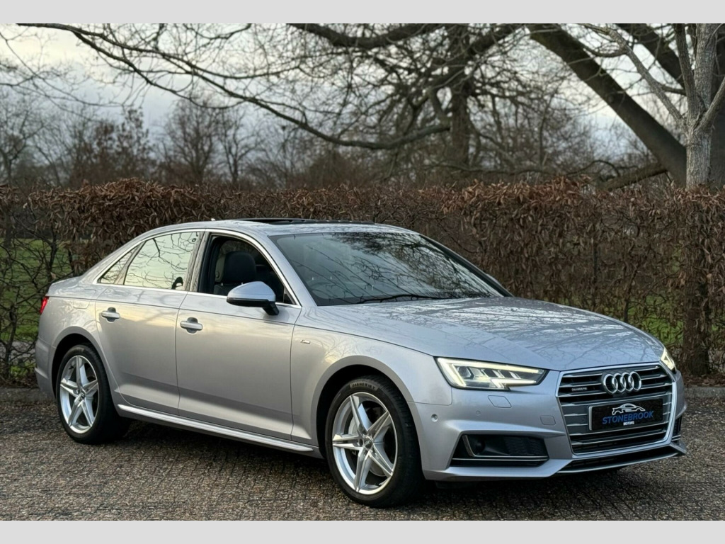 Audi A4 2.0 TFSI S Line Quattro S Tronic 2017 (66 reg) - 56,000 miles - £16,947This 2016 Audi A4 S Line Quattro combines sharp styling, refined power, and premium spec in one all-wheel-drive saloon. Finished in Silver with Full Leather Rotor Grey S Line embossed interior, this example stands out with, Bang & Olufsen sound, and a wide range of sought-after factory options.With 56,000 miles, a full Audi service history, it's ready to drive away with confidence and it's ULEZ compliant.Spec highlights include: • Sunroof•Apple CarPlay •Quattro All-Wheel Drive System•Bang & Olufsen 3D Sound System•Technology Package • 360 Cam • Heads Up Display • Matrix LED Headlights with LED Rear Lights and Dynamic Front and Rear Indicators•Comfort & Sound Package• Tour Pack (Adaptive Cruise Control)•Parking Assistance Pack Advanced •Keyless Entry•Electrically Adjustable Front Seats•Electrically Folding Mirrors with LED Indicators + Kerb View•Audi Entertainment Mobile System•Light & Vision Pack•Headlight Washers•High Beam Assist•Dynamic Steering•Fine Napa Rotor Grey Leather •Sprint Cloth & Leather Sports Seats with S Line Embossing - Black• Wireless ChargingThis A4 offers the refined feel of Audi's quattro drive system, enhanced by premium interior touches and a well-balanced performance for everyday use or long-distance comfort.Dealer benefits included:•ULEZ Compliant•Full Audi Service History•6-Month Warranty (extendable to 3 years)•AA Approved Dealer with 6 Months Roadside Cover•HPI Clear (report available)•Competitive Part Exchange Welcome•Nationwide Delivery AvailableA highly specced, well-maintained A4 with quattro grip and premium upgrades, ready to drive away. Call us today to book your viewing or test drive. We're here to help with part exchange, or delivery no pressure, just straight service. di phone box with wireless charging, audi virtual cockpit - 12.3in high resolution lcd display, bang and olufsen 3d sound system, camera-based traffic sign recognition, head-up display, audi parking system plus, audi phone box, traffic sign recognition, door mirrors - electrically folding with built-in led indicators and kerb view on passenger side, door mirrors - electrically folding-auto-dimming with memory and built-in led indicators and kerb view on passenger side, electric slide and tilt sunroof, light and vision pack, tow bar - folding, trailer pack, comfort and sound package, electrically adjustable front seats, electrically adjustable front seats with memory function for drivers side, extended led interior lighting package - multi-coloured, fine nappa leather - sports seats - s embossed - rotor grey, heated 3-spoke leather high multi-function steering wheel, heated front seats, technology package, fine nappa leather - sports seats - s line embossed - rotor grey, seats - heated front, driver assistance pack - tour, headlight washers, high-beam assist, matrix led headlights with led rear lights and dynamic front and rear indicators, parking assistance pack advanced, advanced key - with hands-free boot opening system, dynamic steering, 12v power socket, 18in alloy wheels - 5-twin-spoke star design, 2 x sdxc card readers, 3d map display, 4-way electric lumbar support for front seats, abs - anti-lock braking system, asr - anti slip regulation, aux-in socket, acoustic windscreen, airbags - curtain, airbags - driver, airbags - front passenger, airbags - front side, ambient lighting in the centre console - led, ambient lighting in the front and rear door trims - led, amplifier - 6-channel with total output of 180 watts, anti theft locking wheel bolts, anti-theft alarm, audi connect - 3 month trial, audi drive select, audi smartphone interface, audi sound system, auto-dimming rear-view mirror, automatic wipers with rain sensor, b-pillar trims and triangular rear door trim in high-gloss black, black headlining - black dashboard - black carpet, body coloured door mirrors, cd player, cloth headlining in black, contrast stitching on seats, contrast stitching on steering wheel and gear lever gaiter, cruise control system with freewheeling capability and speed limiter, cupholders, dab digital radio, dis - drivers information system with display screen monochrome tft 5in, deluxe 3-zone climate control, display screen - 7in mmi colour display, door mirrors - electrically adjustable and heated with built-in led indicators, door sill trims with s line logo, dynamic led indicators - rear, dynamic route guidance with tmcpro, edl - electronic differential lock, esc - electronic stabilisation control, electric boot lid release, electric windows - front and rear, electromechanical parking brake, electromechanical power steering, emergency braking function, exhaust tailpipe - chrome plated, first aid kit, front centre armrest, front passenger airbag deactivation switch, front sports seats with s embossed logo, front and rear floor mats, front and rear roof module, fuel computer, gear lever knob in black perforated leather, glovebox - illuminated, head restraints - front adjustable, headlights - dynamic adjustment, headlights - light sensor, heat insulating glass - windscreen and side windows, high gloss package, isofix child seat mounting for front passenger with airbag deactivation, isofix child seat preparation for rear seats with top tether, inlays - matt brushed aluminium, interior door handles - led illuminated, keyless go, led courtesy lighting on the exterior door handles for easy entry and exit in the dark, led daytime running lights, led entry lights - front and rear, led footwell lights - front and rear, led headlights with led rear lights and dynamic rear indicators, led illuminated cup holder, led illuminated vanity mirrors, led interior light package, led rear lights, luggage compartment - lighting, luggage compartment mat, mmi controller with integrated joystick function, mmi navigation, mmi search, manual height adjustment for front seats, mobile telepho