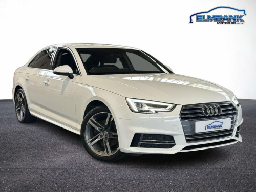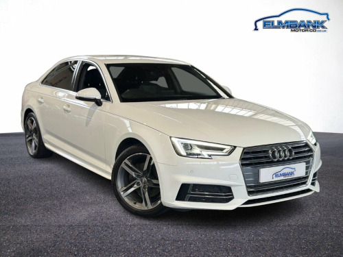2016 66 AUDI A4 2.0 TFSI S LINE 188 BHP 4 DOOR EURO 6 - ULEZ COMPLIANT. A STUNNING LOOKING A4 2.0 TFSI 6 SPEED MANUAL WITH A 4 STAMP SERVICE HISTORY, 2 KEYS AND ONLY 2 OWNERS FROM NEW. SPECIFICATIONS INCLUDE BLUETOOTH, SATELLITE NAVIGATION, CRUISE CONTROL, HALF LEATHER INTERIOR, TINTED GLASS, AUTO LIGHTS & WIPERS, DAYTIME RUNNING LIGHTS, REAR PARK ASSIST, DUAL ZONE DIGITAL CLIMATE CONTROL, ALLOYS AND COLOUR CODED BODY. SUPPLIED WITH 12 MONTHS MOT INCLUDING PRE DELIVERY SERVICE AND INSPECTION. WE CAN OFFER BESPOKE FINANCE PACKAGES AND PART EXCHANGE FACILITIES. FOR MORE INFORMATION PLEASE CONTACT ELMBANK MOTOR COMPANY. 18in Alloy Wheels - 5-Twin-Spoke Star De, 4-Way Electric Lumbar Support for Front , 6-Airbag System, Anti Theft Locking Wheel Bolts, Anti-Theft Alarm, Audi Connect - 3 Month Trial, Audi Drive Select, Audi Smartphone Interface, Audi Sound System, Auto-Dimming Rear-View Mirror, Bluetooth Interface, Body Coloured Door Mirrors, Chrome-Plated Trims for Exhaust System, Cloth Headlining in Black, Cruise Control with Speed Limiter, DAB Digital Radio, Deluxe 3-Zone Electronic Climate Control, Door Mirrors - Electrically Adjustable a, Drivers Information System - 5in Monochr, ESC - Electronic Stabilisation Control i, Electric Boot Lid Release, Electric Windows - Front and Rear, Electromechanical Parki