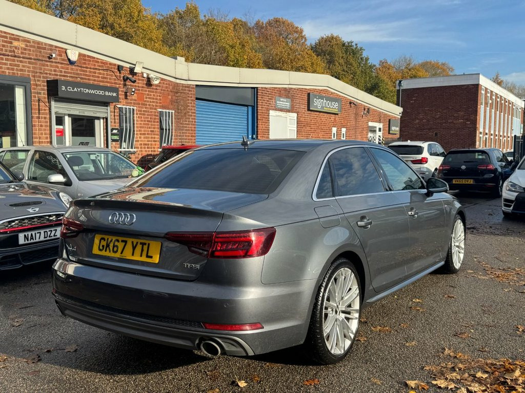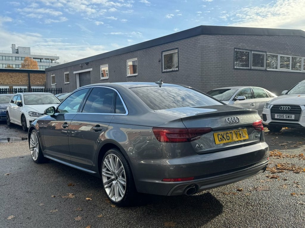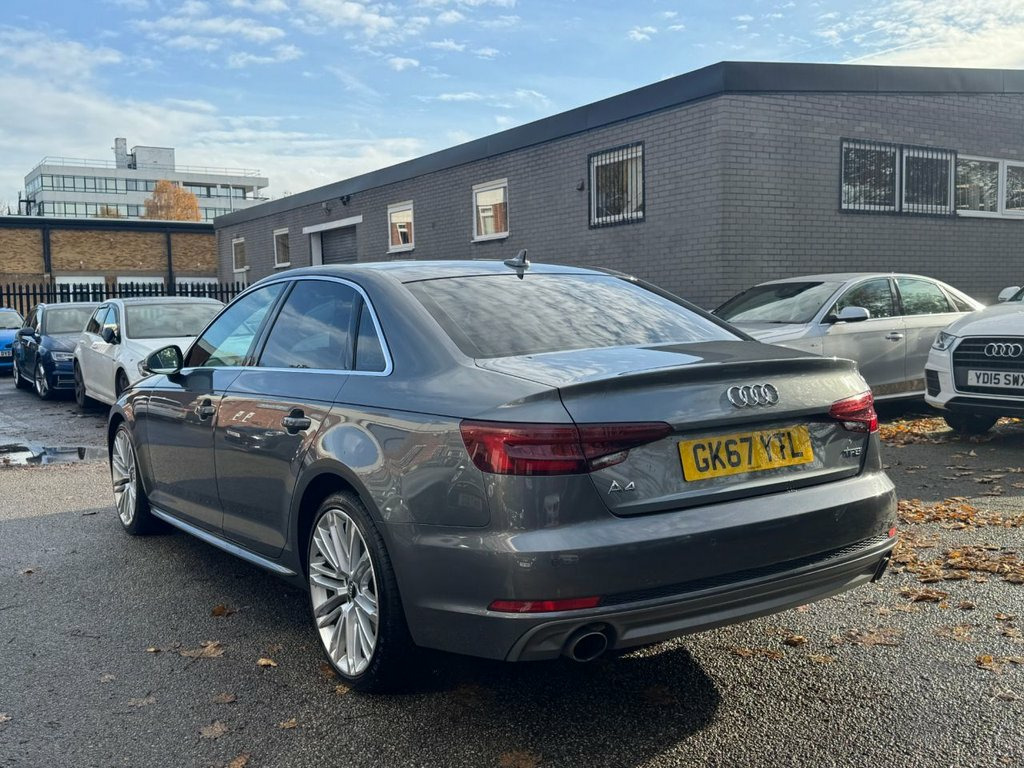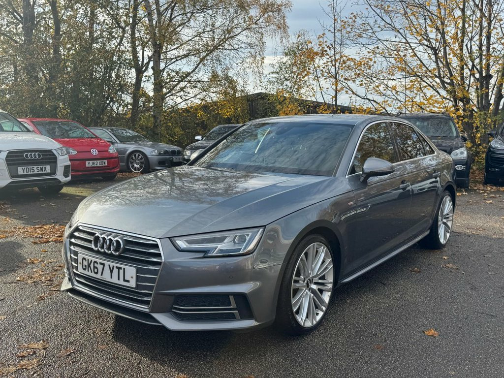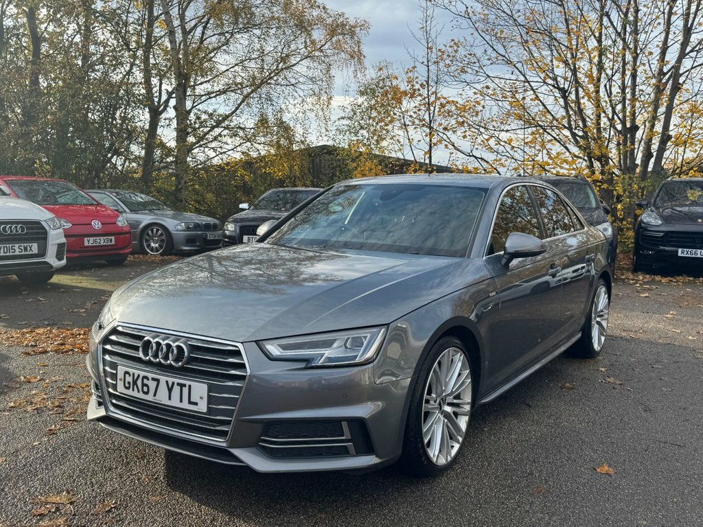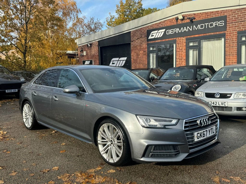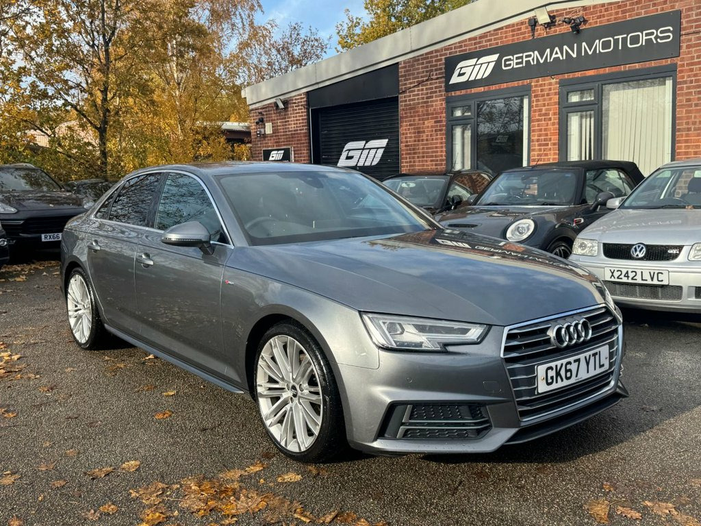 GERMAN MOTORS ARE PROUD TO OFFER THIS BIG SPEC A4 SALOON TFSI - FULL AUDI SERVICE HISTORY - HUGE SPEC - 2 KEYS SPECIFICATION INCLUDES BUT NOT LIMITED TO: - VIRTUAL COCKPIT - TECHNOLOGY PACKAGE - WIDE SCREEN SAT NAV - HEATED FRONT SEATS - KEYLESS START - DRIVE SELECT - DAB RADIO - CRUISE CONTROL - BLUETOOTH - BLUETOOTH AUDIO - FRONT AND REAR PARKING SENSORS /// COMPETITIVE FINANCE AVAILABLE /// /// VIEWING STRICTLY BY APPOINTMENT /// /// PART EXCHANGE WELCOME /// /// PLEASE CALL FOR MORE DETAILS /// Alcantara-Leather - Sport Seats - S Embo, 19in Alloy Wheels - 10-V Spoke Design, Monsoon Grey, Fine Nappa Leather - Sports Seats - S Em, Matrix LED Headlights with LED Rear Ligh, Technology Pack, 18in Alloy Wheels - 5-Twin-Spoke Star De, 4-Way Electric Lumbar Support, 6-Airbag System, Anti Theft Locking Wheel Bolts, Anti-Theft Alarm, Audi Connect - 3 Month Trial, Audi Connect Safety and Service - e-call, Audi Drive Select, Audi Smartphone Interface, Audi Sound System, Auto-Dimming Rear-View Mirror, Bluetooth Interface, Body Coloured Door Mirrors, CD Drive, Chrome-Plated Trims for Exhaust System, Cloth Headlining in Black, Cruise Control System with Freewheeling , DAB Digital Radio, Deluxe 3-