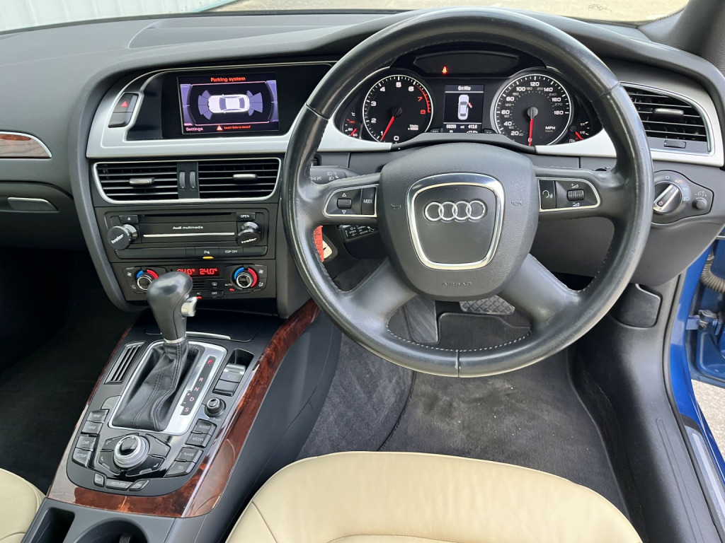 Upgrades -Audi parking system plus Leather- Milano, Walnut Brown Wood inlay, Bluetooth mobile phone connection, DVD SatNav, Standard Features - Mobile telephone preparation- Bluetooth interface, Concert Radio & single CD player with MP3 facility, Cruise Control, Acoustic Parking System- Rear, 17in 7 Arm design Alloy Wheels, Electric front and rear windows, Electric heated mirrors, Remote Central Locking, 4Spoke Leather Multifunction Steering Wheel, Auto dimming Rear view mirror, Front&Rear floor mats, Multifunction Steering Wheel, Front fog lights