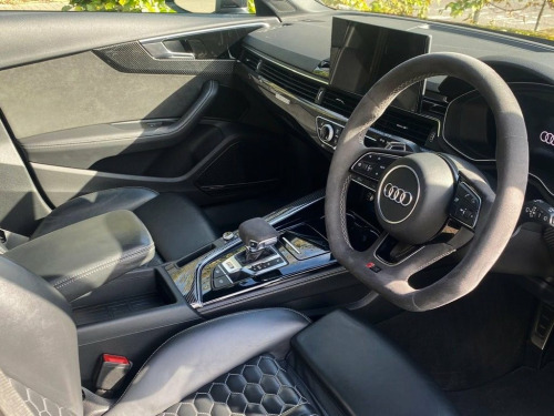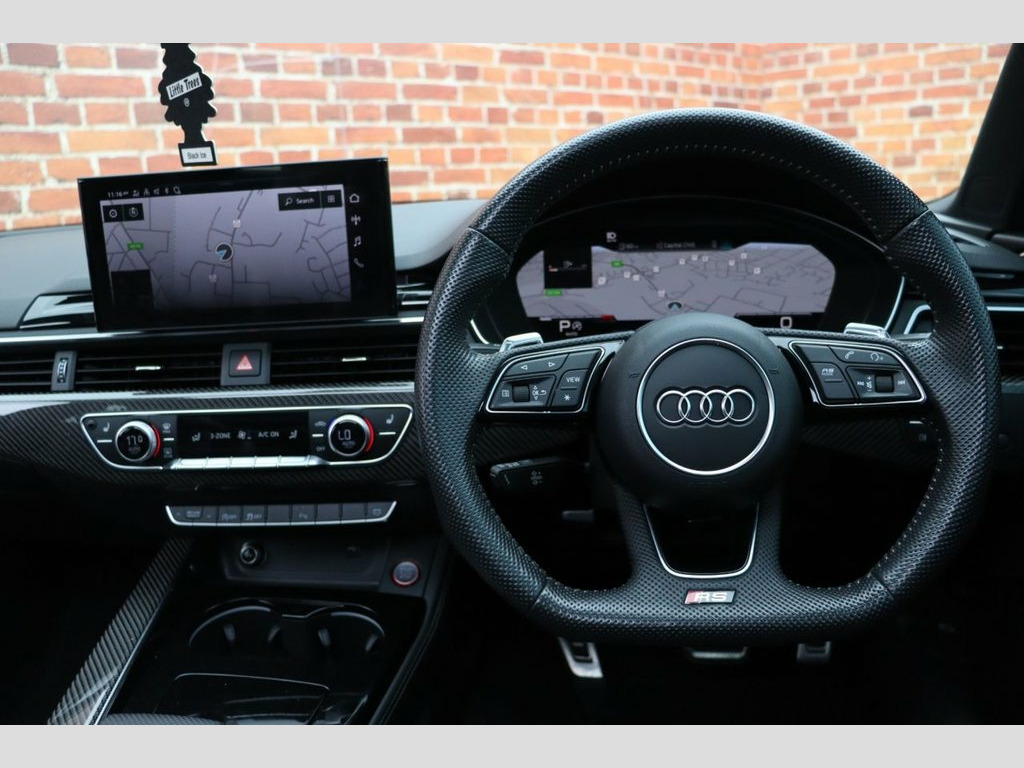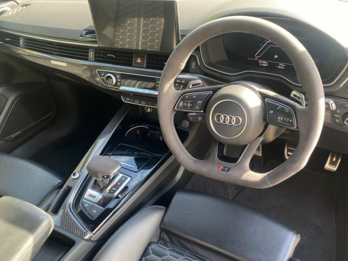 Here We Have The Audi RS4 TFSI Quattro! A Stunning Example Fully Loaded With Some Mega Specification Including Opening Panoramic Glass Roof, Exterior And Interior Carbon & Lots More! Find The Full List Of Specification And Details Below: (Please See Photos of the Suede Steering Wheel And Gear Selector That Have Been Changed From Leather To Suede. The Vehicle Has Also Recently Benefitted Recently From A Ceramic Coating!) EXTERIOR SPECIFICATION: - Opening Panoramic Glass Sunroof - Carbon Exterior Inc; Front Splitter, Bumper Accents, Side Skirts, Rear Bumper Insert - 20" Black Gloss Alloys - Matrix LED Headlights - Rear Tinted Privacy Glass - Electric Tailgate - Roof Rails - 360 Camera - Reversing Camera - Electric Folding Wing Mirrors INTERIOR SPECIFICATION: - Bang & Olufsen Sound System - Full Black Leather Seats - Honeycomb Stitching - 'RS' Headrest Embossing - Electric Seats - Heated Seats - Massage Seats - Flat-Bottom Leather Steering Wheel - Paddle-Shift Gear Change - Cruise Control - Virtual Cockpit - Carbon Interior Trims - Full Screen Sat Nav - DAB Radio - Bluetooth Connection - 3-Zone Digital Climate Control - RS Mode - Audi Drive Select - Automatic Stop/Start Technology - Keyless Start - Auto Hold - Wireless Phone Charging Service History Carried Out At @ 10,336 miles @ 28,443 miles Last Service Carried Out September 2025 & Also New Front Brake Pads. The Current Mileage Is 47,000 miles This Car Will Come 2 USB Charging Ports, 20in Alloy Wheels - 5-Segment-Spoke Evo , 6-Airbag System, Anti Theft Locking Wheel Bolts, Anti-Theft Alarm, Audi Beam - Exterior Puddle Lighting wit, Audi Connect Infotainment Services - 36 , Audi Connect Safety and Service - e-call, Audi Phone Box with Wireless Charging, Audi Pre-Sense City, Audi Rings and Lettering - Glossy Black, Audi Side Assist, Audi Smartphone Interface, Audi Sound System, Audi Virtual Cockpit with RS Specific Di, Auto-Dimming Rear-View Mirror, Black Cloth Headlining, Black Roof Rails, Brake Calipers Painted in Black with RS , Carbon Black Styling Pack, Cruise Control System with Speed Limiter, DAB Digital Radio Reception, Deluxe 3-Zone Electroni