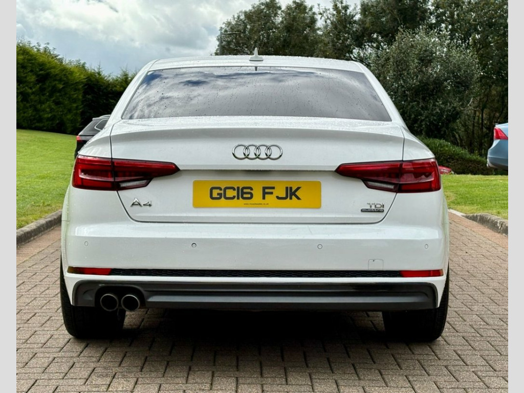 July 2016 Audi A4 3.0TDI 272 Quattro S-Line Auto in Ibis White. Service History & MOT'd to May 2026. Loaded with spec including Half Leather Interior, Privacy Glass, Central Armrest, Navigation System, Bluetooth, DAB Radio, Xenon Daytime Running Lights etc. Fitted with Brand New 20" TTRS Alloys & Tyres (Optional Extra £995) FINANCE AVAILABLE AT KEEN RATES!! Viewing by Appointment Only Please. 18in Alloy Wheels - 5-Twin-Spoke Star De, 4-Way Electric Lumbar Support for Front , 6-Airbag System, Anti Theft Locking Wheel Bolts, Anti-Theft Alarm, Audi Connect - 3 Month Trial, Audi Drive Select, Audi Smartphone Interface, Audi Sound System, Auto-Dimming Rear-View Mirror, Bluetooth Interface, Body Coloured Door Mirrors, Chrome-Plated Trims for Exhaust System, Cloth Headlining in Black, Cruise Control with Speed Limiter, DAB Digital Radio, Deluxe 3-Zone Electronic Climate Control, Door Mirrors - Electrically Adjustable a, Drivers Information System - 5in Monochr, Electric Boot Lid Release, Electric Windows - Front and Rear, Electromechanical Parking Brake, Electromechanical Power Steering