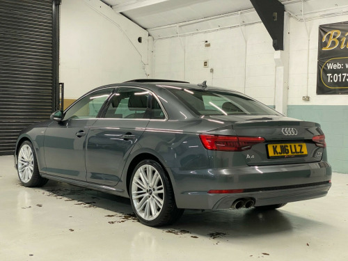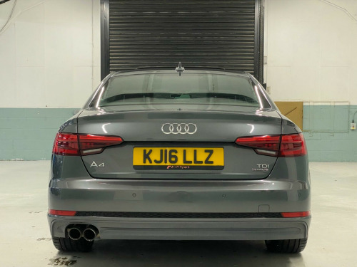 REGISTRATION: KJ16LLZThis 2016 Audi A4 TDI V6 S line offers excellent peace of mind with its MOT valid until July 2026 and a clear vehicle history check. This four wheel drive model, registered in 2016, features a powerful 3.0L Euro 6 diesel engine and benefits from a partial service history, with the last service completed at 119936 miles. Inside, you'll find Deluxe 3-Zone Climate Control for personalised comfort, while the LED headlights with dynamic rear indicators and automatic light sensors ensure excellent visibility. Parking is made easier with rear parking sensors, and the Bluetooth interface allows for seamless mobile phone connectivity.The performance of this Audi A4 is truly impressive, accelerating from 0-62mph in just 5.3 seconds, demonstrating its capability. These highlights, such as the rapid acceleration and advanced lighting systems, indicate how this vehicle stands out from others in its class. Furthermore, its low insurance group makes it an economical choice for many drivers.TO AVOID DISAPPOINTMENT, WE RECOMMEND RESERVING A VEHICLE WITH A REFUNDABLE HOLDING DEPOSIT OF £99. WITHOUT A HOLDING DEPOSIT, WE ARE WITHIN OUR RIGHTS TO SELL THE VEHICLE. PLEASE NOTE, THE SPECIFICATION OUTLINED WITHIN THIS ADVERT MAY NOT BE ACCURATE. PLEASE CONTACT US IF YOU HAVE ANY QUESTIONS REGARDING THE SPEC., ng and olufsen 3d sound system, electric slide and tilt sunroof, electrically adjustable front seats, fine nappa leather - sports seats - s embossed - black, heated front seats, 12v power socket, 18in alloy wheels - 5-twin-spoke star design, 2 x sdxc card readers, 3d map display, 4-way electric lumbar support for front seats, abs - anti-lock braking system, asr - anti slip regulation, aux-in socket, acoustic windscreen, airbags - curtain, airbags - driver, airbags - front passenger, airbags - front side, ambient lighting in the centre console - led, ambient lighting in the front and rear door trims - led, amplifier - 6-channel with total output of 180 watts, anti theft locking wheel bolts, anti-theft alarm, audi connect - 3 month trial, audi drive select, audi smartphone interface, audi sound system, auto-dimming rear-view mirror, automatic wipers with rain sensor, b-pillar trims and triangular rear door trim in high-gloss black, black headlining - black dashboard - black carpet, body coloured door mirrors, cd player, cloth headlining in black, contrast stitching on seats, contrast stitching on steering wheel and gear lever gaiter, cruise control system with freewheeling capability and speed limiter, cupholders, dab digital radio, dis - drivers information system with display screen monochrome tft 5in, deluxe 3-zone climate control, display screen - 7in mmi colour display, door mirrors - electrically adjustable and heated with built-in led indicators, door sill trims with s line logo, dynamic led indicators - rear, dynamic route guidance with tmcpro, edl - electronic differential lock, esc - electronic stabilisation control, electric boot lid release, electric windows - front and rear, electromechanical parking brake, electromechanical power steering, emergency braking function, exhaust tailpipe - chrome plated, first aid kit, front centre armrest, front passenger airbag deactivation switch, front sports seats with s embossed logo, front and rear floor mats, front and rear roof module, fuel computer, gear lever knob in black perforated leather, glovebox - illuminated, head restraints - front adjustable, headlights - dynamic adjustment, headlights - light sensor, heat insulating glass - windscreen and side windows, high gloss package, isofix child seat mounting for front passenger with airbag deactivation, isofix child seat preparation for rear seats with top tether, inlays - matt brushed aluminium, interior door handles - led illuminated, keyless go, led courtesy lighting on the exterior door handles for easy entry and exit in the dark, led daytime running lights, led entry lights - front and rear, led footwell lights - front and rear, led headlights with led rear lights and dynamic rear indicators, led illuminated cup holder, led illuminated vanity mirrors, led interior light package, led rear lights, luggage compartment - lighting, luggage compartment mat, mmi controller with integrated joystick function, mmi navigation, mmi search, manual height adjustment for front seats, mobile telephone preparation - bluetooth interface, model and engine technology badges at rear, multi collision brake assist, natural voice recognition, non-smoking package, parking sensors - rear, passive door warning lights, pedals and footrest - stainless steel, pop-up bonnet for pedestrian protection, pre-sense city, radiator grille - twilight grey matt with inlays in chrome, rear centre armrest, rear diffuser in twilight grey matt, rear grille - black grained, remote boot release, remote central locking, roof frame and window trims in aluminium, s line badges on front wings, s line front and rear bumpers and side skirts, seat belt monitoring, seats - split folding rear - 40-20-40, side air inlet grille in titan black matt with two side inlays in chrome, space saver spare wheel, speakers x10 including subwoofer, sport suspension, steering wheel - gear shift paddles, steering wheel - height and reach adjustable, steering wheel - multi-function, steering wheel - s line 3-spoke leather, steering wheel - sports, sun visors - with vanity mirror, tailgate lighting, tool kit and car jack, towbar preparation, tyre pressure warning light, usb connection x2, variable restraint system, voice control, warning triangle
