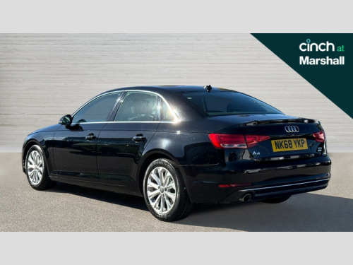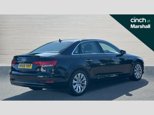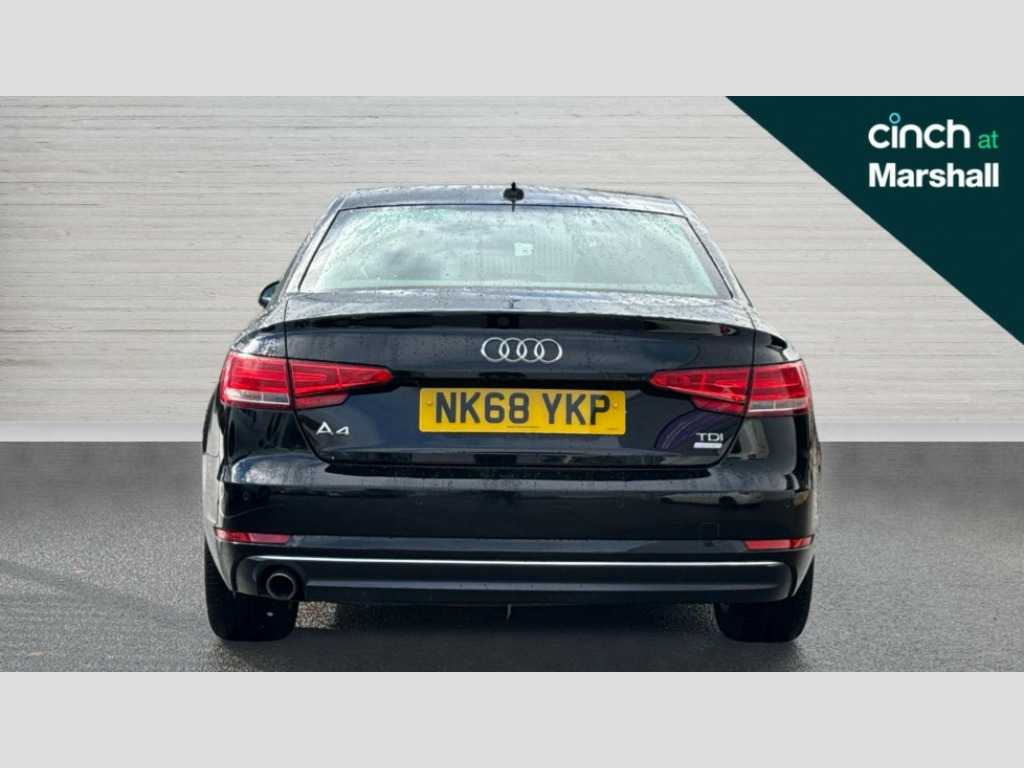 Audi A4 2.0 TDI Ultra SE 4dr S Tronic Audi drive select, Audi parking system plus with front and rear sensors, Audi Pre sense collision avoidance, Audi smartphone interface, Auto boot lid opening, Cruise control + speed limiter, Driver information centre, Electro-mechanical PAS, Mobile telephone preparation - bluetooth interface, Service interval indicator, Stop/start button, Voice control system, Sports suspension, 2 USB ports, Aux input, DAB digital radio module, MMI radio plus with CD player, Acoustic windscreen, Air inlets in titanium black, Aluminium window trim, Auto dimming rear view mirror, Automatic headlights + automatic windscreen wipers, Body colour bumpers, Body colour door mirrors, Chrome door handles, Chrome rolled exhaust, Electric adjustable heated door mirrors, Electric front windows, Electric rear windows, Headlight range control, High gloss black triangular aperture at rear door, LED daytime running lights, LED indicators in door mirrors, Rain and light sensors, Rear diffuser in Titan black, Titan black radiator grille with chrome inlay, 3 Spoke leather multi function steering wheel, 3 zone climate control, Aluminium door sill trims, Front centre armrest with 12v socket, Front headrests, Front/rear floor mats, Gearshift paddles, Interior light, Isofix child seat preparation for front passenger/outer rear seats inc passenger airbag deactivation, Jack and tool kit, Luggage compartment carpet, Reach + rake adjustable steering column, Rear headrests, Split folding rear seats, Sunvisors with vanity mirrors, Top tether anchor plate for isofix child seat, Non Smokers pack, 3 point seatbelts on all rear seats, ABS/EBD, Active bonnet, Adaptive driver and front passenger airbags, EDL + ASR, Electromechanical parking brake, ESP, First aid kit, Front head airbags, Front seatbelt pretensioners + load limiters, Front side airbags, Multi-Collision braking, Seatbelt warning, Traction control, Tyre pressure monitoring system, Warning triangle, Anti theft alarm, Keyless Start, Locking wheel bolts, Remote central locking, Thatcham category 1 alarm + immobiliser, Low rolling resistance tyres, Space saver spare wheel