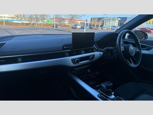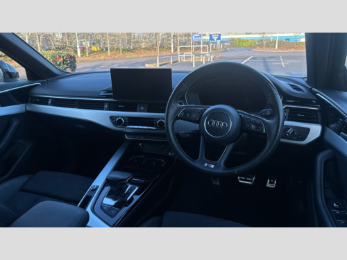 Audi A4 35 TDI S Line 4dr S Tronic Audi connect safety and service (e-call), Audi connect with Amazon Alexa Integration, Audi drive select, Audi parking system plus with front and rear sensors, Audi smartphone interface, Audi virtual cockpit, Automatic start-stop system with coasting functionality and efficiency programme, Bluetooth interface, Electric boot lid release, Electromechanical power steering, Email, calendar and text messages displayed via MMI, MMI Navigation plus with MMI touch includes 10.1" high resolution colour MMI display, 3D map, Rear view camera, Voice control system, Sports suspension lowered by 23mm, 2 USB charging ports, 8 passive loudspeakers, DAB digital radio reception, Auto dimming rear view mirror, Body colour door handles, Body colour front spoiler lip, Body colour side sill trim, Body coloured door mirrors, Electrically folding auto dimming/adjustable/heated door mirrors with LED side indicators and kerb view function for passenger side, Grained matt black side air inlets with matt aluminium silver inlay, High beam assistant, Honeycomb structure radiator grille in grained matt black, LED headlights with LED rear lights + dynamic rear indicators + headlight adjustment and high beam, turning light + LED daytime running lights, LED third brake light, Matt aluminium silver tailpipe trim, Privacy glass, Rain and light sensors, Rear side wing doors, S Line badges on the front wings, S line front and rear bumpers with side skirts, S Line rear diffuser in matt titanium black with trim strip in matt aluminium silver, Variable intermittent front wash/wipe, Windscreen with acoustic glazing, 4 way electric lumbar support for driver and front passenger, 40/20/40 split folding 3 rear seat bench in 3 parts with rear centre armrest, Black cloth headlining, Black perforated leather gearknob, Contrast stitching on seats, steering wheel and gear lever gaiter, Deluxe 3 zone electronic climate control, Door sill trims with aluminium inlay, Front and rear head restraints, Front centre armrest, Heated front seats, Illuminated door sill trims with S logo, ISOFIX child seat mounting and top tether, Manual seat adjustment, Single front passenger seat, Stainless steel pedals and foot rest, High gloss package - A4, LED Interior light pack - A4/S4, 3 rear seatbelts, 6 airbags - Driver, front passenger, curtain and side windows, Electronic Stabilisation Control (ESC) including ABS, ASR and EDL, Hill hold assist, Multi collision brake assist, Pop-up bonnet for pedestrian protection, Pre sense city, Seatbelt monitoring, Warning triangle and first aid kit, Anti theft alarm, Anti theft wheel bolts, Central locking, Keyless Go, Matt brushed aluminium inlays, Tool kit, Tyre repair kit