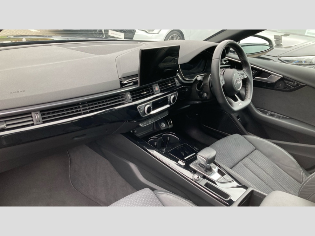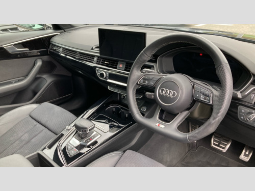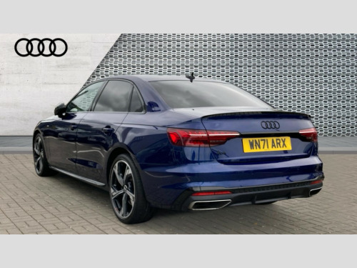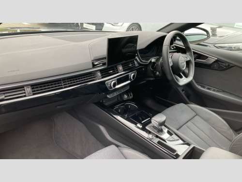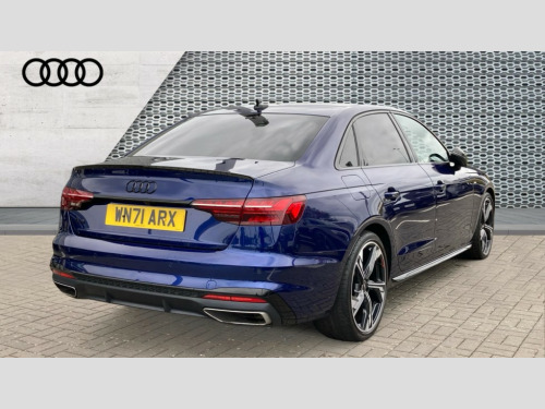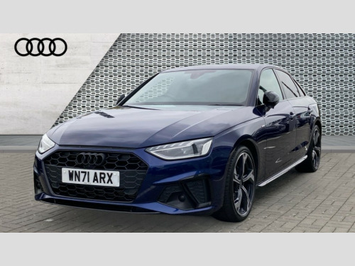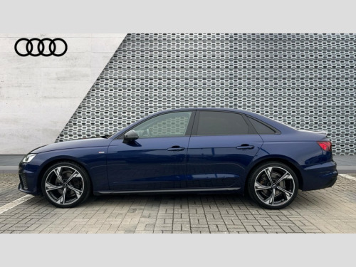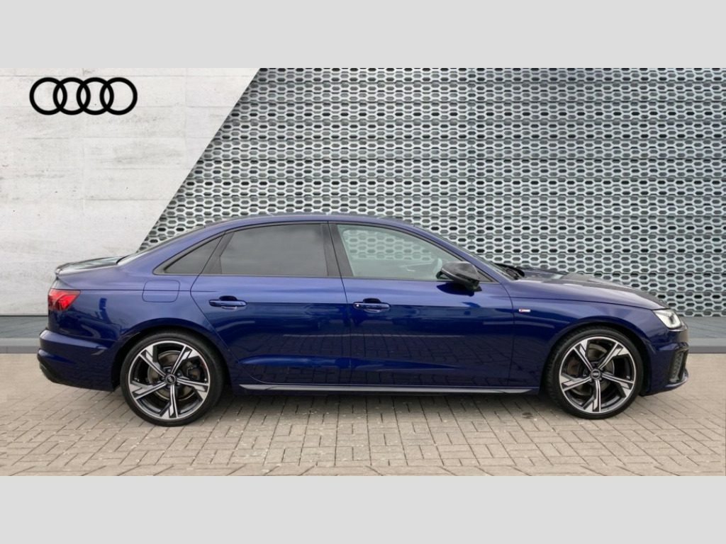 Audi A4 35 TFSI Black Edition 4dr S Tronic Audi connect safety and service (e-call), Audi connect with Amazon Alexa Integration, Audi drive select, Audi parking system plus with front and rear sensors, Audi smartphone interface, Audi virtual cockpit, Automatic start-stop system with coasting functionality and efficiency programme, Bluetooth interface, Electric boot lid release, Electromechanical power steering, Email, calendar and text messages displayed via MMI, MMI Navigation plus with MMI touch includes 10.1" high resolution colour MMI display, 3D map, Rear view camera, Voice control system, 54 litre fuel tank, Sports suspension lowered by 23mm, 2 USB charging ports, 8 passive loudspeakers, DAB digital radio reception, Auto dimming rear view mirror, Black Audi rings and black badging (model name in black badging, no engine badging), Black audi rings decal above rear sills, Body colour door handles, Body colour front spoiler lip, Body colour side sill trim, Electrically folding auto dimming/adjustable/heated door mirrors with LED side indicators and kerb view function for passenger side, Front and rear bumpers with side skirts, Front wing badges, Grained matt black side air inlets with matt aluminium silver inlay, High beam assistant, High gloss black B pillar trims and triangular rear door trim, LED headlights with LED rear lights + dynamic rear indicators + headlight adjustment and high beam, turning light + LED daytime running lights, Matt aluminium silver tailpipe trim, Privacy glass, Rain and light sensors, Rear diffuser in matt titanium black with trim strip in matt aluminium silver, Windscreen with acoustic glazing, 4 way electric lumbar support for driver and front passenger, 40/20/40 split folding 3 rear seat bench in 3 parts with rear centre armrest, Black cloth headlining, Black perforated leather gearknob, Contrast stitching on seats, steering wheel and gear lever gaiter, Deluxe 3 zone electronic climate control, Door sill trims with aluminium inlay, Front and rear head restraints, Front centre armrest, Heated front seats, Illuminated door sill trims with S logo, ISOFIX child seat mounting and top tether, Manual seat adjustment, Stainless steel pedals and foot rest, Black styling pack - A4 Saloon, LED Interior light pack - A4/S4, 3 rear seatbelts, 6 airbags - Driver, front passenger, curtain and side windows, Electronic Stabilisation Control (ESC) including ABS, ASR and EDL, Hill hold assist, Multi collision brake assist, Pop-up bonnet for pedestrian protection, Pre sense city, Seatbelt monitoring, Warning triangle and first aid kit, Anti theft alarm, Anti theft wheel bolts, Keyless Go, Piano black finish inlay, Tool kit, Tyre repair kit