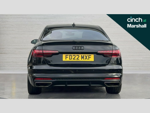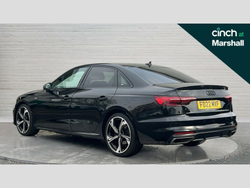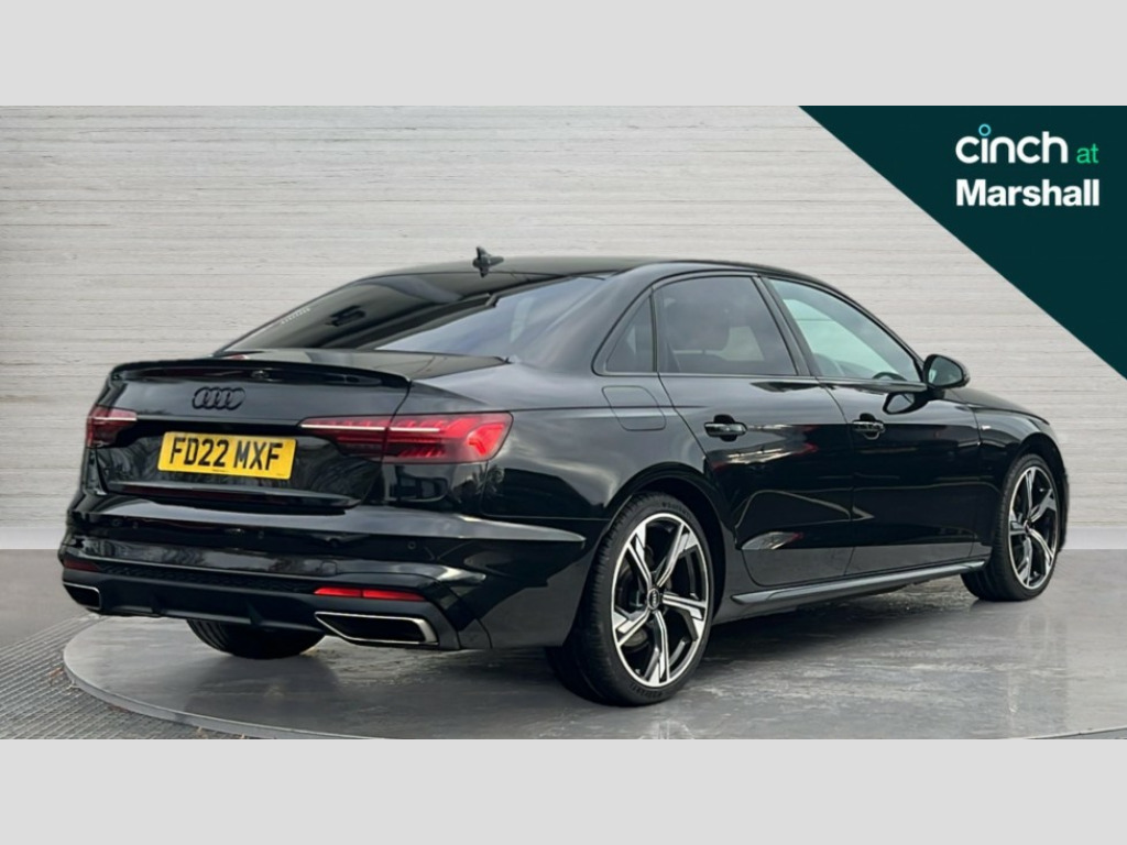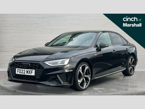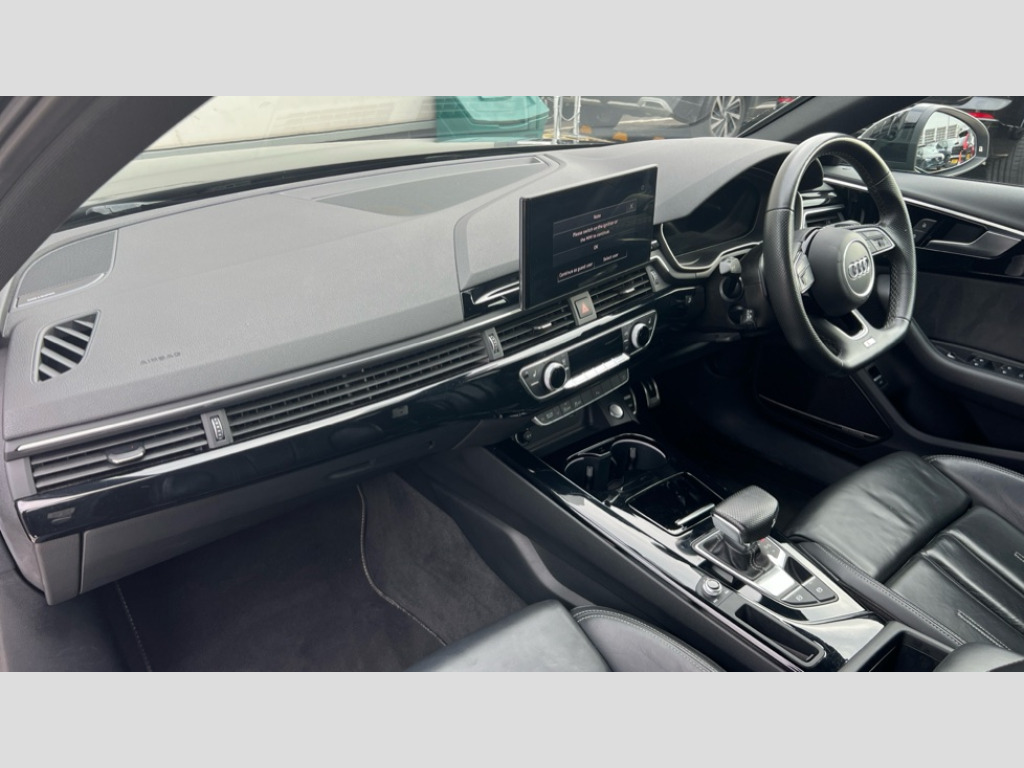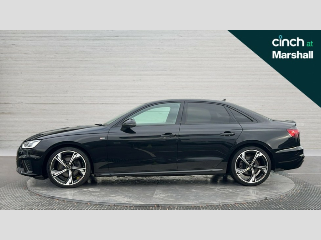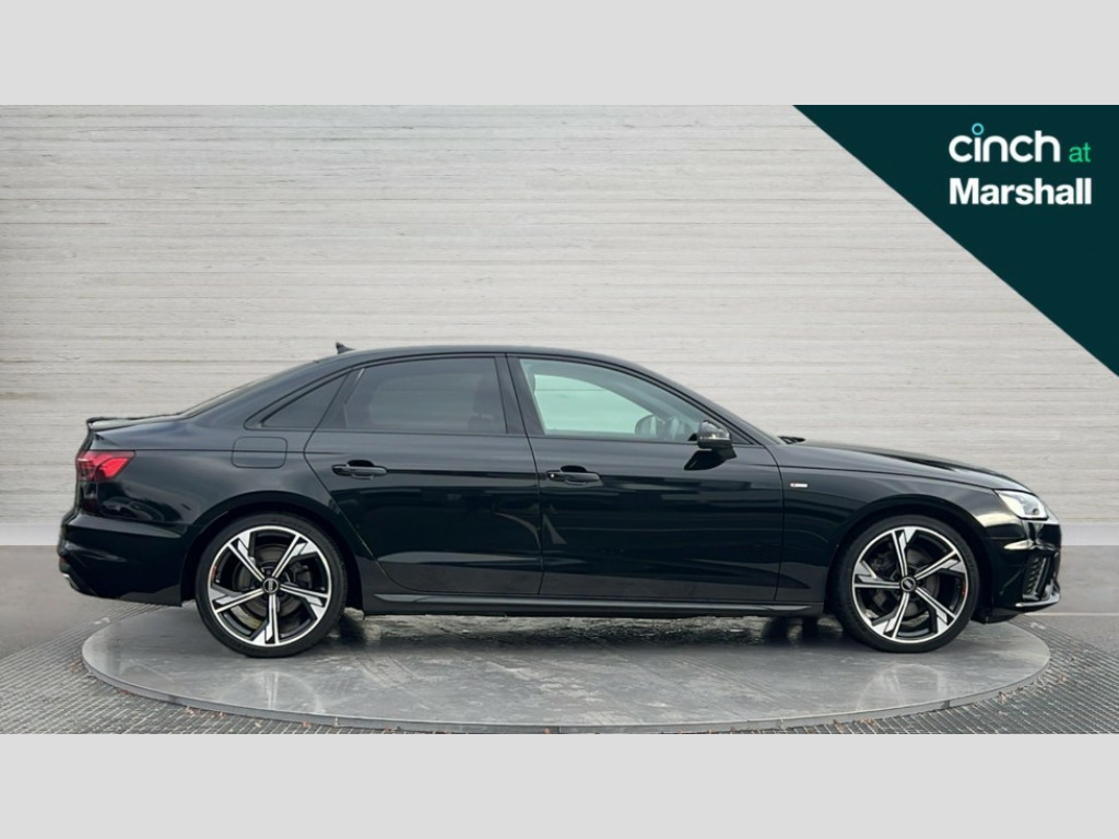 Audi A4 35 TFSI Black Edition 4dr S Tronic Audi connect safety and service (e-call), Audi connect with Amazon Alexa Integration, Audi drive select, Audi smartphone interface, Audi virtual cockpit, Automatic start-stop system with coasting functionality and efficiency programme, Bluetooth interface, Electric boot lid release, Electromechanical power steering, Email, calendar and text messages displayed via MMI, MMI Navigation plus with MMI touch includes 10.1" high resolution colour MMI display, 3D map, Voice control system, 54 litre fuel tank, Sports suspension lowered by 23mm, 2 USB charging ports, 8 passive loudspeakers, DAB digital radio reception, Auto dimming rear view mirror, Black Audi rings and black badging (model name in black badging, no engine badging), Body colour door handles, Body colour front spoiler lip, Body colour side sill trim, Electrically folding auto dimming/adjustable/heated door mirrors with LED side indicators and kerb view function for passenger side, Front and rear bumpers with side skirts, Front wing badges, Grained matt black side air inlets with matt aluminium silver inlay, High beam assistant, High gloss black B pillar trims and triangular rear door trim, LED headlights with LED rear lights + dynamic rear indicators + headlight adjustment and high beam, turning light + LED daytime running lights, LED third brake light, Matt aluminium silver tailpipe trim, Privacy glass, Rain and light sensors, Rear boot, Rear diffuser in matt titanium black with trim strip in matt aluminium silver, Rear side wing doors, Variable intermittent front wash/wipe, Windscreen with acoustic glazing, 4 way electric lumbar support for driver and front passenger, 40/20/40 split folding 3 rear seat bench in 3 parts with rear centre armrest, Black cloth headlining, Black perforated leather gearknob, Contrast stitching on seats, steering wheel and gear lever gaiter, Deluxe 3 zone electronic climate control, Door sill trims with aluminium inlay, Front and rear head restraints, Front centre armrest, Heated front seats, Illuminated door sill trims with S logo, ISOFIX child seat mounting and top tether, Manual seat adjustment, Single front passenger seat, Stainless steel pedals and foot rest, Black styling pack - A4 Saloon, LED Interior light pack - A4/S4, 3 rear seatbelts, 6 airbags - Driver, front passenger, curtain and side windows, Electronic Stabilisation Control (ESC) including ABS, ASR and EDL, Hill hold assist, Multi collision brake assist, Pop-up bonnet for pedestrian protection, Pre sense city, Rear door child safety locks, Seatbelt monitoring, Warning triangle and first aid kit, Anti theft alarm, Anti theft wheel bolts, Central locking, Keyless Go, Piano black finish inlay, Tool kit, Tyre repair kit