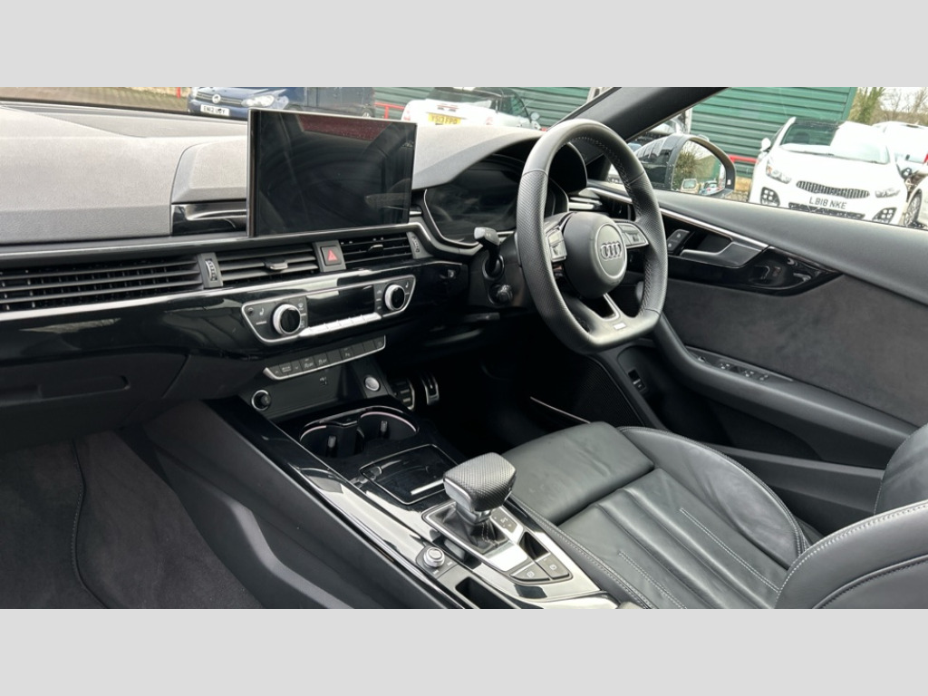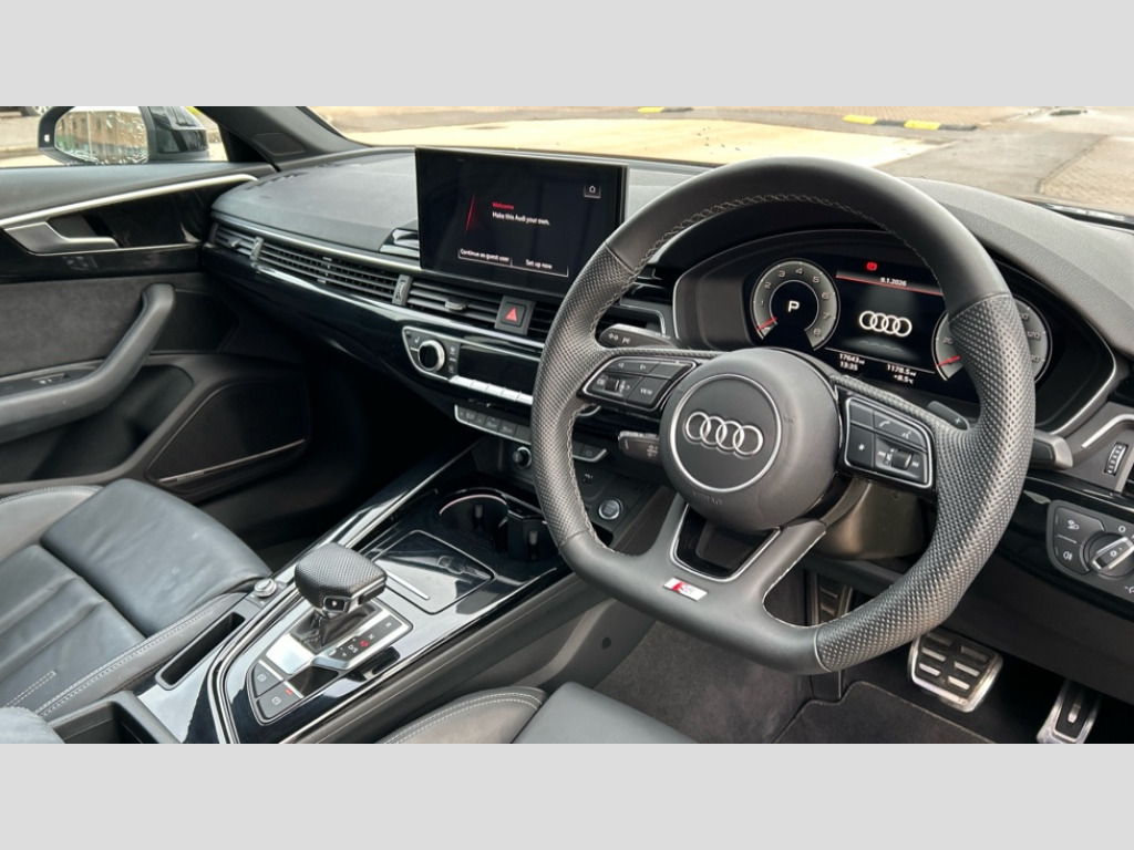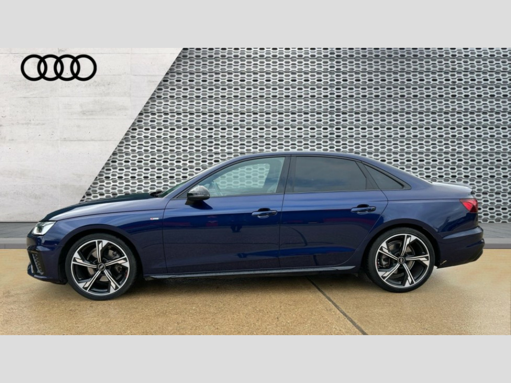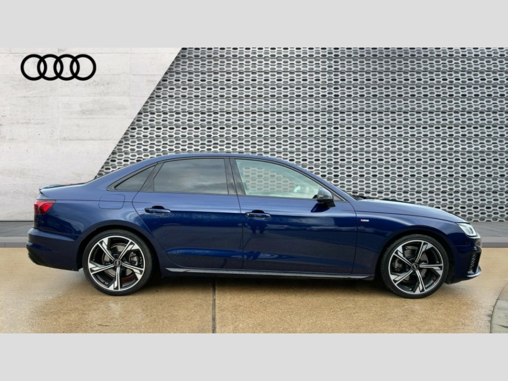 Audi A4 35 TFSI Black Edition 4dr S Tronic Audi connect safety and service (e-call), Audi connect with Amazon Alexa Integration, Audi drive select, Audi smartphone interface, Audi virtual cockpit, Automatic start-stop system with coasting functionality and efficiency programme, Bluetooth interface, Electric boot lid release, Electromechanical power steering, Email, calendar and text messages displayed via MMI, MMI Navigation plus with MMI touch includes 10.1" high resolution colour MMI display, 3D map, Voice control system, 54 litre fuel tank, Sports suspension lowered by 23mm, 2 USB charging ports, DAB digital radio reception, Audi beam uses LEDs to project the audi logo onto the ground as you exit your A4, Auto dimming rear view mirror, Black Audi rings and black badging (model name in black badging, no engine badging), Body colour door handles, Body colour front spoiler lip, Body colour side sill trim, Electrically folding auto dimming/adjustable/heated door mirrors with LED side indicators and kerb view function for passenger side, Exhaust tailpipes in high gloss black, Front and rear bumpers with side skirts, Grained matt black side air inlets with matt aluminium silver inlay, High beam assistant, High gloss black B pillar trims and triangular rear door trim, LED headlights with LED rear lights + dynamic rear indicators + headlight adjustment and high beam, turning light + LED daytime running lights, LED third brake light, Privacy glass, Rain and light sensors, Rear boot, Rear diffuser in matt titanium black with trim strip in matt aluminium silver, Rear side wing doors, S Line badges on the front wings, Variable intermittent front wash/wipe, Windscreen with acoustic glazing, 4 way electric lumbar support for driver and front passenger, 40/20/40 split folding 3 rear seat bench in 3 parts with rear centre armrest, Black cloth headlining, Black perforated leather gearknob, Contrast stitching on seats, steering wheel and gear lever gaiter, Deluxe 3 zone electronic climate control, Door sill trims with aluminium inlay, Front and rear head restraints, Front centre armrest, Heated front seats, Illuminated door sill trims with S logo, ISOFIX child seat mounting and top tether, Manual seat adjustment, Single front passenger seat, Stainless steel pedals and foot rest, Black styling pack - A4 Saloon, Comfort and sound pack - A4, LED Interior light pack - A4/S4, 3 rear seatbelts, 6 airbags - Driver, front passenger, curtain and side windows, Electronic Stabilisation Control (ESC) including ABS, ASR and EDL, Hill hold assist, Multi collision brake assist, Pop-up bonnet for pedestrian protection, Pre sense city, Rear door child safety locks, Seatbelt monitoring, Warning triangle and first aid kit, Anti theft alarm, Anti theft wheel bolts, Central locking, Keyless Go, Piano black finish inlay, 19" 5 arm flag design Audi sport diamond cut alloy wheels in gloss anthracite black, Tool kit, Tyre repair kit