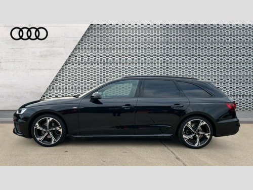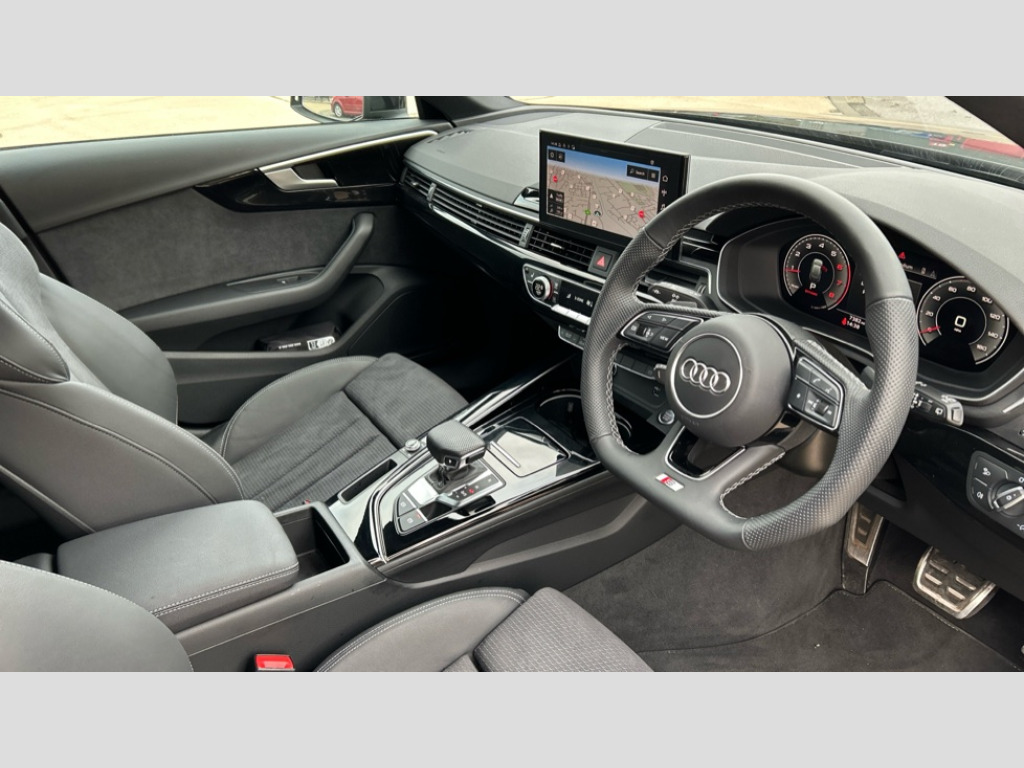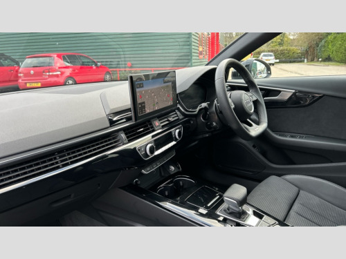 Audi A4 35 TFSI Black Edition 5dr S Tronic Audi connect safety and service (e-call), Audi drive select, Audi smartphone interface, Audi virtual cockpit, Automatic start-stop system with coasting functionality and efficiency programme, Bluetooth interface, Camera based traffic sign recognition, Electromechanical power steering, Email, calendar and text messages displayed via MMI, Front and rear parking sensors, Lane departure warning, MMI Navigation plus with MMI touch includes 10.1" high resolution colour MMI display, 3D map, Power operated tailgate, Rear view camera, Voice control system, 54 litre fuel tank, Sports suspension lowered by 23mm, 2 USB charging ports, 8 passive loudspeakers, DAB digital radio reception, Audi beam uses LEDs to project the audi logo onto the ground as you exit your A4, Auto dimming rear view mirror, Black Audi rings and black badging (model name in black badging, no engine badging), Body colour door handles, Body colour front spoiler lip, Body colour side sill trim, Electric adjustable/heated/folding door mirrors with auto dimming, Exhaust tailpipes in high dark chrome, Grained matt black side air inlets with matt aluminium silver inlay, High beam assistant, High gloss black B pillar trims and triangular rear door trim, LED headlights with LED rear lights + dynamic rear indicators + headlight adjustment and high beam, turning light + LED daytime running lights, LED third brake light, Privacy glass, Rain and light sensors, Rear diffuser in matt black with trim strip in matt aluminium silver, Rear side wing doors, Rear wiper, RS4 rear spoiler in body colour, S Line roof edge spoiler, Sport front and rear bumpers with side skirts, Variable intermittent front wash/wipe, Windscreen with acoustic glazing, 4 way electric lumbar support for driver and front passenger, 40/20/40 split folding 3 rear seat bench in 3 parts with rear centre armrest, Black carpets, Black cloth headlining, Black perforated leather gearknob, Contrast stitching on seats, steering wheel and gear lever gaiter, Deluxe 3 zone electronic climate control, Electric load area cover, Front and rear head restraints, Front centre armrest, Heated front seats, Illuminated door sill trims with S logo, ISOFIX child seat mounting and top tether, Manual seat adjustment, Single front passenger seat, Stainless steel pedals and foot rest, Black styling pack - A4 Avant, LED Interior light pack - A4/S4, 3 rear seatbelts, 6 airbags - Driver, front passenger, curtain and side windows, Attention and drowsiness assist, Electronic Stabilisation Control (ESC) including ABS, ASR and EDL, Hill hold assist, Multi collision brake assist, Pop-up bonnet for pedestrian protection, Pre sense city, Rear door child safety locks, Seatbelt monitoring, Warning triangle and first aid kit, Anti theft alarm, Anti theft wheel bolts, Central locking, Keyless Go, Piano black finish inlay, Tool kit, Tyre repair kit