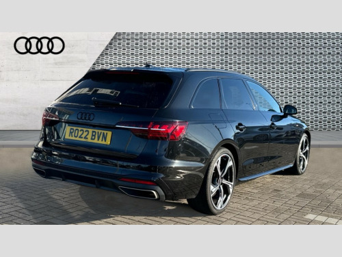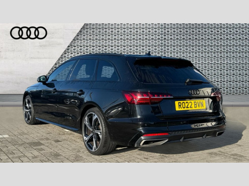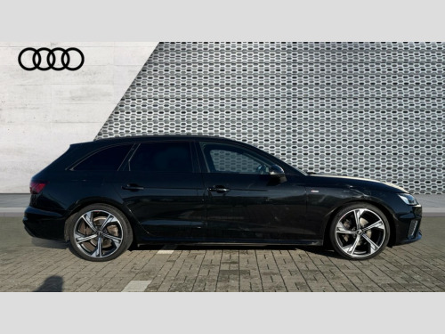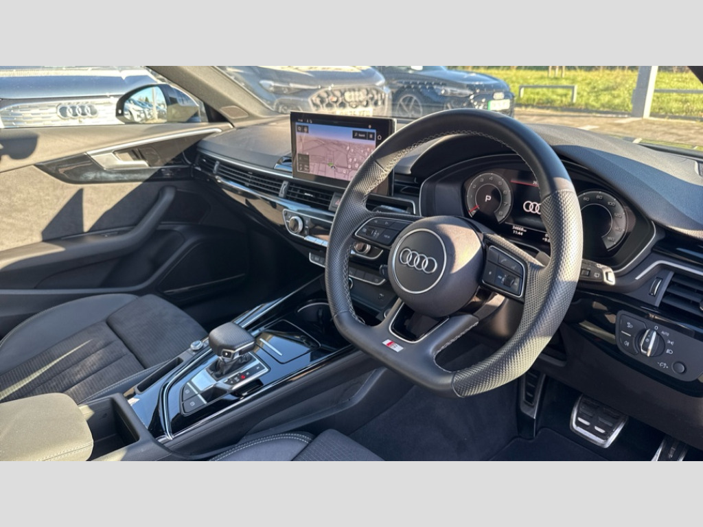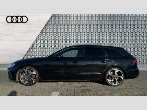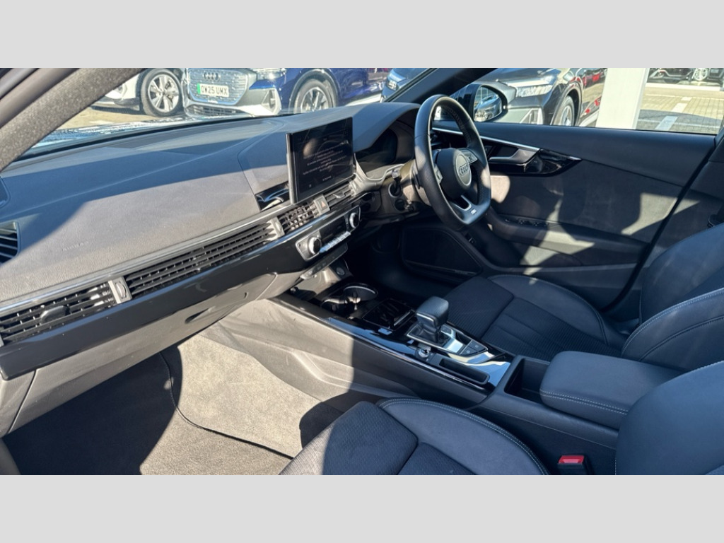 Audi A4 35 TFSI Black Edition 5dr S Tronic Audi connect safety and service (e-call), Audi connect with Amazon Alexa Integration, Audi drive select, Audi parking system plus with front and rear sensors, Audi smartphone interface, Audi virtual cockpit, Automatic start-stop system with coasting functionality and efficiency programme, Bluetooth interface, Electromechanical power steering, Email, calendar and text messages displayed via MMI, MMI Navigation plus with MMI touch includes 10.1" high resolution colour MMI display, 3D map, Power operated tailgate, Rear view camera, Voice control system, 54 litre fuel tank, Sports suspension lowered by 23mm, 2 USB charging ports, 8 passive loudspeakers, DAB digital radio reception, Auto dimming rear view mirror, Black Audi rings and black badging (model name in black badging, no engine badging), Black audi rings decal above rear sills, Body colour door handles, Body colour front spoiler lip, Body colour side sill trim, Electrically folding auto dimming/adjustable/heated door mirrors with LED side indicators and kerb view function for passenger side, Front and rear bumpers with side skirts, Front wing badges, Grained matt black side air inlets with matt aluminium silver inlay, High beam assistant, High gloss black B pillar trims and triangular rear door trim, LED headlights with LED rear lights + dynamic rear indicators + headlight adjustment and high beam, turning light + LED daytime running lights, LED third brake light, Matt aluminium silver tailpipe trim, Privacy glass, Rain and light sensors, Rear diffuser in matt titanium black with trim strip in matt aluminium silver, Rear side wing doors, RS4 rear spoiler in body colour, S Line roof edge spoiler, Variable intermittent front wash/wipe, Windscreen with acoustic glazing, 4 way electric lumbar support for driver and front passenger, 40/20/40 split folding 3 rear seat bench in 3 parts with rear centre armrest, Black cloth headlining, Black perforated leather gearknob, Contrast stitching on seats, steering wheel and gear lever gaiter, Deluxe 3 zone electronic climate control, Door sill trims with aluminium inlay, Electric load area cover, Front and rear head restraints, Front centre armrest, Heated front seats, Illuminated door sill trims with S logo, ISOFIX child seat mounting and top tether, Manual seat adjustment, Single front passenger seat, Stainless steel pedals and foot rest, Black styling pack - A4 Avant, LED Interior light pack - A4/S4, 3 rear seatbelts, 6 airbags - Driver, front passenger, curtain and side windows, Electronic Stabilisation Control (ESC) including ABS, ASR and EDL, Hill hold assist, Multi collision brake assist, Pop-up bonnet for pedestrian protection, Pre sense city, Seatbelt monitoring, Warning triangle and first aid kit, Anti theft alarm, Anti theft wheel bolts, Central locking, Keyless Go, Piano black finish inlay, Tool kit, Tyre repair kit