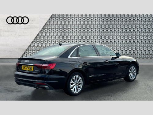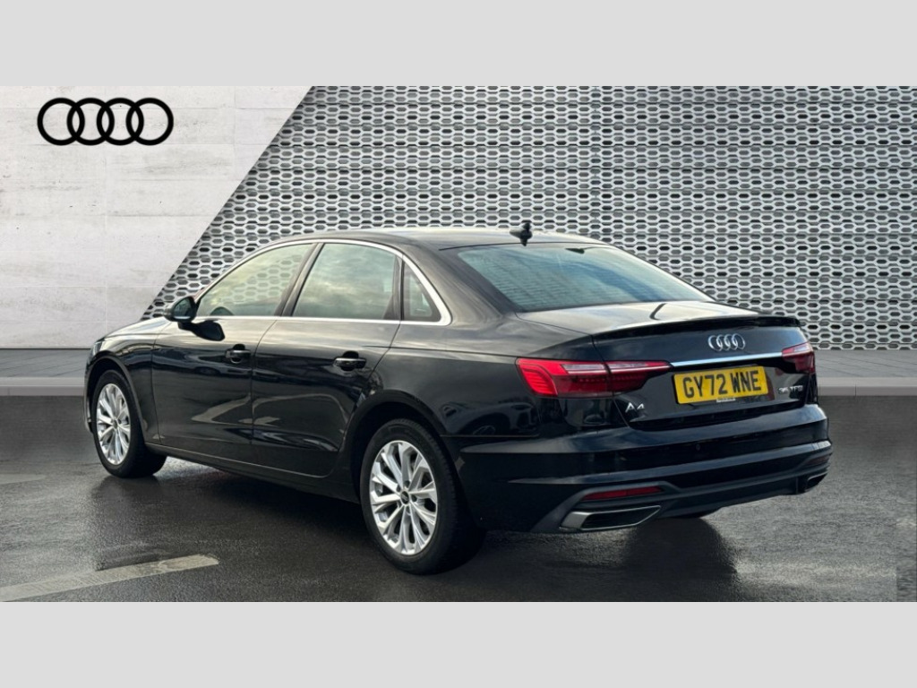 Audi A4 35 TFSI Technik 4dr S Tronic Audi connect safety and service (e-call), Audi connect with Amazon Alexa Integration, Audi drive select, Audi parking system plus with front and rear sensors, Audi smartphone interface, Audi virtual cockpit, Automatic start-stop system with coasting functionality and efficiency programme, Bluetooth interface, Cruise control system with speed limiter, Electric boot lid release, Electromechanical power steering, Email, calendar and text messages displayed via MMI, MMI Navigation plus with MMI touch includes 10.1" high resolution colour MMI display, 3D map, Rear view camera, Voice control system, 54 litre fuel tank, Comfort dynamic suspension, 2 USB charging ports, 8 passive loudspeakers, DAB digital radio reception, Auto dimming rear view mirror, Body coloured door mirrors, Electrically folding auto dimming/adjustable/heated door mirrors with LED side indicators and kerb view function for passenger side, LED headlights and rear lights with LED daytime running lights, LED third brake light, New design rear diffuser, Rain and light sensors, Rear boot, Rear side wing doors, Variable intermittent front wash/wipe, Windscreen with acoustic glazing, 3 spoke high multi-function leather sport steering wheel with paddle shift and height and reach adjustable, 4 way electric lumbar support for driver and front passenger, 40/20/40 split folding 3 rear seat bench in 3 parts with rear centre armrest, Deluxe 3 zone electronic climate control, Door sill trims with aluminium inlay, Front and rear head restraints, Front centre armrest, Heated front seats, Interior lighting, ISOFIX child seat mounting and top tether, Manual seat adjustment, Single front passenger seat, High gloss package - A4, 3 rear seatbelts, 6 airbags - Driver, front passenger, curtain and side windows, Electronic Stabilisation Control (ESC) including ABS, ASR and EDL, Hill hold assist, Multi collision brake assist, Pop-up bonnet for pedestrian protection, Pre sense city, Rear door child safety locks, Seatbelt monitoring, Warning triangle and first aid kit, Anti theft alarm, Anti theft wheel bolts, Central locking, Keyless Go, Tool kit, Tyre repair kit