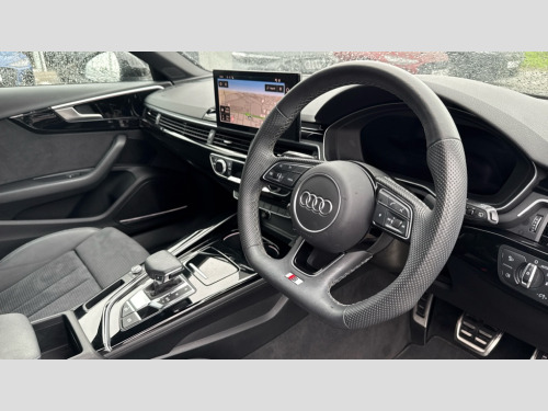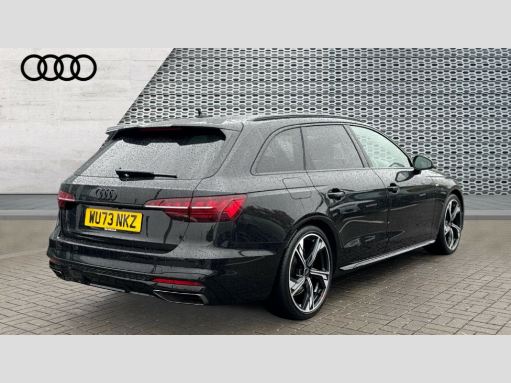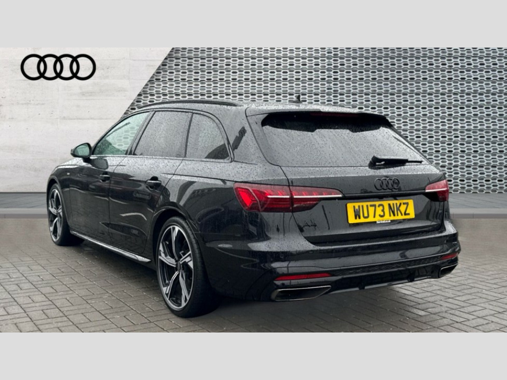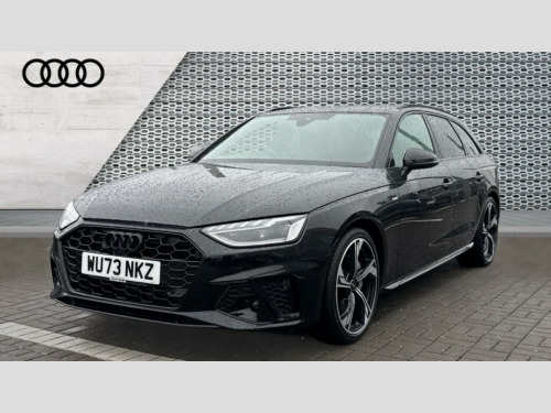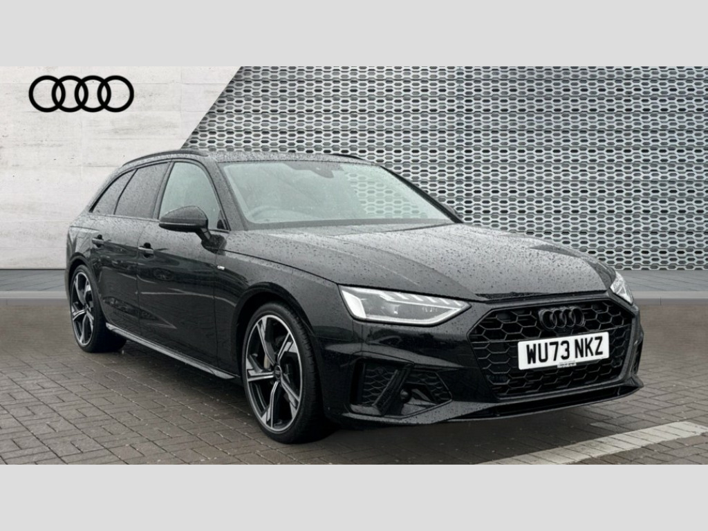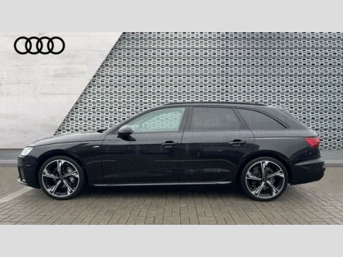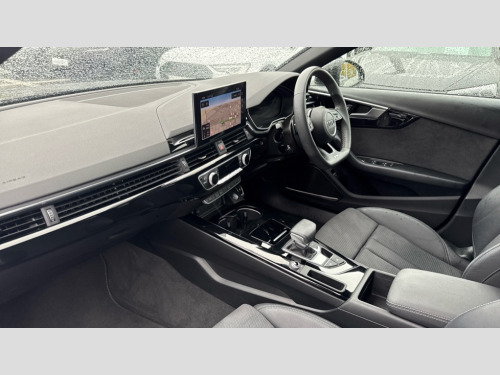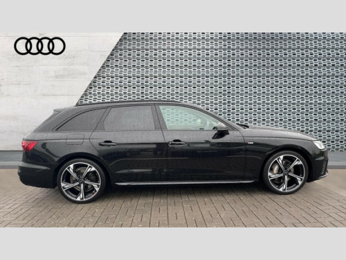 Audi A4 40 TFSI 204 Black Edition 5dr S Tronic Audi connect safety and service (e-call), Audi drive select, Audi smartphone interface, Audi virtual cockpit, Automatic start-stop system with coasting functionality and efficiency programme, Bluetooth interface, Camera based traffic sign recognition, Electromechanical power steering, Email, calendar and text messages displayed via MMI, Front and rear parking sensors, Lane departure warning, MMI Navigation plus with MMI touch includes 10.1" high resolution colour MMI display, 3D map, Power operated tailgate, Rear view camera, Voice control system, 54 litre fuel tank, Sports suspension lowered by 23mm, 2 USB charging ports, 8 passive loudspeakers, DAB digital radio reception, Audi beam uses LEDs to project the audi logo onto the ground as you exit your A4, Auto dimming rear view mirror, Black Audi rings and black badging (model name in black badging, no engine badging), Body colour door handles, Body colour front spoiler lip, Body colour side sill trim, Electric adjustable/heated/folding door mirrors with auto dimming, Exhaust tailpipes in high dark chrome, Grained matt black side air inlets with matt aluminium silver inlay, High beam assistant, High gloss black B pillar trims and triangular rear door trim, LED headlights with LED rear lights + dynamic rear indicators + headlight adjustment and high beam, turning light + LED daytime running lights, LED third brake light, Privacy glass, Rain and light sensors, Rear diffuser in matt black with trim strip in matt aluminium silver, Rear side wing doors, Rear wiper, RS4 rear spoiler in body colour, S Line roof edge spoiler, Sport front and rear bumpers with side skirts, Variable intermittent front wash/wipe, Windscreen with acoustic glazing, 4 way electric lumbar support for driver and front passenger, 40/20/40 split folding 3 rear seat bench in 3 parts with rear centre armrest, Black carpets, Black cloth headlining, Black perforated leather gearknob, Contrast stitching on seats, steering wheel and gear lever gaiter, Deluxe 3 zone electronic climate control, Electric load area cover, Front and rear head restraints, Front centre armrest, Heated front seats, Illuminated door sill trims with S logo, ISOFIX child seat mounting and top tether, Manual seat adjustment, Single front passenger seat, Stainless steel pedals and foot rest, Black styling pack - A4 Avant, LED Interior light pack - A4/S4, 3 rear seatbelts, 6 airbags - Driver, front passenger, curtain and side windows, Attention and drowsiness assist, Electronic Stabilisation Control (ESC) including ABS, ASR and EDL, Hill hold assist, Multi collision brake assist, Pop-up bonnet for pedestrian protection, Pre sense city, Rear door child safety locks, Seatbelt monitoring, Warning triangle and first aid kit, Anti theft alarm, Anti theft wheel bolts, Central locking, Keyless Go, Piano black finish inlay, Tool kit, Tyre repair kit