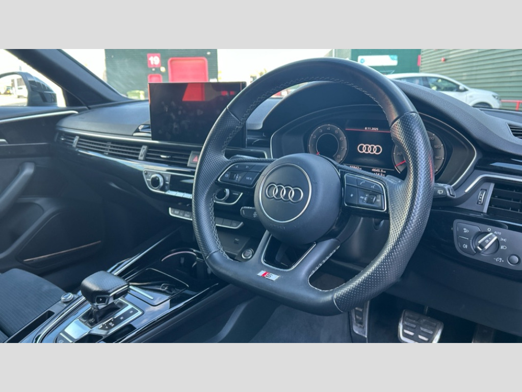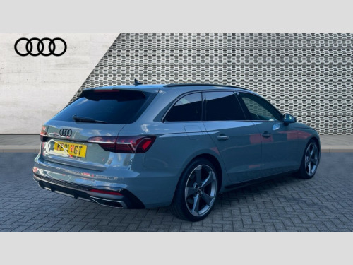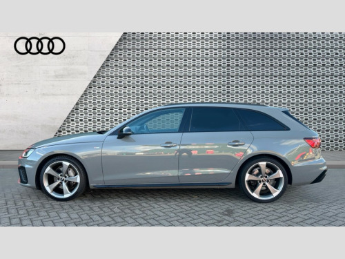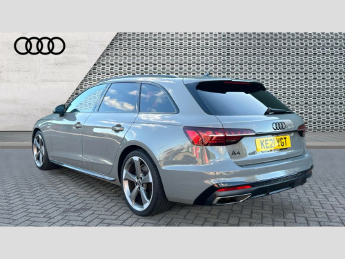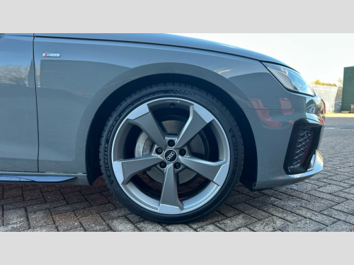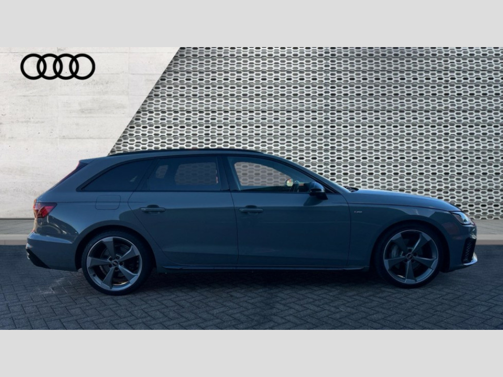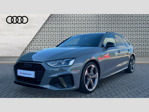 Audi A4 40 TFSI 204 Black Edition 5dr S Tronic Audi connect safety and service (e-call), Audi connect with Amazon Alexa Integration, Audi drive select, Audi parking system plus with front and rear sensors, Audi smartphone interface, Audi virtual cockpit, Automatic start-stop system with coasting functionality and efficiency programme, Bluetooth interface, Electromechanical power steering, Email, calendar and text messages displayed via MMI, MMI Navigation plus with MMI touch includes 10.1" high resolution colour MMI display, 3D map, Power operated tailgate, Rear view camera, Voice control system, 54 litre fuel tank, Sports suspension lowered by 23mm, 2 USB charging ports, 8 passive loudspeakers, DAB digital radio reception, Auto dimming rear view mirror, Black Audi rings and black badging (model name in black badging, no engine badging), Black audi rings decal above rear sills, Body colour door handles, Body colour front spoiler lip, Body colour side sill trim, Electrically folding auto dimming/adjustable/heated door mirrors with LED side indicators and kerb view function for passenger side, Front and rear bumpers with side skirts, Front wing badges, Grained matt black side air inlets with matt aluminium silver inlay, High beam assistant, High gloss black B pillar trims and triangular rear door trim, LED headlights with LED rear lights + dynamic rear indicators + headlight adjustment and high beam, turning light + LED daytime running lights, Matt aluminium silver tailpipe trim, Privacy glass, Rain and light sensors, Rear diffuser in matt titanium black with trim strip in matt aluminium silver, RS4 rear spoiler in body colour, S Line roof edge spoiler, Windscreen with acoustic glazing, 4 way electric lumbar support for driver and front passenger, 40/20/40 split folding 3 rear seat bench in 3 parts with rear centre armrest, Black cloth headlining, Black perforated leather gearknob, Contrast stitching on seats, steering wheel and gear lever gaiter, Deluxe 3 zone electronic climate control, Door sill trims with aluminium inlay, Electric load area cover, Front and rear head restraints, Front centre armrest, Heated front seats, Illuminated door sill trims with S logo, ISOFIX child seat mounting and top tether, Manual seat adjustment, Stainless steel pedals and foot rest, Black styling pack - A4 Avant, LED Interior light pack - A4/S4, 3 rear seatbelts, 6 airbags - Driver, front passenger, curtain and side windows, Electronic Stabilisation Control (ESC) including ABS, ASR and EDL, Hill hold assist, Multi collision brake assist, Pop-up bonnet for pedestrian protection, Pre sense city, Seatbelt monitoring, Warning triangle and first aid kit, Anti theft alarm, Anti theft wheel bolts, Keyless Go, Piano black finish inlay, Tool kit, Tyre repair kit