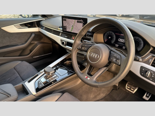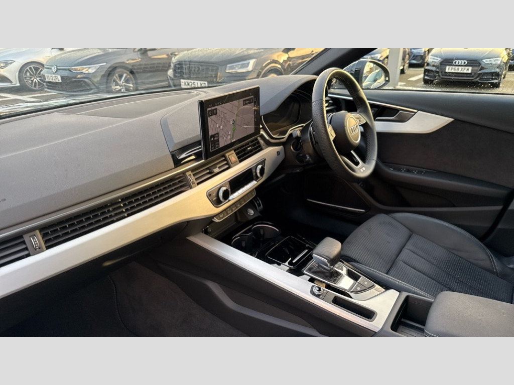 Audi A4 40 TFSI 204 S Line 5dr S Tronic Audi connect safety and service (e-call), Audi drive select, Audi smartphone interface, Audi virtual cockpit, Automatic start-stop system with coasting functionality and efficiency programme, Bluetooth interface, Camera based traffic sign recognition, Electromechanical power steering, Email, calendar and text messages displayed via MMI, Front and rear parking sensors, Lane departure warning, MMI Navigation plus with MMI touch includes 10.1" high resolution colour MMI display, 3D map, Power operated tailgate, Rear view camera, Voice control system, 54 litre fuel tank, Sports suspension lowered by 23mm, 2 USB charging ports, 8 passive loudspeakers, DAB digital radio reception, Aluminium roof rails, Auto dimming rear view mirror, Body colour door handles, Body colour front spoiler lip, Body colour side sill trim, Body coloured door mirrors, Electric adjustable/heated/folding door mirrors with auto dimming, Grained matt black side air inlets with matt aluminium silver inlay, High beam assistant, Honeycomb structure radiator grille in grained matt black, LED headlights with LED rear lights + dynamic rear indicators + headlight adjustment and high beam, turning light + LED daytime running lights, LED third brake light, Matt aluminium silver tailpipe trim, Privacy glass, Rain and light sensors, Rear side wing doors, Rear wiper, S Line badges on the front wings, S line front and rear bumpers with side skirts, S Line rear diffuser in matt anthracite black with trim strip in matt aluminium silver, S Line roof edge spoiler, Variable intermittent front wash/wipe, Windscreen with acoustic glazing, 3 spoke high multi-function sports leather steering wheel grips in perforated leather with S badging including paddle shift, 4 way electric lumbar support for driver and front passenger, 40/20/40 split folding 3 rear seat bench in 3 parts with rear centre armrest, Black carpets, Black cloth headlining, Black perforated leather gearknob, Contrast stitching on seats, steering wheel and gear lever gaiter, Deluxe 3 zone electronic climate control, Electric load area cover, Front and rear head restraints, Front centre armrest, Heated front seats, Illuminated door sill trims with S logo, ISOFIX child seat mounting and top tether, Manual seat adjustment, Single front passenger seat, Stainless steel pedals and foot rest, High gloss package - A4, LED Interior light pack - A4/S4, 3 rear seatbelts, 6 airbags - Driver, front passenger, curtain and side windows, Attention and drowsiness assist, Electronic Stabilisation Control (ESC) including ABS, ASR and EDL, Hill hold assist, Multi collision brake assist, Pop-up bonnet for pedestrian protection, Pre sense city, Rear door child safety locks, Seatbelt monitoring, Warning triangle and first aid kit, Anti theft alarm, Anti theft wheel bolts, Central locking, Keyless Go, Matt brushed aluminium inlays, Tool kit, Tyre repair kit