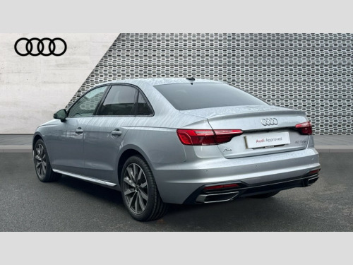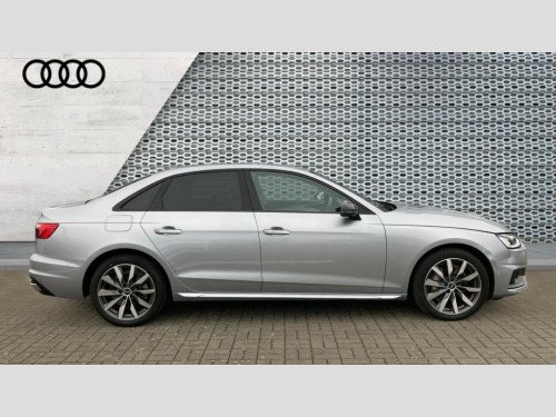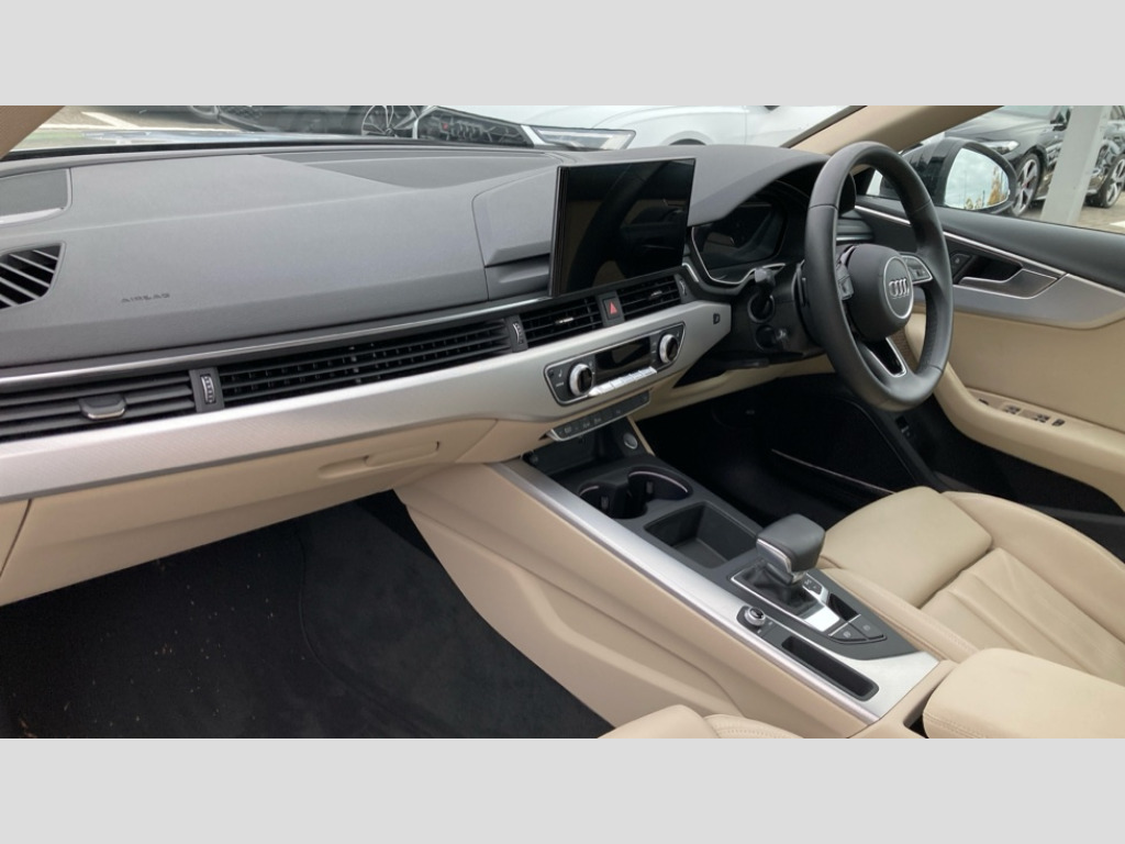 Audi A4 40 TFSI 204 Sport Edition 4dr S Tronic [C+S] Audi connect safety and service (e-call), Audi drive select, Audi parking system plus with front and rear sensors, Audi smartphone interface, Audi virtual cockpit, Automatic start-stop system with coasting functionality and efficiency programme, Bluetooth interface, Cruise control system with speed limiter, Electric boot lid release, Electromechanical power steering, MMI Navigation plus with MMI touch includes 10.1" high resolution colour MMI display, 3D map, Voice control system, Comfort dynamic suspension, 2 USB charging ports, DAB digital radio reception, Auto dimming rear view mirror, Body colour door handles, Body colour side sill trim, Body coloured door mirrors, Electrically folding auto dimming/adjustable/heated door mirrors with LED side indicators and kerb view function for passenger side, LED headlights and rear lights with LED daytime running lights, Matt aluminium silver tailpipe trim, Privacy glass, Rain and light sensors, Rear diffuser in matt titanium black with trim strip in matt aluminium silver, Sport front and rear bumpers with side skirts, Windscreen with acoustic glazing, 3 spoke high multi-function leather sport steering wheel with paddle shift and height and reach adjustable, 4 way electric lumbar support for driver and front passenger, 40/20/40 split folding 3 rear seat bench in 3 parts with rear centre armrest, Deluxe 3 zone electronic climate control, Door sill trims with aluminium inlay, Front and rear head restraints, Front centre armrest, Heated front seats, ISOFIX child seat mounting and top tether, Manual seat adjustment, Twin leather upholstery + front sports seats, Comfort and sound pack - A4, High gloss package - A4, LED Interior light pack - A4/S4, Titanium black styling pack - A4 Saloon, 3 rear seatbelts, 6 airbags - Driver, front passenger, curtain and side windows, Electronic Stabilisation Control (ESC) including ABS, ASR and EDL, Hill hold assist, Multi collision brake assist, Pop-up bonnet for pedestrian protection, Pre sense city, Seatbelt monitoring, Warning triangle and first aid kit, Anti theft alarm, Anti theft wheel bolts, Keyless Go, Aluminium ellipse silver inlays, 18" 10 spoke dynamic design alloy wheels, Tool kit, Tyre repair kit