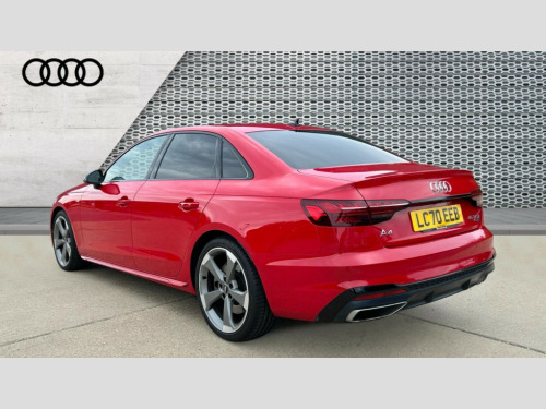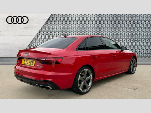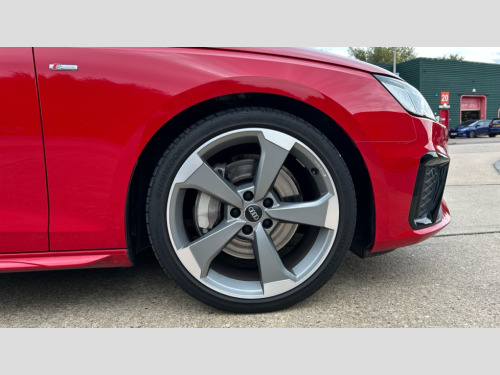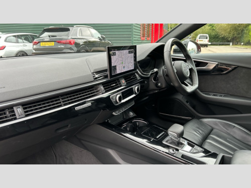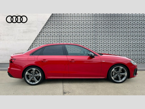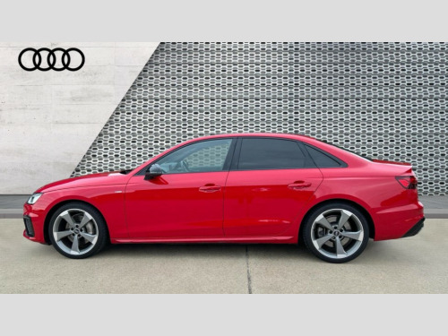 Audi A4 45 TFSI 265 Quattro Black Edition 4dr S Tronic Audi connect safety and service (e-call), Audi drive select, Audi parking system plus with front and rear sensors, Audi smartphone interface, Audi virtual cockpit, Automatic start-stop system with coasting functionality and efficiency programme, Bluetooth interface, Electric boot lid release, Electromechanical power steering, MMI Navigation plus with MMI touch includes 10.1" high resolution colour MMI display, 3D map, Rear view camera, Voice control system, 58 Litre fuel tank, Sports suspension lowered by 23mm, 2 USB charging ports, 8 passive loudspeakers, DAB digital radio reception, Auto dimming rear view mirror, Body colour door handles, Body colour front spoiler lip, Body colour side sill trim, Electrically folding auto dimming/adjustable/heated door mirrors with LED side indicators and kerb view function for passenger side, Grained matt black side air inlets with matt aluminium silver inlay, High beam assistant, LED headlights with LED rear lights + dynamic rear indicators + headlight adjustment and high beam, turning light + LED daytime running lights, Matt aluminium silver tailpipe trim, Rain and light sensors, S Line badges on the front wings, S line front and rear bumpers with side skirts, S Line rear diffuser in matt titanium black with trim strip in matt aluminium silver, Windscreen with acoustic glazing, 4 way electric lumbar support for driver and front passenger, 40/20/40 split folding 3 rear seat bench in 3 parts with rear centre armrest, Black cloth headlining, Black perforated leather gearknob, Contrast stitching on seats, steering wheel and gear lever gaiter, Deluxe 3 zone electronic climate control, Door sill trims with aluminium inlay, Front and rear head restraints, Front centre armrest, Heated front seats, Illuminated door sill trims with S logo, ISOFIX child seat mounting and top tether, Manual seat adjustment, Stainless steel pedals and foot rest, LED Interior light pack - A4/S4, Titanium black styling pack - A4 Saloon, 3 rear seatbelts, 6 airbags - Driver, front passenger, curtain and side windows, Electronic Stabilisation Control (ESC) including ABS, ASR and EDL, Hill hold assist, Multi collision brake assist, Pop-up bonnet for pedestrian protection, Pre sense city, Seatbelt monitoring, Warning triangle and first aid kit, Anti theft alarm, Anti theft wheel bolts, Keyless Go, Piano black finish inlay, 19" 5 arm rotor design alloy wheels titanium matt look, Tool kit, Tyre repair kit