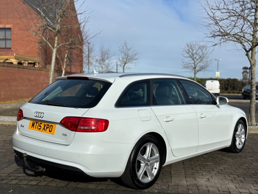 Stunning new addition to the Carwhinley stable... Taster pics just so you know she is here, pre valet, pre prep, pre everything we do before you get em. But trust me on this, when you drive this car you will just say ?WANT? This is the highly sought after A4 Avant TDI SE TECHNIK Diesel 5 door Estate finished in Glacier White Metallic. Only 82k with Service History adding to the already excellent MOT history, lots of green passes on there and only ever pulled up once for a rubber bush and a couple of times for tyres. Huge specification, Huge amount of motor vehicle for your money here folks. Over £5k+ optional extra spec inc Tech Pack and Comfort Pack. Integrated full colour SAT-NAV, Full black leather interior, Heated front seats, Front and rear parking sensors, Stunning Metallic White exterior finish, 17' alloys. Plus all the accoutrements you expect of a modern day motor car... Air conditioning, Bluetooth, Cruise control, Climate control, This Audi is truly exceptional. It will NOT be faulted nor disappoint. This A4 Avant is here now.. MOT, service and valet. It is something very special and to behold to the 1st person to walk through my door who buys her without hesitation. Astonishingly this car is also only £35 annual Tax. This Audi A4 Avant really must be seen. A very scarce find in this ever so popular colour with fabulous array of additional factory optional extras, she is bound to be immensely popular. We supply with a fresh 12 month MOT, freshly Serviced with new timing belt kit and water pump fitted, 6 months Nationally approved warranty, 12 months introductory AA Cover and 2 keys. Just another astonishingly beautiful motor car to grace our forecourt. Part exchange considered and yes we arrange finance no problem to suit all credit profiles through a wide variety panel of go to lenders. 12V Power Socket, 17in Alloy Wheels, ABS, Adjustable Steering, Air Conditioning, Alarm, Alloy Wheels, Automatic Headlight Levelling, Automatic Rearview Mirror Dimming, Bluetooth, Body Coloured Bumpers, Brake Assist, Central Locking, Climate Control, Cruise Control, Cup Holders, Day/night Rearview Mirror, Daytime Running Lights, ESP, Electric Heated Seats, Electric Mirrors, Electric Windows, Engine Immobiliser, Folding Rear Seats, Front Airbags, Front Fog Lights, Heated Door Mirrors, Heated Rear Windshield, Heated Windscreen, Hill-Start Assist, ISOFix Anchor Point, LED Lights, Leather Seats, MOT, MP3, MP3 Player Connection, Metallic Paint, Parking Assistance, Parking Sensors, Power Assisted Steering, Privacy/Tinted Glass, Radio, Rain Sensor, Reading Lights, Rear Air Vents, Safety Belts, Safety Belts Rear, Satellite Navigation, Service History, Side Impact Airbags, Spare Wheel, Speakers, Speed Limiter, Start Stop System, Steering Wheel Controls, Traction Control, V5 Registration Document, Voice Control
