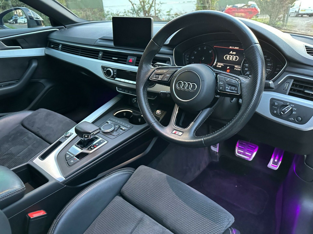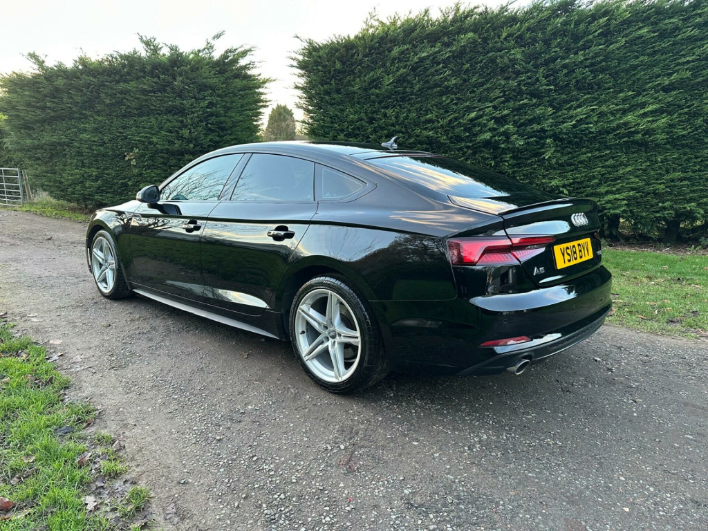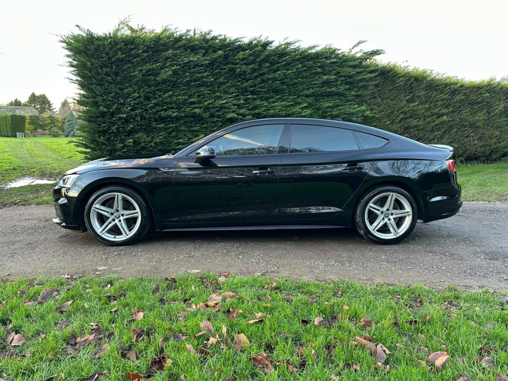JUST ARRIVED!!Another popular Audi A5 1.4 TFSI S line Sportback S Tronic Euro 6 5door in Black. It's an 3 owner car with Service records at 13/10/19 18,908 miles, 31/3/21 41,513 miles and 30/4/25 77,142 miles. It has a great specification that includes Half Leather Seats, 18in Twin Spoke Alloys, DAB, Cruise Control, Bluetooth, Privacy Glass, MMI Navigation, 3 Zone Climate Control, Heated Front Seats, Keyless Go, Front & Rear Parking Sensors, Power Tailgate to name just a few. It is supplied with 2 keys, 6 Months RAC Platinum Warranty and 12 Months Breakdown Cover.NO ULEZ charge.Competitive finance packages arranged with rates starting from 9.9% APR (Subject to status).Part exchange welcome. HPI Clear. Call now to arrange a viewing. ivacy glass, 18in alloy wheels - 5-twin-spoke star design, 2 x usb charging ports and 1 x aux-in, 4-way electric lumbar support, 6-airbag system, abs - anti-lock braking system, air inlets - horizontal inlay in matt aluminium, anti theft locking wheel bolts, anti-theft alarm, audi connect infotainment services - 3 month trial, audi connect safety and service, audi drive select, audi smartphone interface, audi sound system, auto-dimming rear-view mirror, bluetooth interface, body coloured door mirrors, cd drive, chrome-plated exhaust trim, cloth headlining in black, colour drivers information system with 7in high-resolution tft screen, contrast stitching on seats - steering wheel and gear lever gaiter, cruise control with speed limiter, dab digital radio reception, deluxe 3-zone electronic climate control, door mirrors - electrically adjustable and heated with built-in led indicators, esc - electronic stabilisation control inc abs - asr and edl, electric windows - front and rear, electrically adjustable front seats, electromechanical parking brake, electromechanical power steering, email - calendar and text messages can be displayed on your vehicles mmi, first aid kit and warning triangle, front centre armrest, front and rear floor mats, gear lever knob in black perforated leather, heated front seats, high gloss package, high multi-function 3-spoke leather steering wheel with grips in perforated leather and s badging with gear-shift paddles, honeycomb side air inlet grille in titan black, isofix child seat mounting and top tether, illuminated door sill trims with s logo, inlays - matt brushed aluminium, keyless go, led headlights with led rear lights and dynamic rear indicators, led interior light package, light and rain sensor, mmi navigation - sd card based, multi collision brake assist, non-smoking package, parking system plus, pedals and footrest - stainless steel, pop-up bonnet for pedestrian protection, power operated tailgate, pre-sense city, radiator grille in twilight grey with matt aluminium inlays, rear diffuser in twilight grey matt with honeycomb grille, rear grille - black grained, s line badges on front wings, s line front and rear bumpers, s line side skirts in black, seat belt monitoring, space saver spare wheel, split-folding 3-seater rear seat bench in 3 parts - 40-20-40, sport suspension, tool kit and car jack, tow bar preparation, tyre pressure warning light, variable restraint system, voice control system, windscreen with acoustic glazing