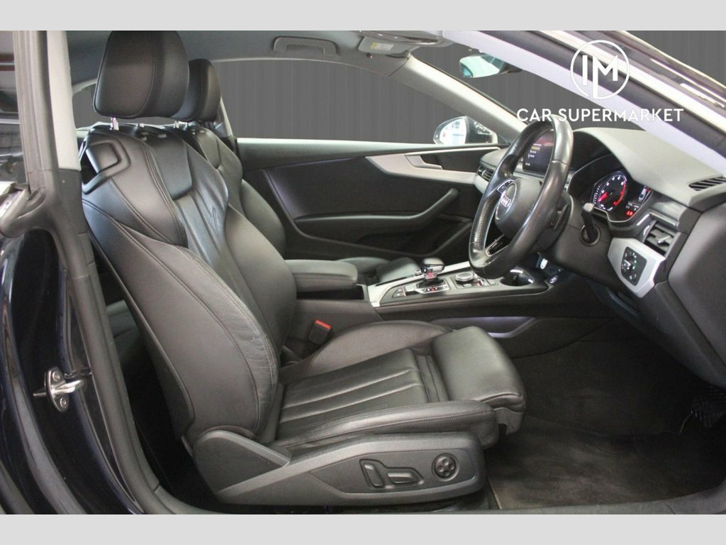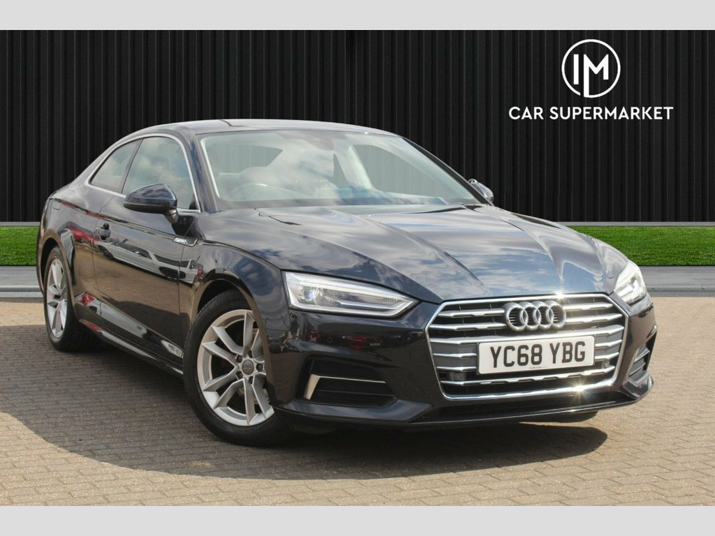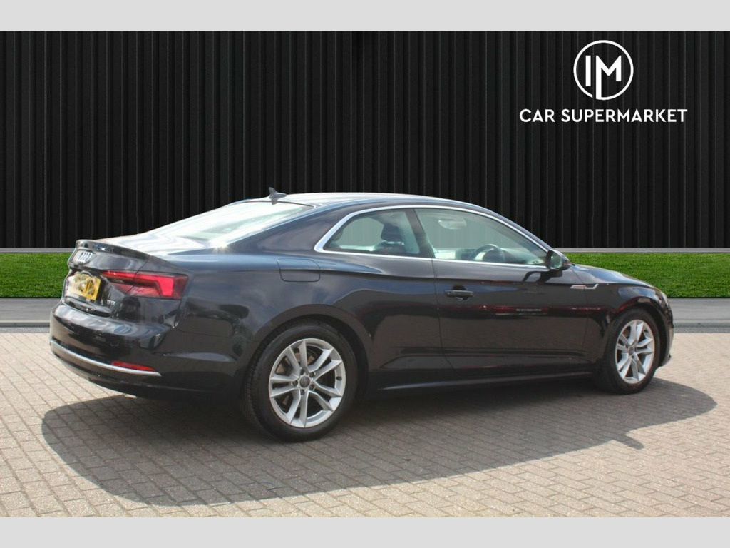 IM Car Supermarket is pleased to offer a Audi A5 1.4 TFSI Sport S Tronic Euro 6 (s/s) 2dr in Black with only 72809 miles on the clock, ULEZ Compliant, NO ULEZ Charges applies to this Vehicle, 3 Months Warranty, Service History, Number of services 5, Last Service 24/06/2025, Last service mileage 71,623 miles, MOT Expiry 20/08/2026 A High Specification includes DAB Digital Radio, Navigation System, Bluetooth Preparation, Navigation SD Card, Heated Seat(s), Cruise Control, Parking Sensor(s), Climate Control, Leather Trim, Space Saver Spare Wheel, 17" Alloy Wheels, Metallic Paint, Phone & Media BT-Connections... 17in Alloy Wheels - 5-Twin-Spoke Design, 2 x USB Charging Ports and 1 x AUX-IN, 4-Way Electric Lumbar Support, 6-Airbag System, ABS - Anti-Lock Braking System, Air Inlets in Titan Black with Matt Alum, Anti Theft Locking Wheel Bolts, Anti-Theft Alarm, Audi Connect Infotainment Services - 3 M, Audi Connect Safety and Service, Audi Drive Select, Audi Smartphone Interface, Audi Sound System, Auto-Dimming Rear-View Mirror, Bluetooth Interface, Body Coloured Door Mirrors, CD Drive, Chrome-Plated Exhaust Trim, Cloth Headlining, Colour Drivers Information System with 7, Comfort Dynamic Suspension, Cruise Control with Speed Limiter, DAB Digital Radio Reception, Deluxe 3-Zone Electronic Climate Contr