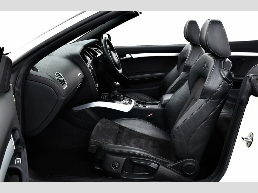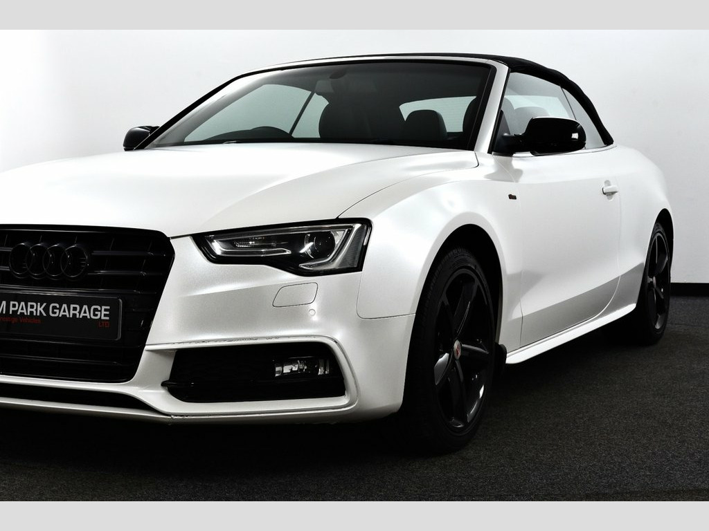 Pearl White (Body Wrap) with Black Leather/Alcantara Interior, Covered only 75k miles & backed with Service History, We are delighted to bring to the market this Gorgeous looking A5 Cabriolet in Beautiful condition and boasting Outstanding Value! This A5 also benefits from having £8,025 Extra's fitted! SPECIFICATION INCLUDES - 18in Alloy Wheels - 10-Spoke Design in Gloss black, Audi Parking System Plus, Black stealth exterior pack, Pearl White body wrap (Silver original colour), Technology Package, Mobile Telephone Preparation - High with Audi Connect, AMI - Audi Music Interface, Inlays - Piano Finish - Black, S line sports suspension, Xenon headlights with LED running lights, Electrically heated + operated door mirrors, Aluminium window surround, Fully automatic acoustic hood, S Line Exterior styling pack, Light and rain sensor pack, Concert radio/single CD player with MP3 facility, SD card slot, 3 spoke S Line Multi-function leather steering wheel, Automatic seatbelt feeder, Front armrest, Front sports seats including electric lumbar support, 3 zone climate control + MUCH MORE! 18in Alloy Wheels - 10-Spoke Design in G, Audi Parking System Plus, Black stealth exterior pack, Pearl White body wrap (Silver original c, Technology Package, Mobile Telephone Preparation - High with, AMI - Audi Music Interface, Inlays - Piano Finish - Black