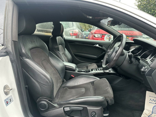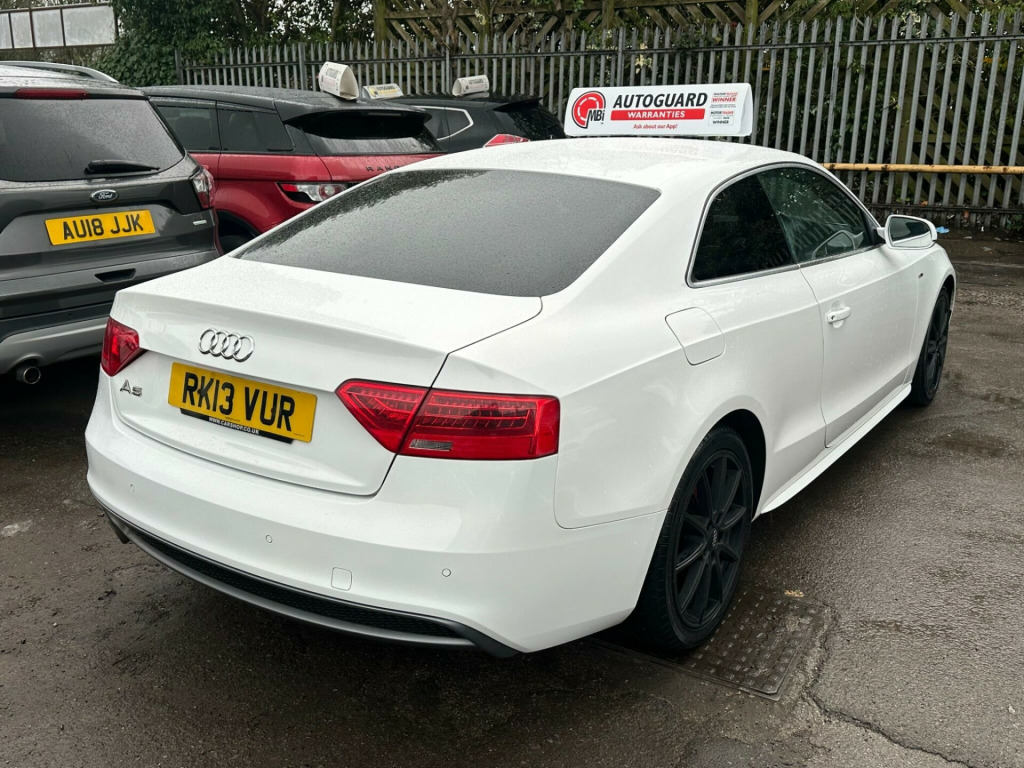 This 2013 Audi A5 TFSI S line boasts an impressive provenance, having had only three owners from new. This stylish coupe features a 1.8 litre petrol engine and comes with the desirable S line trim. For your comfort, it includes electronic three zone climate control and a Bluetooth interface for mobile telephone preparation. Parking is made easier with acoustic parking assistance at the rear, and the Bi Xenon Plus headlights provide excellent visibility.This Audi A5 offers several key advantages over similar vehicles. Its fuel economy is a notable highlight, achieving up to 50 miles per gallon, making it an economical choice. Furthermore, it sits in a low insurance group, which can help reduce running costs. You'll also appreciate the generous boot space, perfect for luggage or shopping, and its low CO2 emissions contribute to a more environmentally friendly drive. v power socket x2, 18in alloy wheels - 5-spoke s line design, abs - anti-lock braking system, aux-in socket, acoustic parking system - rear, airbags - driver, airbags - front passenger, airbags - front side system, airbags - head level side for front and rear, alarm - thatcham category 1, audi sound system, auto opening boot lid, automatic wipers with rain sensor, climate control - electronic 3-zone, cloth headlining in black, colour drivers information system - dis, concert radio - mp3-cd player, cup holders - centre console, door mirrors - electrically adjustable and heated, esp - electronic stability programme, electric windows - front, electrically adjustable 4-way lumbar support, electromechanical power steering, first aid kit, front centre armrest, front fog lights, headlights - automatic adjustment, headlights - bi-xenon plus, headlights washers, isofix child seat preparation front and rear with passenger airbag deactivation switch, inlays - matt brushed aluminium, intelligent key, led daytime running lights, leather armrests, light and rain sensor package, mobile telephone preparation - bluetooth interface, seats - drivers manual height adjustment, space saver spare wheel, split-folding rear seats, sport suspension, steering column - rake and reach adjustment, steering wheel - 3-spoke leather - multi-function - sports, steering wheel - multi-function