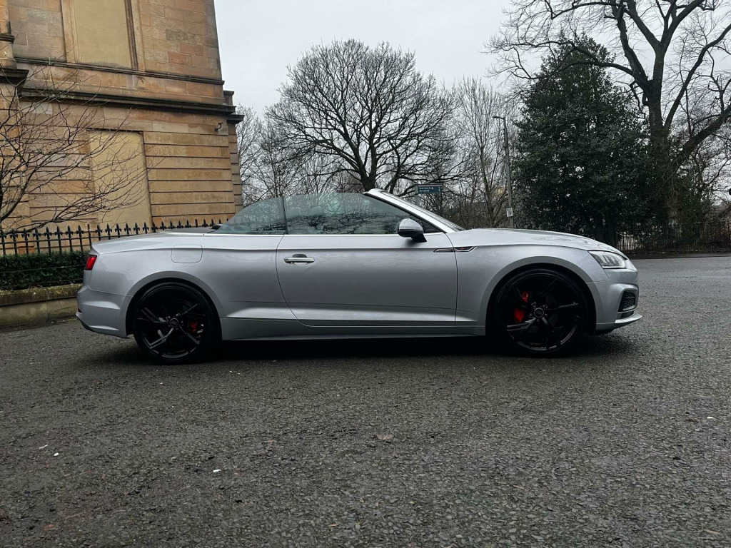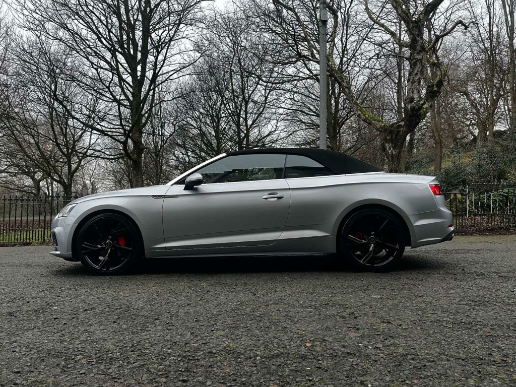Timing Belt and Water Pump done, Last Serviced at 67,997 miles in May 2025, Very well looked after example, Supplied with 2Keys and a Full Service History, Specification includes Satellite Navigation, Cruise Control, Privacy Glass, Front and Rear Parking Sensors, Stunning Upgraded 20'' Alloy Wheels Finished in Gloss Black, DAB Radio, Paddle-shift, 3 Spoke Chunky Sports Leather Steering Wheel with Multi Functions, Alcantara Door Inserts, Red Calipers, Traction Control, Spare Wheel, Xenon Headlights, Drive Select, Stunning Example at very competitive price!!!Introducing the stunning Audi A5 in sleek Silver finish, boasting a range of luxurious extras to enhance your driving experience. Sink into the Fine Nappa Leather Sports Seats with S embossing, providing both comfort and style. Safety features such as Rear Side Airbags and Hill Hold Assist give you peace of mind on the road.With a 54L Fuel Tank, the Audi A5 is ready for any adventure. The elegant Floret Silver exterior is complemented by the Piano Finish Black inlays and 20'' Gloss Black Alloys, making a bold statement wherever you go. Experience convenience with the Flat-Bottomed 3-Spoke Leather Steering Wheel and Door Mirrors that fold with Auto-Dimming and Memory Function. The Extended LED Interior Lighting Package sets the mood with multi-coloured ambiance, while the High-Beam Assist and Audi Side Assist ensure a safe journey every time.Don't miss out on the advanced Technology Package, including features like Pre-Sense Rear and Audi Side Assist. Elevate your driving experience with the Audi A5 - where luxury meets performance.. 18in Alloy Wheels - 5-Twin-Spoke Star Design, 2 x USB Charging Ports and 1 x AUX-IN, 4-Airbag System, 4-Way Electric Lumbar Support, ABS - Anti-Lock Braking System, Acoustic Hood - Fully Automatic, Acoustic Soft Top - Black, Air Inlets - Horizontal Inlay in Matt Aluminium, Anti Theft Locking Wheel Bolts, Anti-Theft Alarm, Audi Connect Infotainment Services - 3 Month Trial, Audi Connect Safety and Service, Audi Drive Select, Audi Smartphone Interface, Audi Sound System, Auto-Dimming Rear-View Mirror, Bluetooth Interface, Body Coloured Door Mirrors, CD Drive, Chrome-Plated Exhaust Trim, Cloth Headlining in Black, Colour Drivers Information System with 7in High-Resolution TFT Screen, Contrast Stitching on Seats - Steering Wheel and Gear Lever Gaiter, Cruise Control with Speed Limiter, DAB Digital Radio Reception, Deluxe 3-Zone Electronic Climate Control, Door Mirrors - Electrically Adjustable and Heated with Built-in LED Indicators, ESC - Electronic Stabilisation Control inc ABS - ASR and EDL, Electric Boot Lid Release, Electric Windows - Front, Electrically Adjustable Front Seats, Electromechanical Parking Brake, Electromechanical Power Steering, Email - Calendar and Text Messages can be Displayed on your Vehicles MMI, First Aid Kit and Warning Triangle, Front Centre Armrest, Front and Rear Floor Mats, Gear Lever Knob in Black Perforated Leather, Heated Front Seats, High Gloss Package, High Multi-Function 3-Spoke Leather Steering Wheel with Grips in Perforated Leather and S Badging with Gear-Shift Paddles, Honeycomb Side Air Inlet Grille in Titan Black, ISOFIX Child Seat Mounting and Top Tether, Illuminated Door Sill Trims with S Logo, Inlays - Matt Brushed Aluminium, Keyless Go, LED Headlights with LED Rear Lights and Dynamic Rear Indicators, LED Interior Light Package, Light and Rain Sensor, MMI Navigation - SD Card Based, Multi Collision Brake Assist, Non-Smoking Package, Parking System Plus, Pedals and Footrest - Stainless Steel, Pop-Up Bonnet for Pedestrian Protection, Pre-Sense City, Radiator Grille in Twilight Grey with Matt Aluminium Inlays, Rear Diffuser in Twilight Grey Matt with Honeycomb Grille, Rear Grille - Black Grained, S Line Badges on Front Wings, S Line Front and Rear Bumpers, S line Side Skirts in Black, Seat Belt Microphone, Seat Belt Monitoring, Space Saver Spare Wheel, Split-Folding 2-Seater Rear Seat Bench in 2 Parts - 50-50, Sport Suspension, Tool Kit and Car Jack, Tow Bar Preparation, Tyre Pressure Warning Light, Variable Restraint System, Voice Control System, Windscreen with Acoustic Glazing, Fine Nappa Leather - Sports Seats - S Embossed - Black, Rear Side Airbags, Hill Hold Assist, Fuel Tank 54L, Floret Silver, Inlays - Piano Finish - Black, Flat-Bottomed 3-Spoke Leather High Multi-Function Steering Wheel, Extended LED Interior Lighting Package - Multi-Coloured, High-Beam Assist, Door Mirrors - Folding with Auto-Dimming and Memory Function, Audi Side Assist including Pre-Sense Rear, Technology Package, 20'' Alloys finished in Gloss Black.