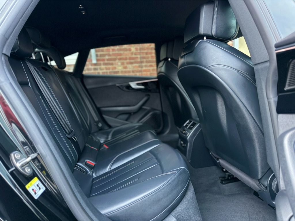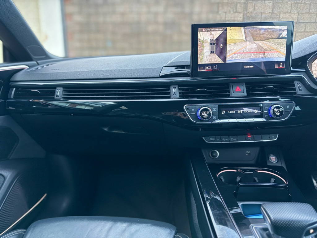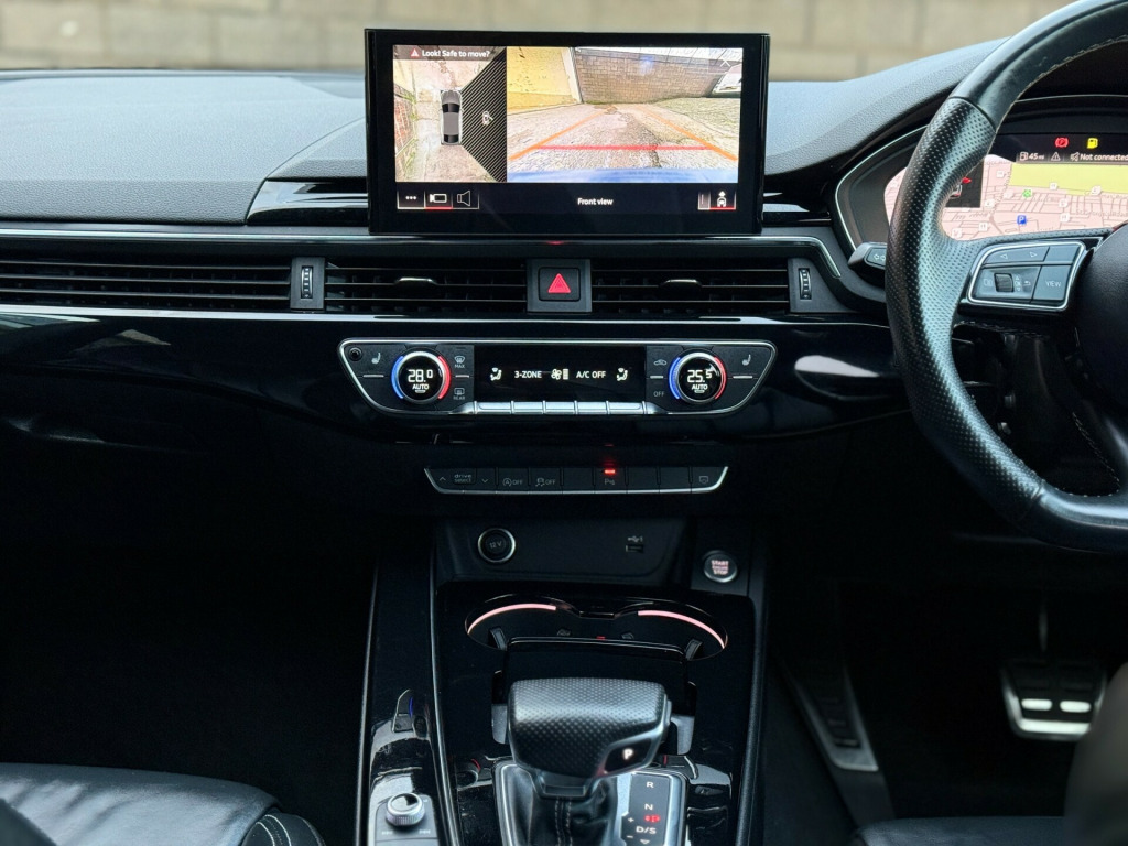 Clean Audi A4 with only 36k miles, full service history (4 services inc. 3 at Audi), comes with 12 months MOT and 6 months nationwide warranty. Option to continue £36 monthly payments till Mar 2027 for manufacturer warranty, one Audi service and MOT. One owner from new. Features include SatNav, Bang & Olufsen Sound System, Virtual Cockpit Dashboard, Apple CarPlay/Android Auto, 360 Degree Camera, Ambient Lights, Parking Sensors, Cruise Control, Speed Limiter, Leather Upholstery, Advanced Key with Foot-Activated Boot Opening, Audi Drive Select (Comfort, Dynamic, Individual etc), Air-Conditioning, Climate Control, Alloy Wheels, Radio/CD/MP3 Player, USB A & C Connection, DAB Tuner, Electric Windows and Folding Mirrors, etc., in alloy wheels - 9j 5-twin-spoke - polygon design - gloss anthracite black - gloss turned finish, anti theft locking wheel bolts, black styling package, body coloured side sill trims, door handles - body coloured, door mirrors - black housing, electric windows - front, front spoiler lip in body colour, privacy glass, radiator grille with honeycomb structure in grained matt black, s line rear diffuser in matt titanium black with trim strip in matt aluminium silver, s model rear spoiler in black, side air inlets in grained matt black with inlay in matt aluminium silver, tailpipe trims in matt aluminium silver, tyre repair kit, 4-way electric lumbar support, audi virtual cockpit, auto-dimming rear-view mirror, cloth headlining in black, contrast stitching on seats - steering wheel and gear lever gaiter, deluxe 3-zone electronic climate control, email - calendar and text messages can be displayed on your vehicles mmi, flat-bottomed 3-spoke leather high multi-function steering wheel, front centre armrest, gear lever knob in black perforated leather, heated front seats, illuminated door sill trims with s logo, inlays - piano finish - black, keyless go, led interior light package, manual seat adjustment, pedals in stainless steel, power operated tailgate, split-folding 3-seater rear seat bench in 3 parts - 40-20-40, tool kit, 6-airbag system, anti-theft alarm, esc - electronic stabilisation control inc abs - asr and edl, first aid kit and warning triangle, hill hold assist, isofix child seat mounting and top tether, multi collision brake assist, pop-up bonnet for pedestrian protection, pre-sense city, seat belt monitoring, 8 passive loudspeakers, audi connect infotainment services (36 month subscription from new), audi connect safety and service, audi connect with amazon alexa integration, audi smartphone interface, bluetooth interface, dab digital radio reception, mmi navigation plus with mmi touch, two additional usb ports for rear passengers in the rear centre console, audi drive select, automatic start-stop with coasting functionality and efficiency programme, cruise control system with speed limiter, electromechanical power steering, parking system plus - front and rear sensors, rear-view camera, sport suspension, voice control, audi matrix led headlights with led rear lights and dynamic front and rear indicators, light and rain sensor