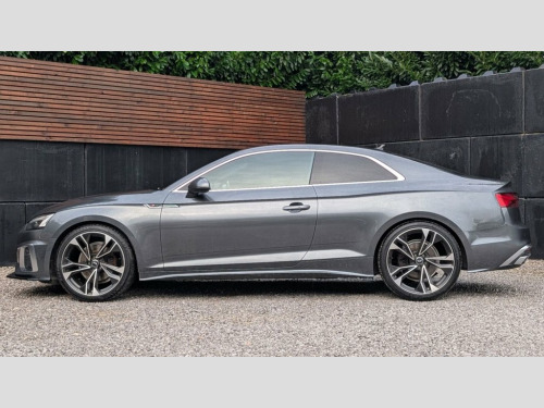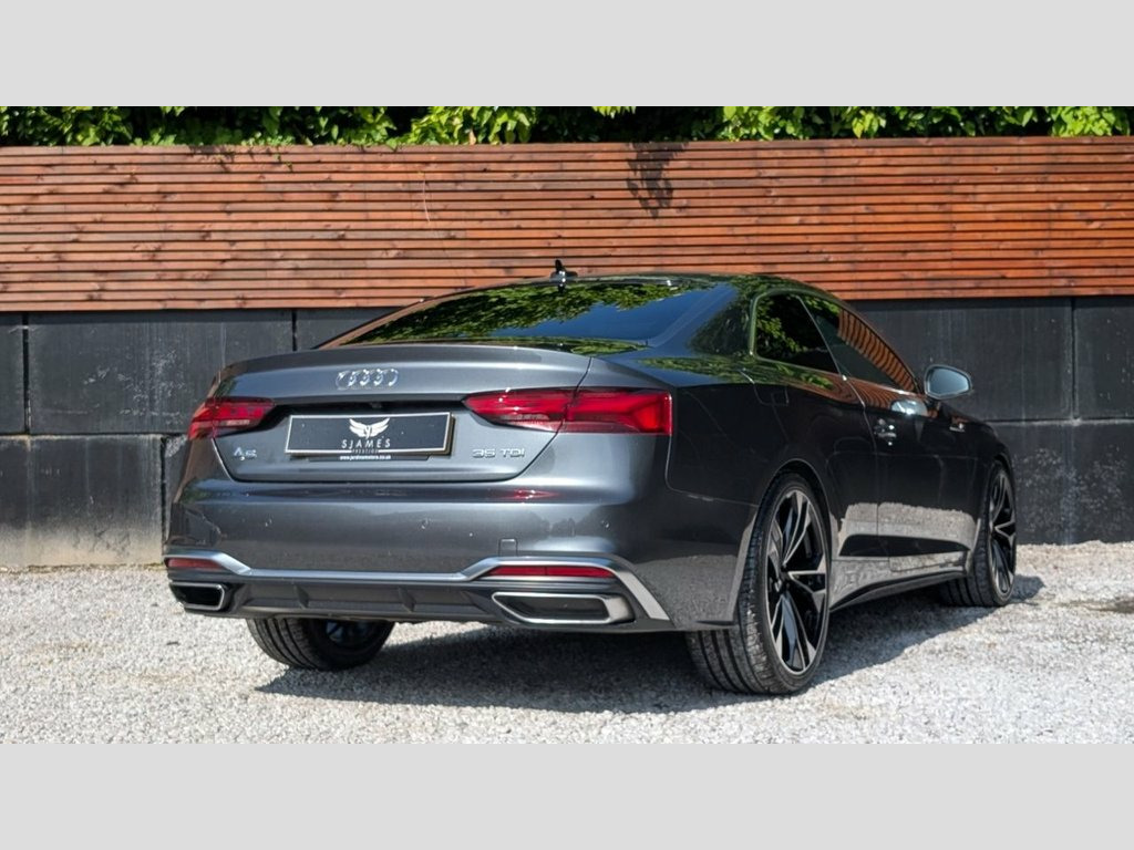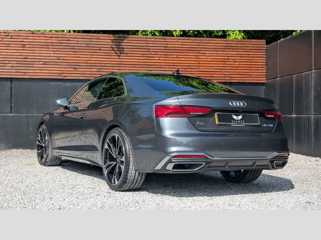 THIS STUNNING A5 COUPE COMES WITH A GREAT SPECIFICATION INCLUDING. - 20" Alloys with brand new tyres - Gloss black RS style grill - Daytona Grey - Black leather and alcantara interior with aluminium trims - B&O Sound system - Apple car play - Rear camera - Heated seats - Automatic transmission - LED headlights with daytime running lights - Black leather and alcantara interior with aluminium trims. OPTIONAL EXTRAS AVAILABLE - Calliper painting - Gloss black badges - Exterior de-chrome - Debadge - Rear privacy - 36 month manufacturer equivalent warranty available - The fitment of the brand new tyres, alloy wheels and styling parts are subject to a fee of £249. This also warrants the fitted parts for 12 months. - Number of keys to be confirmed at the point of sale B&O SOUND SYSTEM, Apple CarPlay, Parking System - Rear Camera and Guidanc, Daytona Grey, Comfort and Sound Package, 4-Way Electric Lumbar Support, 6-Airbag System, 8 Passive Loudspeakers, Anti Theft Locking Wheel Bolts, Anti-Theft Alarm, Audi Connect Safety and Service, Audi Connect with Amazon Alexa Integrati, Audi Drive Select, Audi Matrix LED Headlights with LED Rear, Audi Smartphone Interface, Audi Virtual Cockpit, Auto-Dimming Rear-View Mirror, Automatic Start-Stop with Coasting Funct, Bluetooth Interface, Body Coloured Side Sill Trims, Cloth Headlining in Black, Contrast Stitching on Seats - Steering W, Cruise Control System with Speed Limiter, DAB Digital Radio Reception, Deluxe 3