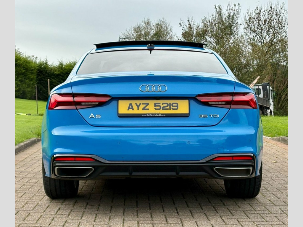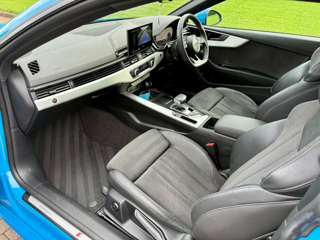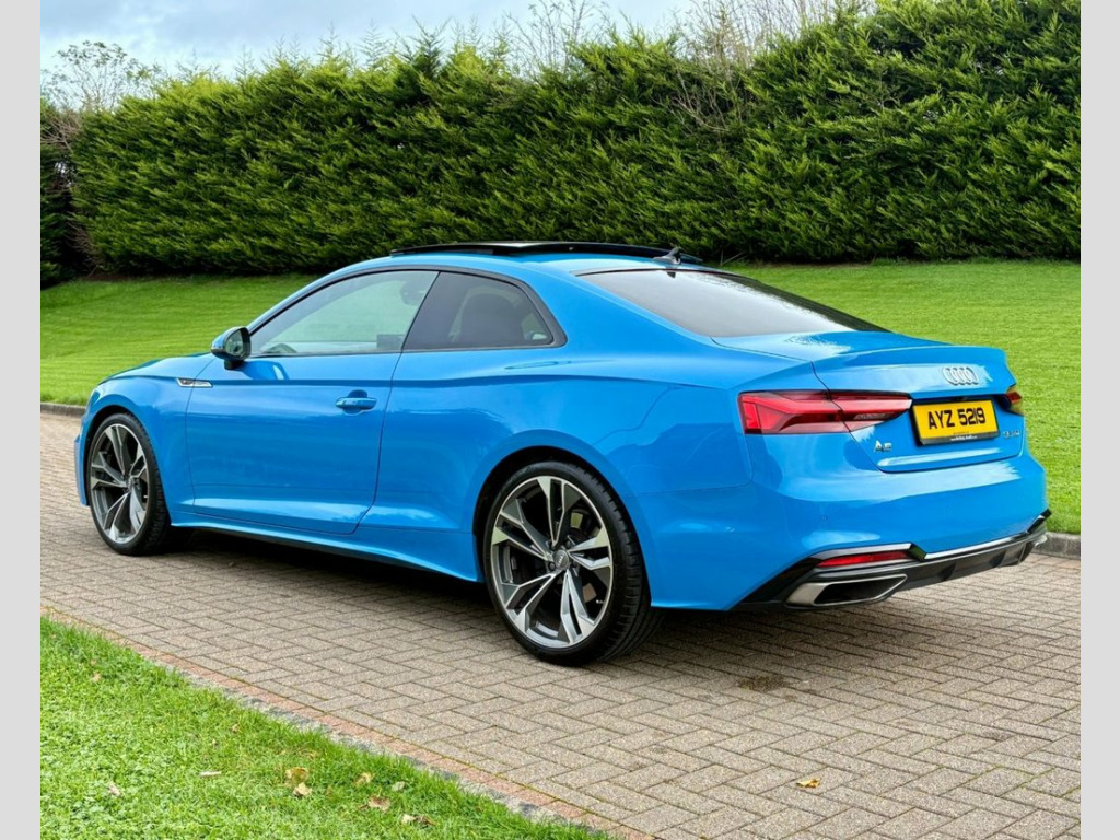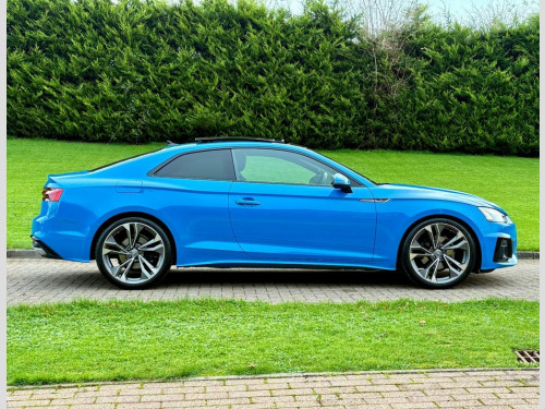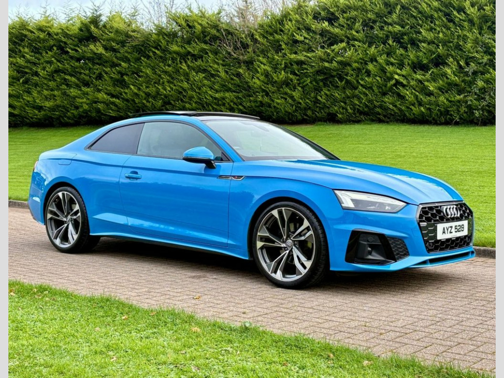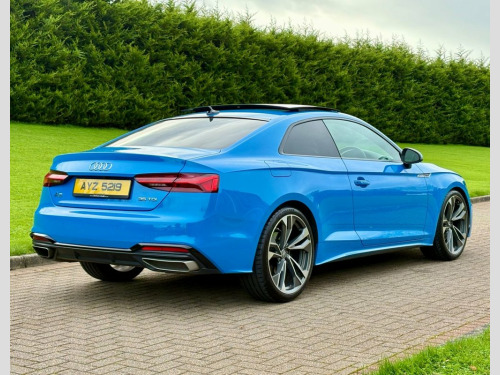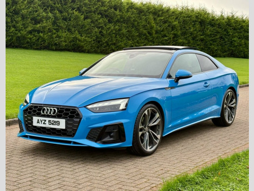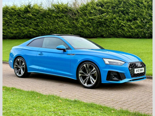 October 2020 Audi A5 Coupe 35TDI S-Line Coupe S-Tronic in Turbo Blue. Full Service History and Mot'd January 2026. Loaded with spec including Half Leather / Suede Interior, Heated Seats, Tilt & Slide Panoramic Glass Roof, Virtual Cockpit / Tech Pack, Parking Camera, Multifunctional Steering Wheel, Black Pack, LED Headlights, 3D Navigation System, Cruise Control, Privacy Glass, Bluetooth, DAB Radio etc. Fitted with Brand New 20" Alloys & Tyres (Optional Extra £995) FINANCE AVAILABLE AT KEEN RATES!! 19in Alloy Wheels - 8.5J 5-Spoke-Cavo De, 4-Way Electric Lumbar Support, 6-Airbag System, 8 Passive Loudspeakers, Anti Theft Locking Wheel Bolts, Anti-Theft Alarm, Audi Connect Infotainment Services (36 M, Audi Connect Safety and Service, Audi Drive Select, Audi Matrix LED Headlights with LED Rear, Audi Phone Box with Wireless Charging, Audi Smartphone Interface, Audi Virtual Cockpit, Auto-Dimming Rear-View Mirror, Automatic Start-Stop with Coasting Funct, Cloth Headlining in Black, Contrast Stitching on Seats - Steering W, Cruise Control System with Speed Limiter, DAB Digital Radio Reception, Deluxe 3-Zone Electronic Climate Control, Door Handles - Body Coloured, Electric Boot Lid Release,