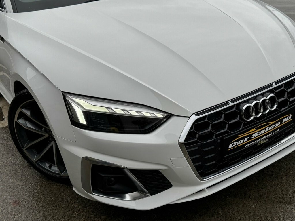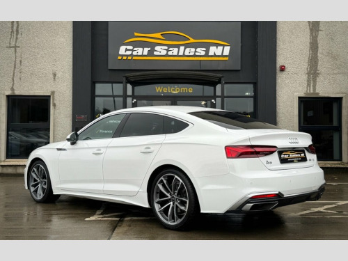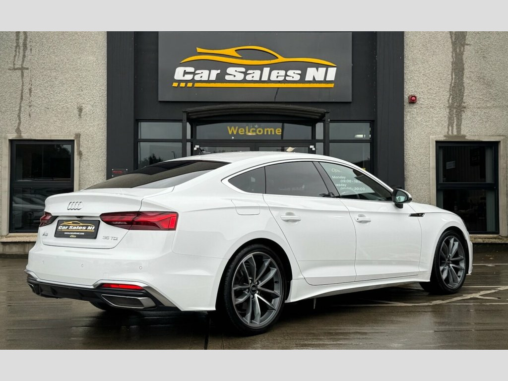 2023 AUDI A5 S LINE SPORTBACK 35 TDI 161 BHP 1 Owner from new, 2.0 Diesel Model, Covered 43k miles, Finished in White, Key Features include: 19'' Factory fitted alloy wheels, Rear Privacy glass, Front and Rear Parking sensors, 360* Parking Camera, Half Leather S Line interior, Leather Multifunctional steering wheel, Paddle shift, Heated front seats, Dual Climate control, Bang and Olufsen Sound Pack, Virtual cockpit, DAB Radio / Bluetooth / Sat Nav, Apple / Android Car Play, Comfort and Sound Pack, AUDI Drive Mode Select, Electronic Tailgate, ISOFIX Child seat points, And so much more... Call today to arrange a test drive, Tailored finance packages available to suit your needs (Excludes ROI), Comprehensive warranty on all cars, Trade ins welcome, Delivery to North and South of Ireland if required. 19in Alloy Wheels - 8.5J 5-Spoke-Cavo De, 3-Spoke Leather High Multi-function Spor, 4-Way Electric Lumbar Support, 6-Airbag System, 8 Passive Loudspeakers, ABS - Anti-Lock Braking System, Anti Theft Locking Wheel Bolts, Anti-Theft Alarm, Attention and Drowsiness Assist, Audi Connect Infotainment Services (36 M, Audi Connect Safety and Service, Audi Drive Select, Audi Smartphone Interface, Audi Virtual Cockpit, Auto-Dimming Rear-View Mirror, Automatic Start-Stop with Coasting Funct, Bluetooth Interface, Body Coloured Side Sill Trims, Camera Based Traffic Sign Recognition, Cloth Headlining in Black, Contrast Stitching on Seats - Steering W, Cruise Control System with Speed Limiter, DAB Digital