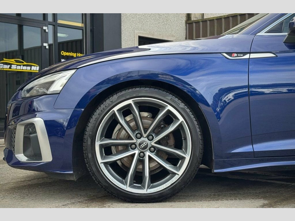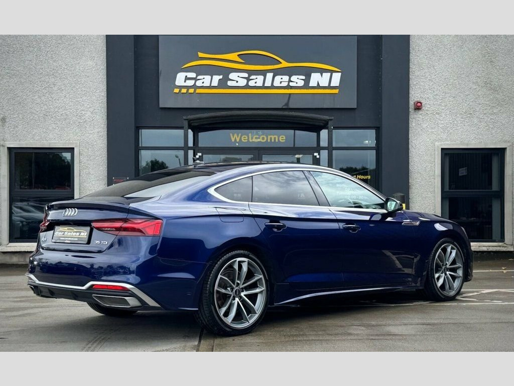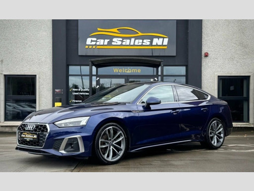 2023 AUDI A5 S LINE SPORTBACK 35 TDI 161 BHP 1 Owner from new, 2.0 Diesel Model, Covered 24k miles, Finished in Navarra Blue, Key Features include: 19'' Factory fitted alloy wheels Rear Privacy glass Front and Rear Parking sensors Reversing camera Half Leather S Line interior Leather Multifunctional steering wheel Paddle shift Heated front seats Dual Climate control Virtual cockpit DAB Radio / Bluetooth / Sat Nav Apple / Android Car Play AUDI Drive Mode Select Electronic Tailgate ISOFIX Child seat points And so much more... Call today to arrange a test drive Tailored finance packages available to suit your needs (Excludes ROI) Comprehensive warranty on all cars Trade ins welcome Delivery to North and South of Ireland if required 19in Alloy Wheels - 8.5J 5-Spoke-Cavo De, 3-Spoke Leather High Multi-function Spor, 4-Way Electric Lumbar Support, 6-Airbag System, 8 Passive Loudspeakers, ABS - Anti-Lock Braking System, Anti Theft Locking Wheel Bolts, Anti-Theft Alarm, Attention and Drowsiness Assist, Audi Connect Infotainment Services (36 M, Audi Connect Safety and Service, Audi Drive Select, Audi Smartphone Interface, Audi Virtual Cockpit, Auto-Dimming Rear-View Mirror, Automatic Start-Stop with Coasting Funct, Bluetooth Interface, Body Coloured Side Sill Trims, Camera Based Traffic Sign Recognition, Cloth Headlining in Black, Contrast Stitching on Seats - Steering W, Cruise Control System with Speed Limiter, DAB Digital