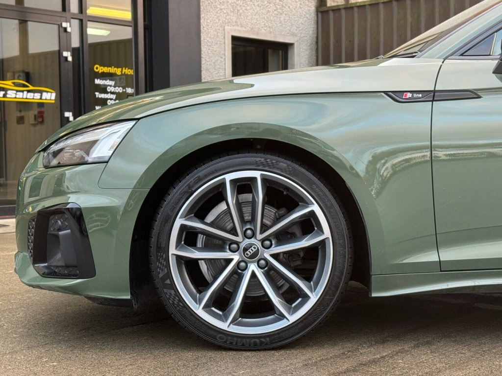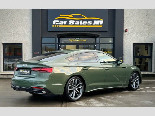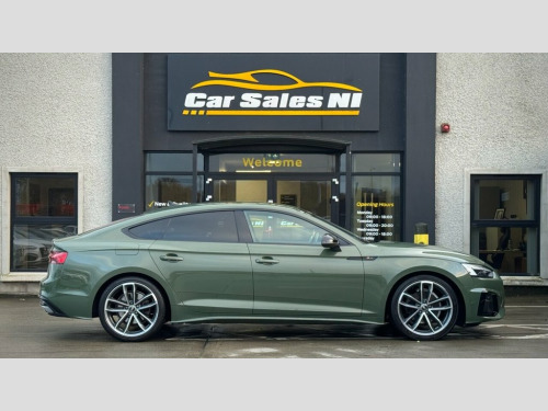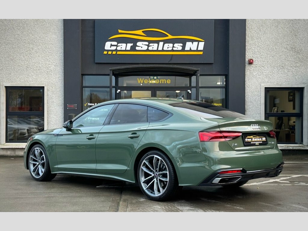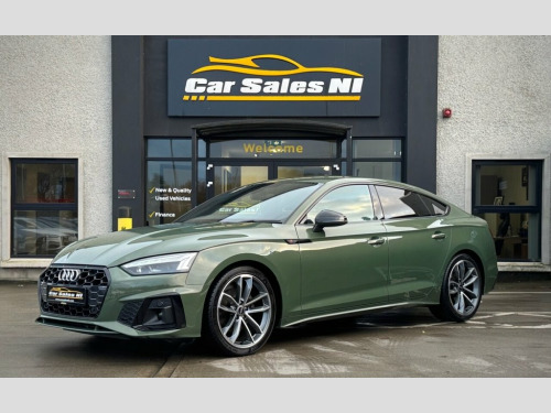 2023 AUDI A5 S LINE SPORTBACK 35 TDI 161 BHP 1 Owner from new, 2.0 Diesel Model, Covered 23k miles, Finished in District Green, Key Features include: 19'' Factory fitted alloy wheels Black Edition styling Rear Privacy glass Front and Rear Parking sensors Reversing Camera Half Leather S Line interior Leather Multifunctional steering wheel Paddle shift Heated front seats Dual Climate control Virtual cockpit DAB Radio / Bluetooth / Sat Nav Apple / Android Car Play Electronic Tailgate AUDI Drive Mode Select ISOFIX Child seat Points And so much more... Call today to arrange a test drive Tailored finance packages available to suit your needs Comprehensive warranty on all cars Trade ins welcome Delivery to North and South of Ireland if required 19in Alloy Wheels - 8.5J 5-Spoke-Cavo De, 4-Way Electric Lumbar Support, 6-Airbag System, 8 Passive Loudspeakers, Anti Theft Locking Wheel Bolts, Anti-Theft Alarm, Audi Connect Infotainment Services (36 M, Audi Connect Safety and Service, Audi Connect with Amazon Alexa Integrati, Audi Drive Select, Audi Smartphone Interface, Audi Virtual Cockpit, Auto-Dimming Rear-View Mirror, Automatic Start-Stop with Coasting Funct, Bluetooth Interface, Body Coloured Side Sill Trims, Cloth Headlining in Black, Contrast Stitching on Seats - Steering W, Cruise Control System with Speed Limiter, DAB Digital Radio Reception, Deluxe 3-Zone Electronic Climate Control, Door Handles - Body Coloured, Door Mirrors -