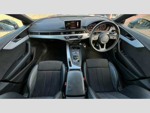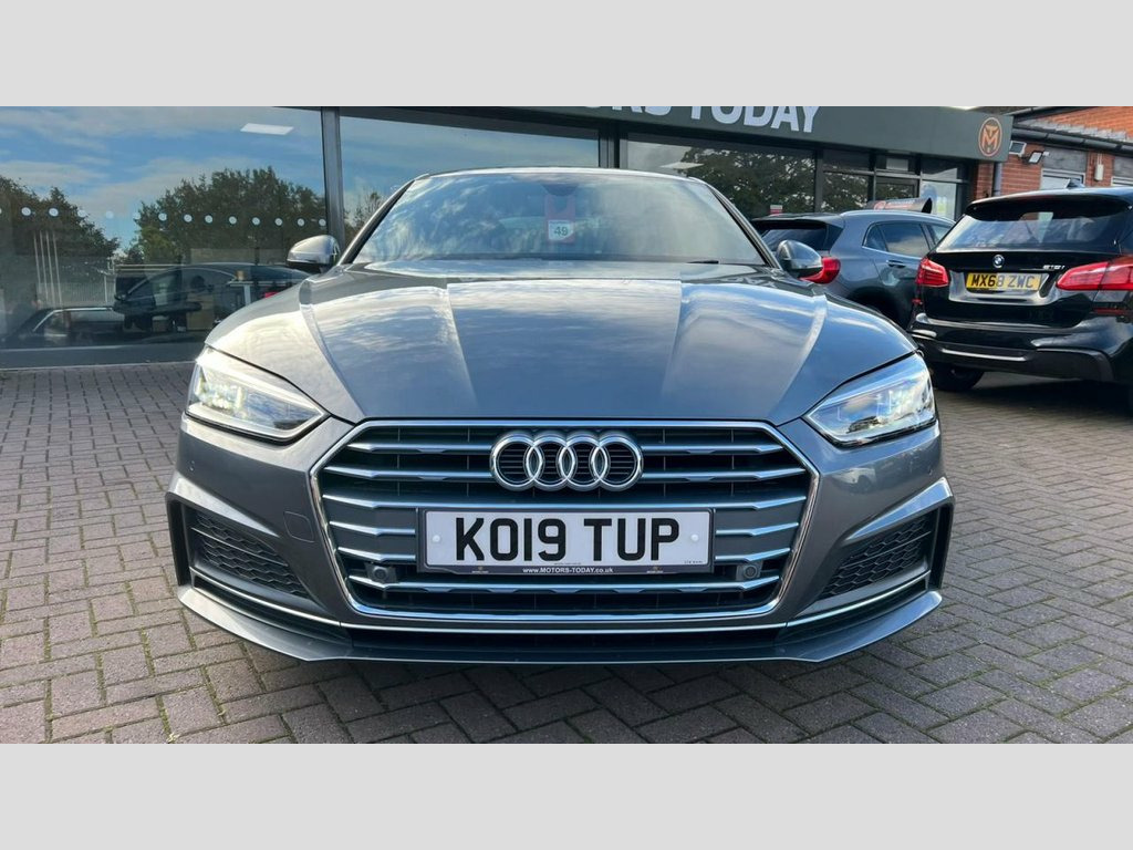 This 2019 Monsoon grey metallic Audi A5 TDI S line offers a refined driving experience with its powerful 2.0 litre diesel engine. As a Euro 6 compliant vehicle, it meets stringent emission standards. This particular model benefits from the S line trim, enhancing its sporty appeal and benefits from £2000. worth of extras which includes the technology pack, Inside you'll find a host of convenient features designed for comfort and ease of use, including deluxe 3 zone electronic climate control, heated front seats, and a Bluetooth interface for seamless connectivity. The car is also equipped with LED headlights and LED rear lights, complete with dynamic rear indicators, ensuring excellent visibility. Furthermore, the light and rain sensor automatically activates the headlights, adding to the effortless driving experience.  The Audi A5 TDI S line demonstrates its performance capabilities with an acceleration of 0 to 60 miles per hour in just 9.1 seconds. This figure highlights its responsiveness and agility compared to other vehicles in its class. The combination of its efficient diesel engine, advanced lighting technology, and climate control system makes this A5 a well rounded and desirable option for those seeking a premium driving experience. Monsoon Grey, Technology Package, 19in Alloy Wheels - 5-Parallel Spoke Des, 2 x SDXC Card Readers, 2 x USB Charging Ports and 1 x AUX-IN, 4-Way Electric Lumbar Support, 6-Airbag System, Air Inlets - Horizontal Inlay in Matt Al, Anti Theft Locking Wheel Bolts, Anti-Theft Alarm, Audi Connect Infotainment Services - 3 M, Audi Connect Safety and Service, Audi Drive Select, Audi Smartphone Interface, Audi Sound System, Auto-Dimming Rear-View Mirror, Bluetooth Interface, Body Coloured Door Mirrors, CD Drive, Chrome-Plated Exhaust Trim, Cloth Headlining in Black, Colour Drivers Information System with 7, Contrast Stitching on Seats - Steering W, Cruise Control with Speed Limiter, DAB Digital Radio