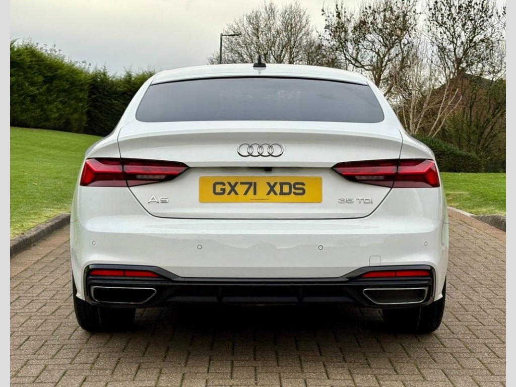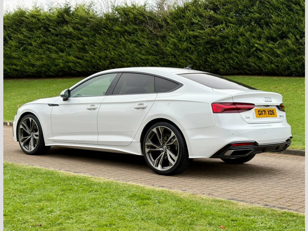 October 2021 Audi A5 Sportback 35TDI S-Line S-Tronic in Ibis White. Service History and Mot'd to November 2026. Loaded with spec including Virtual Cockpit / Tech Pack, Half Leather / Suede Interior, Heated Seats, Front & Rear Parking Aid, Multifunctional Steering Wheel, Black Pack, LED Headlights, 3D Navigation System, Cruise Control, Privacy Glass, Bluetooth, DAB Radio etc. Fitted with Brand New 20" Alloys & Tyres (Optional Extra £995) FINANCE AVAILABLE AT KEEN RATES!! 19in Alloy Wheels - 8.5J 5-Spoke-Cavo De, 4-Way Electric Lumbar Support, 6-Airbag System, 8 Passive Loudspeakers, Anti Theft Locking Wheel Bolts, Anti-Theft Alarm, Audi Connect Infotainment Services (36 M, Audi Connect Safety and Service, Audi Connect with Amazon Alexa Integrati, Audi Drive Select, Audi Matrix LED Headlights with LED Rear, Audi Smartphone Interface, Audi Virtual Cockpit, Auto-Dimming Rear-View Mirror, Automatic Start-Stop with Coasting Funct, Bluetooth Interface, Body Coloured Side Sill Trims, Cloth Headlining in Black, Contrast Stitching on Seats - Steering W, Cruise Control System with Speed Limiter, DAB Digital Radio Reception, Deluxe 3-Zone Electronic Climate Control, Do