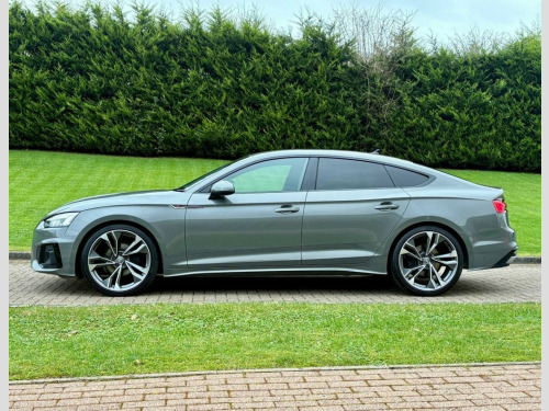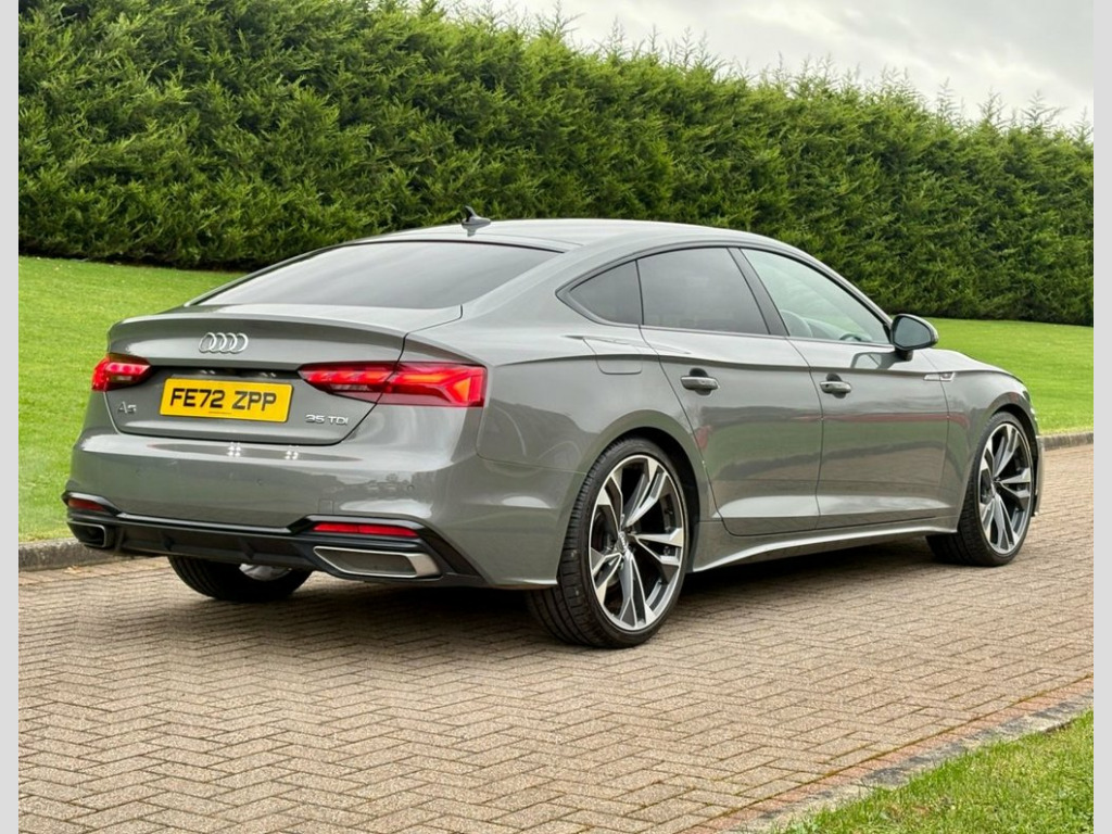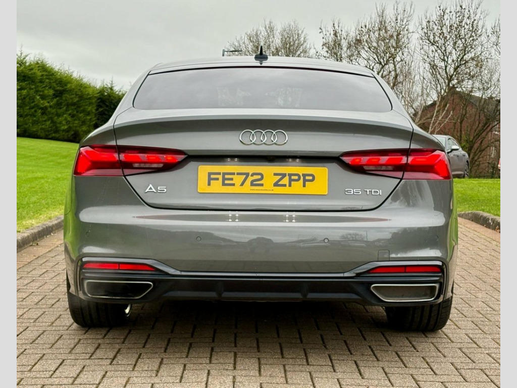 October 2022 Audi A5 Sportback 35TDI S-Line S-Tronic in Rare Chronos Grey. Full Service History and Mot'd to November 2026. Loaded with spec including Virtual Cockpit / Tech Pack, Half Leather / Suede Interior, Heated Seats, Front & Rear Parking Aid, Multifunctional Steering Wheel, Black Pack, LED Headlights, 3D Navigation System, Cruise Control, Privacy Glass, Bluetooth, DAB Radio etc. Fitted with Brand New 20" Alloys & Tyres (Optional Extra £995) FINANCE AVAILABLE AT KEEN RATES!! 19in Alloy Wheels - 8.5J 5-Spoke-Cavo De, 4-Way Electric Lumbar Support, 6-Airbag System, 8 Passive Loudspeakers, Anti Theft Locking Wheel Bolts, Anti-Theft Alarm, Audi Connect Infotainment Services (36 M, Audi Connect Safety and Service, Audi Connect with Amazon Alexa Integrati, Audi Drive Select, Audi Matrix LED Headlights with LED Rear, Audi Smartphone Interface, Audi Virtual Cockpit, Auto-Dimming Rear-View Mirror, Automatic Start-Stop with Coasting Funct, Bluetooth Interface, Body Coloured Side Sill Trims, Cloth Headlining in Black, Contrast Stitching on Seats - Steering W, Cruise Control System with Speed Limiter, DAB Digital Radio Reception, Deluxe 3-Zone Electronic Climate Control, Do