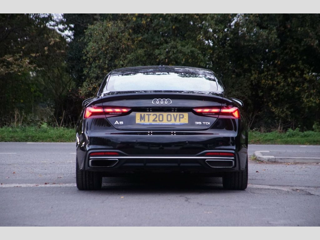 Prestige Car Supermarket in York presents this highly practical and luxurious 2020 Audi A5 35 TDI Sport Sportback. Finished in Mythos Black metallic paint, a desirable factory option costing £675.00, and featuring a luxurious Black Twin Leather-Leatherette interior, this automatic diesel Sportback offers a refined and capable driving experience. It rides on 18in 5-Twin-Spoke Design alloy wheels and features Sport Front and Rear Bumpers and a Radiator Grille in Titanium Black. Illumination is provided by LED Headlights and LED Rear Lights with LED Daytime-Running Lights. Step inside the executive cabin to find Heated Sport Front Seats with 4-way electric lumbar support, a High Multi-Function 3-Spoke Leather Steering Wheel, and a Deluxe 3-Zone Electronic Climate Control system. Technology is comprehensive with an Audi Virtual Cockpit, a MMI Navigation Plus with MMI Touch system, DAB Digital Radio, and an Audi Phone Box with Wireless Charging. Convenience is a priority with a Rear-View Camera, Front and Rear Parking Sensors, a Power Operated Tailgate, and Keyless Go. Safety and driver assistance systems are extensive, including Pre-Sense City and a Tyre Pressure Monitoring System (TPMS), ensuring a secure and confident drive. Twin Leather-Leatherette - Sport Seats -, Mythos Black, 18in Alloy Wheels - 8.5J 5-Twin-Spoke De, 4-Way Electric Lumbar Support, 6-Airbag System, 8 Passive Loudspeakers, Anti Theft Locking Wheel Bolts, Anti-Theft Alarm, Audi Connect Infotainment Services (36 M, Audi Connect Safety and Service, Audi Drive Select, Audi Phone Box with Wireless Charging, Audi Smartphone Interface, Audi Virtual Cockpit, Auto-Dimming Rear-View Mirror, Automatic Start-Stop with Coasting Funct, Body Coloured Side Sill Trims, Comfort Dynamic Suspension, Cruise Control System with Speed Limiter, DAB Digital Radio Reception, Deluxe 3-Zone Electronic Climate Control, Door Handles - Body Coloured, Door Sill Trims with Al