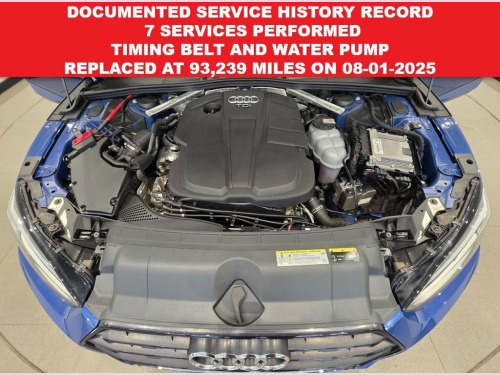 GREAT SPECIFICATION 'BLACK EDITION' 2 DOOR COUPE WITH EXTERIOR BLACK STYLING PACKAGE AND 20 INCH ROTAR DESIGN ALLOY WHEELS AND SPORT SUSPENSION + 1 PREVIOUS OWNER + DOCUMENTED SERVICE HISTORY RECORD, 7 SERVICES PERFORMED, TIMING BELT AND WATER PUMP REPLACED AT 93,239 MILES ON 08-01-2025 + COMES WITH 12 MONTHS MOT AND ENGINE OIL SERVICE + EYE CATCHIMG ASCARI BLUE METALLIC PAINTWORK AND BLACK PARTIAL LEATHER AND ALCANTARA UPHOLSTERY COMPLIMENTED WITH CONTRAST GREY STITCHING + 'S' EMBOSSED HEATED-EXTENDABLE FRONT SPORT SEATS WITH E/LUMBAR SUPPORT + GLOSS PIANO BLACK INLAYS + BLACK ROOF LINING + PRIVACY GLASS + WINDSCREEN WITH ACOUSTIC GLAZING + L.E.D. HEADLIGHTS AND L.E.D. DAYTIME RUNNING LIGHTS + SWEEPING INDICATORS REAR + HIGH BEAM ASSIST + PRE-SENSE CITY + MULTI COLLISION BRAKE ASSIST + PARKING SYSTEM PLUS- FRONT-REAR PARK ASSIST WITH ACOUSTIC AND VISUAL ON SCREEN WARNING + KEYLESS GO + TOTAL CLOSURE SYSTEM + HEATED-POWER FOLDING E-DOOR MIRRORS + AMBIENT INTERIOR LIGHTING + AUTO LIGHTS, AUTO WIPERS, AUTO DIMMING REAR VIEW MIRROR + AUDI DRIVE SELCT + MMI NAVIGATION SYSTEM + VOICE CONTROL SYSTEM + AUDI SOUND SYSTEM + MULTIMEDIA + DAB RADIO-USB-SD CARD + AUTO DUAL CLIMATE CONTROL- AIR CONDITIONING + CRUISE CONTROL + SPEED LIMITER + SMARTPHONE INTERFACE- APPLE CARPLAY AND  ANDROID AUTO + BLUETOOTH INTERFACE + S LINE EMBOSSED FLAT BOTTOM MULTIFUNCTIONAL LEATHER STEERING WHEEL WITH PADDLESHIFT  + TYRE PRESSURE MONITOR + AUTO HOLD BRAKES + HILL HOLD ASSIST + SPLI Ascari Blue, Fuel Tank 54L, Audi Exclusive, Fine Nappa Leather - Sport Seats - S Emb, Matrix LED Headlights with LED Rear Ligh, AdBlue Tank 24 Litres, Parking Assistance Pack Advanced, Extended LED Interior Lighting Package -, Storage Package, Lumbar Support - Pneumatically Adjustabl, Heated Front and Outer Rear Seats, Door Mirrors - Folding with Auto-Dimming, 2 x SDXC Card Readers, 2 x USB Charging Ports and 1 x AUX-IN, 20in Alloy Wheels - 5-Arm Rotor Design w, 4-Way Electric Lumbar Support, 6-Airbag System, Air Inlets - Horizontal Inlay in Matt Al, Anti Theft Locking Wheel Bolts, Anti-Theft Alarm, Audi Connect Infotainment Services - 3 M, Audi Connect Safety and Service, Audi Drive Select,