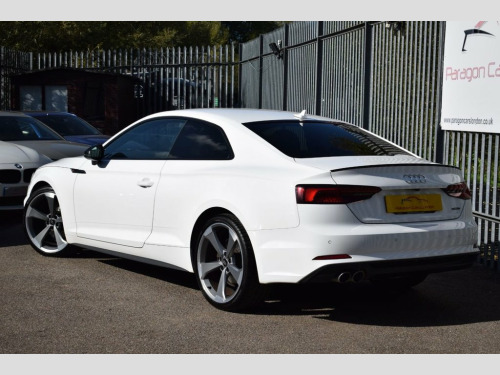 This Audi A5 coupe black edition looks stunning in this sporty colour combo and comes with one of the highest specifications on the market including bang & olufsen sound, reverse camera, audi virtual cockpit, 19" wheels, apple car play, and more. IBIS WHITE - BLACK LEATHER / ALCANTARA INTERIOR - 20" 5-SPOKE ROTAR WHEELS - VIRTUAL COCKPIT - TECHNOLOGY PACKAGE - NAVIGATION SAT NAV - COMFORT & SOUND PACKAGE - BANG & OLUFSEN SOUND - REVERSE CAMERA - KEYLESS ENTRY/START - BI XENON HEADLAMPS - LED DAYTIME LIGHTS - APPLE CAR PLAY / ANDROID SMARTPHONE INTERFACE - BLUETOOTH PHONE PREP - BLUETOOTH AUDIO STREAM - HEATED FRONT SEATS - ELECTRIC FOLDING MIRRORS - PARKING SENSORS (FRONT & REAR) - DAB DIGITAL RADIO - MULTI FUNCTION S/WHEEL - CRUISE CONTROL - PRIVACY GLASS - AUTO HEADLIGHT ACTIVATION - AUTO WIPER ACTIVATION - AIR CONDITIONING - CLIMATE CONTROL - ULEZ COMPLIANT - EURO 6 Audi Warranty - Extended to 48 Months or, Audi Warranty - Extended to 60 Months or, Technology Package, Rear-View Camera, Ibis White, Extended LED Interior Lighting Package -, Comfort and Sound Package, 2 x SDXC Card Readers, 2 x USB Charging Ports and 1 x AUX-IN, 20in Alloy Wheels - 5-Arm Rotor Design w, 4-Way Electric Lumbar Support, 6-Airbag System, Air Inlets - Horizontal Inlay in Matt Al, Anti Theft Locking Wheel Bolts, Anti-Theft Alarm, Audi Connect Infotainment Services - 3 M, Audi Connect Safety and Service, Audi Drive Select, Audi Smartphone Interface, Audi Sound System, Auto-Dimming Rear-View Mirror, Bluetooth Interface, CD Drive, Chrome-Plated Exhaust Trim, Cloth Headlining in Bla
