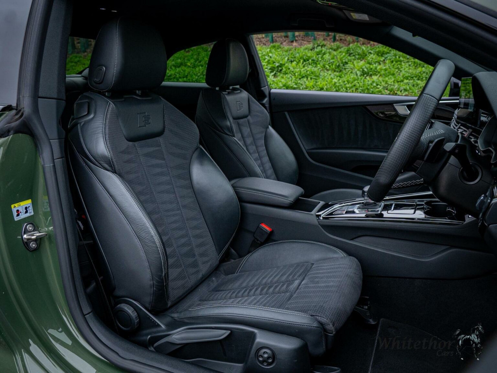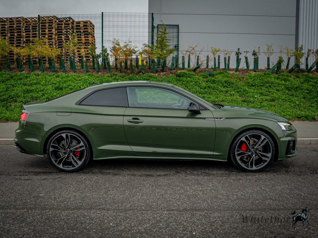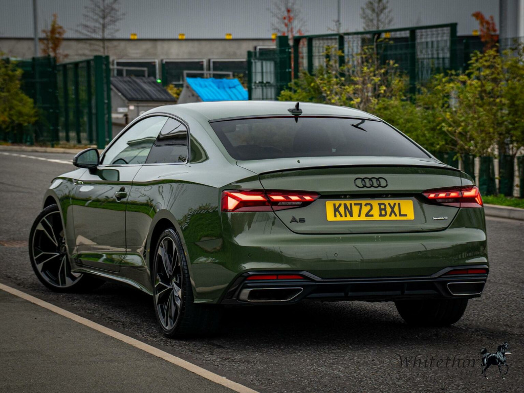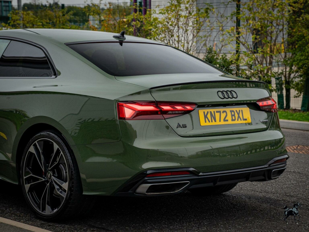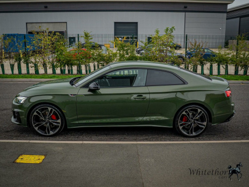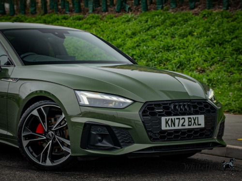 FREE DELIVERY WITHIN 200 MILES – Here we have a stunning Audi A5 Black Edition finished in District Green Metallic. This being the black edition comes with fantastic spec from the factory, with things such as: 20in 9J 5-Twin Spoke Polygon Design Alloy Wheels – Audi Connect with Amazon Alexa Integration – Audi Drive Select – Audi Matrix LED Headlights with LED Rear Lights and Dynamic Front and Rear Indicators – Audi Smartphone Interface – Audi Virtual Cockpit – Black Styling Package – Cruise Control System with Speed Limiter – DAB Digital Radio Reception – Deluxe 3-Zone Electronic Climate Control – Keyless Go – MMI Navigation Plus with MMI Touch – LED Interior Light Package – Rear View Camera – Privacy Glass – Front and Rear Parking Sensors – and much more. , This example also benefits from optional extras such as: High Multi-Function 3-Spoke Leather Steering Wheel with Grips in Perforated Leather and S Badging – AdBlue Tank 24 Litres – Microfibre Dinamica Sports Seats with S Embossed Logo in Black – and more. This car has had 3 services in total (2 Audi, 1 Independent) last carried out at 43,500 miles. Gearbox service carried out at 37,800 miles. The MOT expires September 2026. 3 Month £2000 Claim Limit Warranty is included with the sale but the option to upgrade to a 12M, 24M, & 36M £5000 Claim Limit Nation Wide Premium Autoguard Warranty with Breakdown Cover is available. Multiple Finance Options, Competitive Part Exchange Prices. All Cars Are HPI, MotorCheck & Experian Clear. Further Vehicle Delivery Options Also Available. All Rights Reserved - Whitethor cars exercise all reasonable care and skill in providing you with vehicle information and data. The specification is attained through HPI, Experian & Autotrader VRM. Options Sold as packs may be shown individually, spec check is a guide so please contact us or physically verify any info that is crucial.
