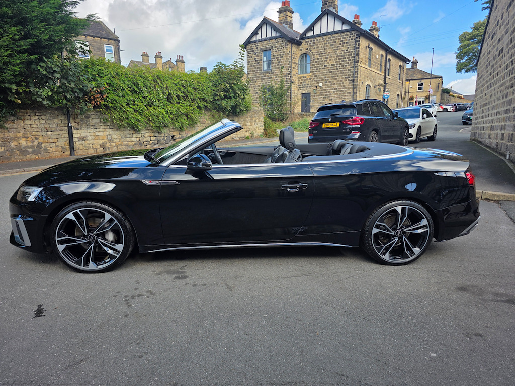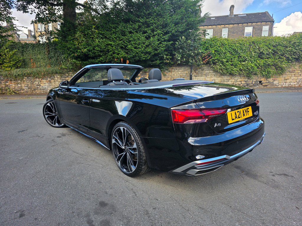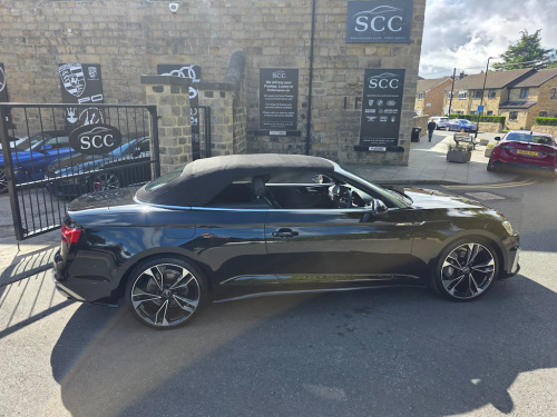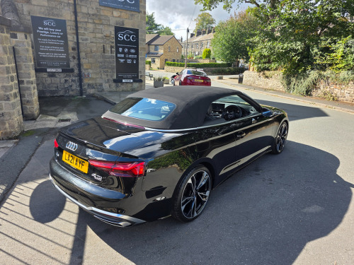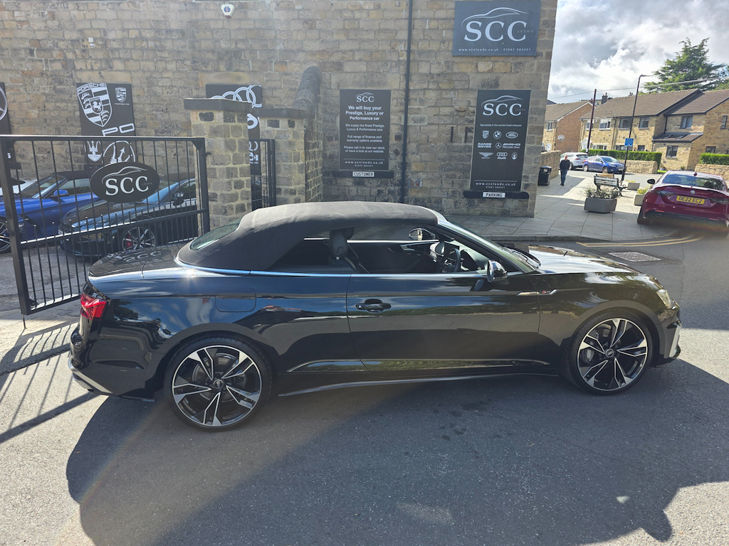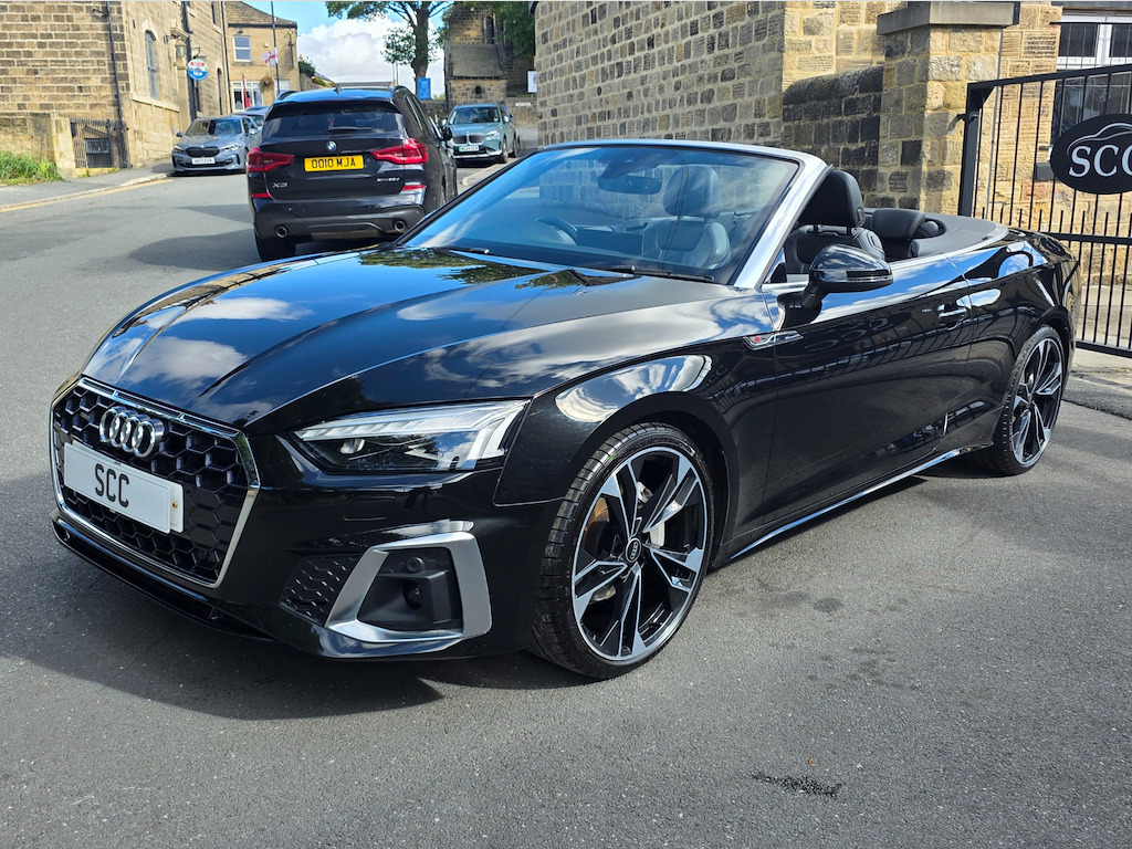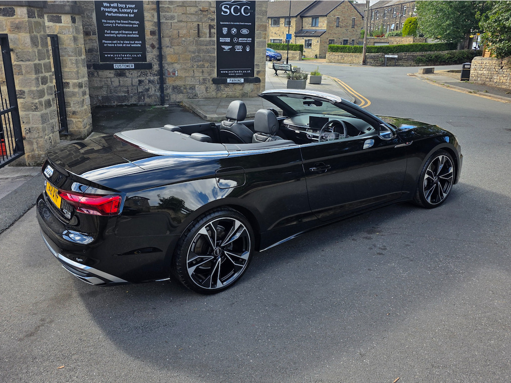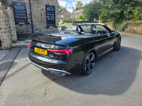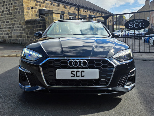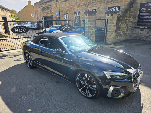 This sleek and refined 2021 Audi A5 Cabriolet Edition 1 is finished in Mythos Black Metallic, offering premium styling, performance, and open-top driving in one beautifully engineered package. With just 19,000 miles and a full history, it’s in excellent condition throughout and ready to enjoy. Powered by a 2.0 TDI diesel engine producing 204PS, paired with Audi’s smooth S Tronic automatic gearbox and quattro all-wheel drive, this car delivers strong performance with the confidence of all-weather traction. It also meets Euro 6 emissions standards, making it ULEZ compliant. The Edition 1 trim adds exclusive styling and top-tier equipment. This car features 20" alloy wheels, Matrix LED headlights with dynamic indicators, and the black exterior styling pack. Inside, you’ll find heated electric front sport seats, a fully digital Audi Virtual Cockpit, and MMI Navigation Plus with a 10.1" touchscreen. It also includes Apple CarPlay and Android Auto, three-zone climate control, front and rear parking sensors, cruise control, lane departure warning, and a power-folding fabric roof. Stylish, refined, and effortless to drive, this A5 Cabriolet is ideal for those seeking open-top luxury with all-season capability. Now available at SCC Leeds for £31,995. Call us on 01943 884551 to arrange a test drive or request a personalised video. 20in Alloy Wheels - 9J 5-Twin-Spoke - Polygon Design - Gloss Anthracite Black - Gloss Turned Finish,4-Way Electric Lumbar Support,6-Airbag System,8 Passive Loudspeakers,Anti Theft Locking Wheel Bolts,Anti-Theft Alarm,Audi Connect Infotainment Services (36 Month Subscription From New),Audi Connect Safety and Service,Audi Connect with Amazon Alexa Integration,Audi Drive Select,Audi Matrix LED Headlights with LED Rear Lights and Dynamic Front and Rear Indicators,Audi Smartphone Interface,Audi Virtual Cockpit,Auto-Dimming Rear-View Mirror,Automatic Start-Stop with Coasting Functionality and Efficiency Programme,Black Roof Colour,Bluetooth Interface,Body Coloured Side Sill Trims,Cloth Headlining in Black,Contrast Stitching on Seats - Steering Wheel and Gear Lever Gaiter,Cruise Control System with Speed Limiter,DAB Digital Radio Reception,Deluxe 3-Zone Electronic Climate Control,Door Handles - Body Coloured,ESC - Electronic Stabilisation Control inc ABS - ASR and EDL,Electric Boot Lid Release,Electric Windows - Front,Electrically Adjustable Front Seats,Electromechanical Power Steering,Email - Calendar and Text Messages can be Displayed on your Vehicles MMI,First Aid Kit and Warning Triangle,Flat-Bottomed 3-Spoke Leather High Multi-Function Steering Wheel,Front Centre Armrest,Front Spoiler Lip in Body Colour,Gear Lever Knob in Black Perforated Leather,Heated Front Seats,Hill Hold Assist,ISOFIX Child Seat Mounting and Top Tether,Illuminated Door Sill Trims with S Logo,Inlays - Piano Finish - Black,Keyless Go,LED Interior Light Package,Light and Rain Sensor,MMI Navigation Plus with MMI Touch,Matrix LED Headlights with Audi Laser Light - Dynamic Light Sequencing - Dynamic Indicator,Multi Collision Brake Assist,Parking System Plus - Front and Rear Sensors,Pedals in Stainless Steel,Pop-Up Bonnet for Pedestrian Protection,Pre-Sense City,Radiator Grille with Honeycomb Structure in Grained Matt Black,Rear-View Camera,S Line Front and Rear Bumpers and Side Skirt,S Line Rear Diffuser in Matt Titanium Black with Trim Strip in Matt Aluminium Silver,Seat Belt Monitoring,Side Air Inlets in Grained Matt Black with Inlay in Matt Aluminium Silver,Split-Folding 2-Seater Rear Seat Bench in 2 Parts - 50-50,Sport Suspension,Tailpipe Trims in Matt Aluminium Silver,Tool Kit,Two Additional USB Ports for Rear Passengers in the Rear Centre Console,Tyre Repair Kit,Voice Control,Mythos Black,Fine Nappa Leather - Sport Seats - S Embossed Logo - Rotor Grey with Anthracite Stitching