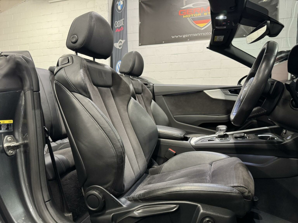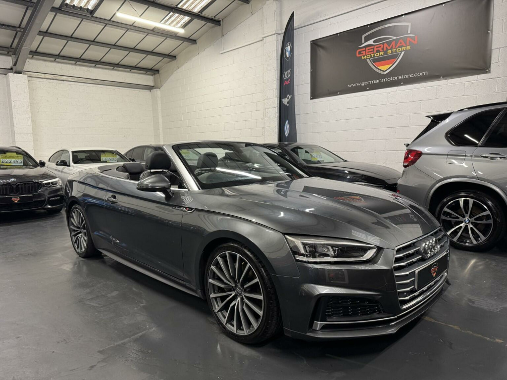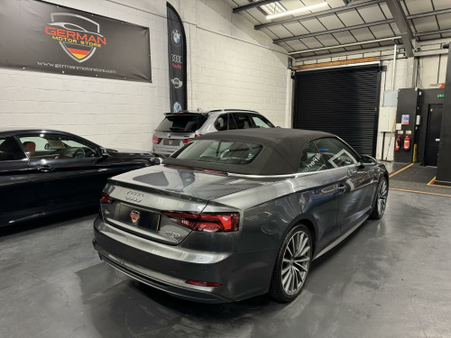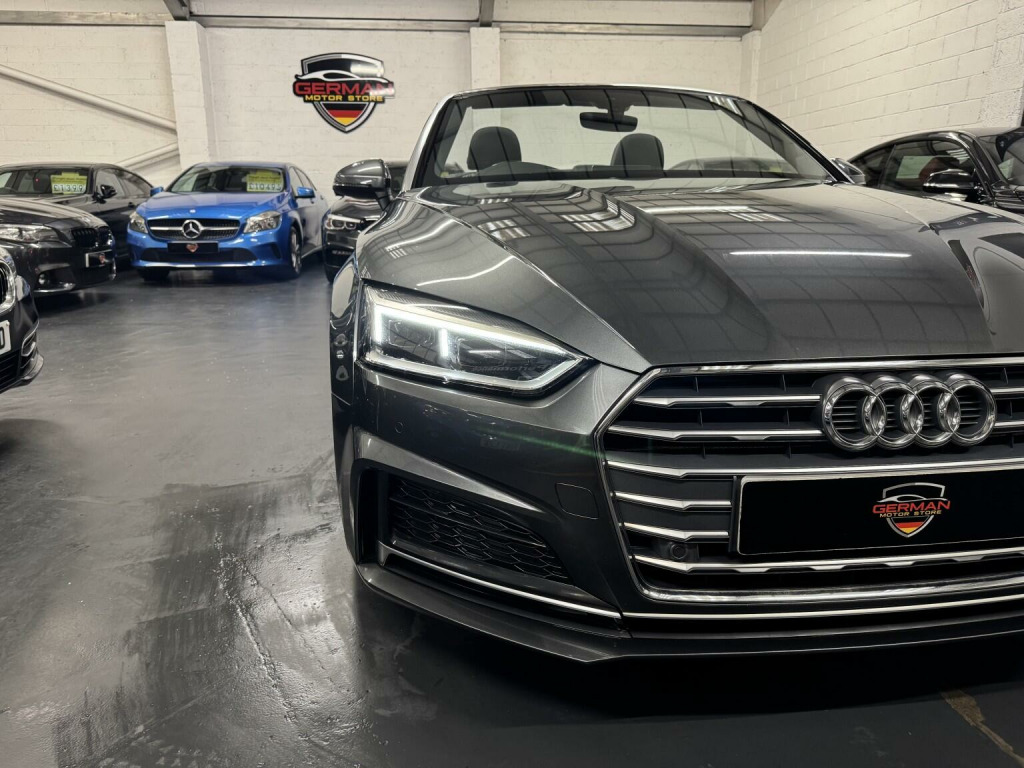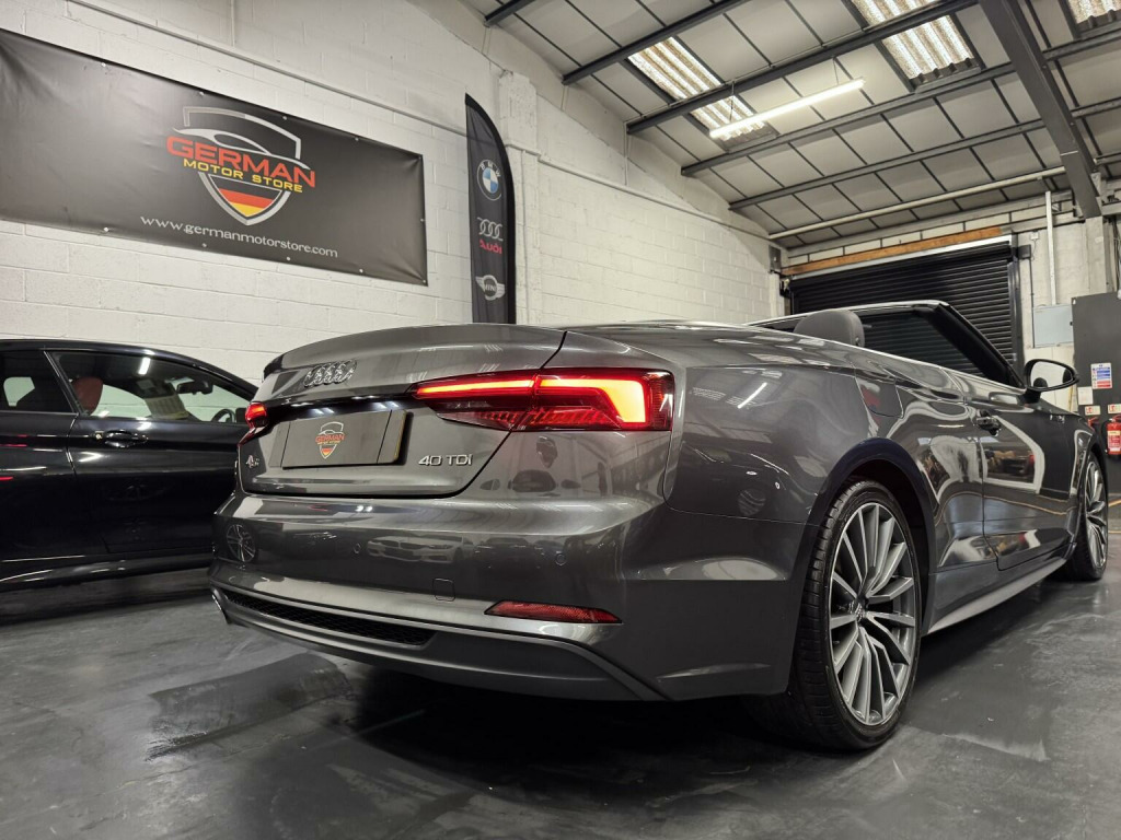 German motor store is delighted to offer this 2019 (69) Audi A5 Tdi 40 S Line convertible to market. Finished in Daytona grey with black S Line embossed leather & Alcantara trim, this sublime A5 arrives with a full-service history, and is also MOT'd until September 2026. With just 2 previous keepers and only 70k miles, this stunning top of the range A5 is in epic condition throughout, very well looked after previously. Specification is very impressive offering the following.... Upgrade 19'' diamond cut alloy wheels, large screen Audi media navigation, digital cockpit, parking sensors front & rear, DAB Radio, heated seats, dual zone digital climate, LED lights, electric roof, & cruise control. This car is Euro 6 ULEZ compliant meaning no inner-city charges. Viewers Will Not be Disappointed on Inspection. Part Exchange Welcome.Viewing by appointment only!German Motor Store Limited is a family operated business specializing in quality used German Cars with over 30 years' experience in the industry! We are authorized and registered by the FCA so can arrange finance for our customers, if necessary, through our selected finance companies. Our company aim is to independently offer quality used German vehicles at competitive prices, with an excellent and honest service backed up by dealership facilities. We are located on the out skirts of the Derbyshire Peak District in Chesterfield, 10 minutes' drive from either junction 29 or 30 of the M1 Motorway. We are very relaxed here at German Motor Store you will be able to view your selected car in your own time and never feel under pressure.. 19in Alloy Wheels - 5-Parallel Spoke Design, 2 x SDXC Card Readers, 2 x USB Charging Ports and 1 x AUX-IN, 4-Way Electric Lumbar Support, 6-Airbag System, Acoustic Hood - Fully Automatic, Acoustic Soft Top - Black, Air Inlets - Horizontal Inlay in Matt Aluminium, Anti Theft Locking Wheel Bolts, Anti-Theft Alarm, Audi Connect Infotainment Services - 3 Month Trial, Audi Connect Safety and Service, Audi Drive Select, Audi Smartphone Interface, Audi Sound System, Auto-Dimming Rear-View Mirror, Black Hood, Bluetooth Interface, Body Coloured Door Mirrors, CD Drive, Chrome-Plated Exhaust Trim, Cloth Headlining in Black, Colour Drivers Information System with 7in High-Resolution TFT Screen, Contrast Stitching on Seats - Steering Wheel and Gear Lever Gaiter, Cruise Control with Speed Limiter, DAB Digital Radio Reception, Deluxe 3-Zone Electronic Climate Control, Door Mirrors - Folding, Electric Windows - Front, Electromechanical Parking Brake, Electromechanical Power Steering, ESC - Electronic Stabilisation Control inc ABS - ASR and EDL, First Aid Kit and Warning Triangle, Front and Rear Floor Mats, Front Centre Armrest, Fully Automatic Hood Tray, Gear Lever Knob in Black Perforated Leather, Heated Front Seats, High Gloss Package, High Multi-Function 3-Spoke Leather Steering Wheel with Grips in Perforated Leather and S Badging, High-Beam Assist, Hill Hold Assist, Honeycomb Side Air Inlet Grille in Titan Black, Illuminated Door Sill Trims with S Logo, Inlays - Matt Brushed Aluminium, Interior Lighting, ISOFIX Child Seat Mounting and Top Tether, Keyless Go, LED Headlights with LED Rear Lights and Dynamic Rear Indicators, LED Interior Light Package, Light and Rain Sensor, Luggage Compartment Mat, Manual Seat Adjustment, MMI Navigation, Multi Collision Brake Assist, Navigation Preparation - Ready 4 Nav, Non-Smoking Package, Parking System Plus, Pedals and Footrest - Stainless Steel, Pop-Up Bonnet for Pedestrian Protection, Pre-Sense City, Radiator Grille in Twilight Grey with Matt Aluminium Inlays, Rear Diffuser in Twilight Grey Matt with Honeycomb Grille, Rear Diffuser Strip in Chrome, Rear Grille - Black Grained, S Line Badges on Front Wings, S Line Front and Rear Bumpers, S line Side Skirts in Black, Seat Belt Microphone, Seat Belt Monitoring, Space Saver Spare Wheel, Split-Folding 3-Seater Rear Seat Bench in 3 Parts - 40-20-40, Sport Suspension, Tool Kit and Car Jack, Tyre Pressure Warning Light, Variable Restraint System, Voice Control System, Windscreen with Acoustic Glazing, 19in Alloy Wheels - Multi-Spoke Design - Contrasting Grey - Partly Polished, Daytona Grey, Flat-Bottomed 3-Spoke Leather High Multi-Function Steering Wheel, Technology Package, Tow Bar - Folding.
