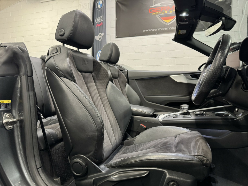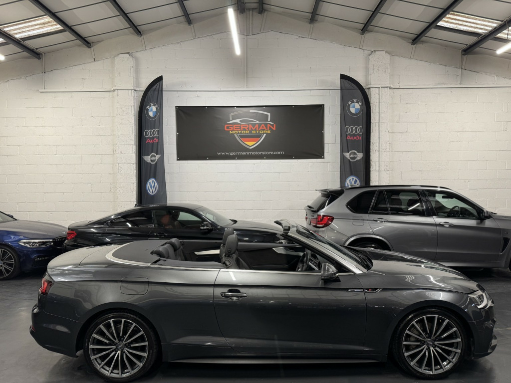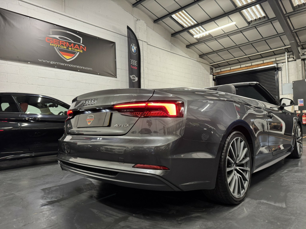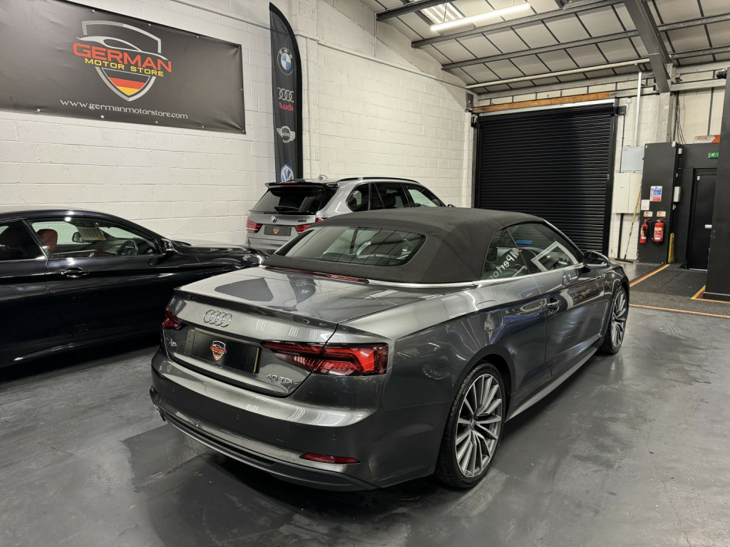 German motor store is delighted to offer this 2019 (69) Audi A5 Tdi 40 S Line convertible to market. Finished in Daytona grey with black S Line embossed leather & Alcantara trim, this sublime A5 arrives with a full-service history, and is also MOTd until September 2026. With just 2 previous keepers and only 70k miles, this stunning top of the range A5 is in epic condition throughout, very well looked after previously. Specification is very impressive offering the following.... Upgrade 19 diamond cut alloy wheels, large screen Audi media navigation, digital cockpit, parking sensors front & rear, DAB Radio, heated seats, dual zone digital climate, LED lights, electric roof, & cruise control. This car is Euro 6 ULEZ compliant meaning no inner-city charges. Viewers Will Not be Disappointed on Inspection. Part Exchange Welcome. , Viewing by appointment only!, , German Motor Store Limited is a family operated business specializing in quality used German Cars with over 30 years experience in the industry! We are authorized and registered by the FCA so can arrange finance for our customers, if necessary, through our selected finance companies. Our company aim is to independently offer quality used German vehicles at competitive prices, with an excellent and honest service backed up by dealership facilities. We are located on the out skirts of the Derbyshire Peak District in Chesterfield, 10 minutes drive from either junction 29 or 30 of the M1 Motorway. We are very relaxed here at German Motor Store you will be able to view your selected car in your own time and never feel under pressure.