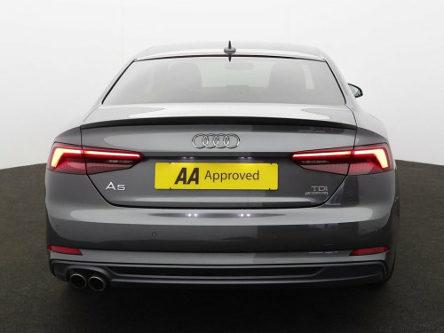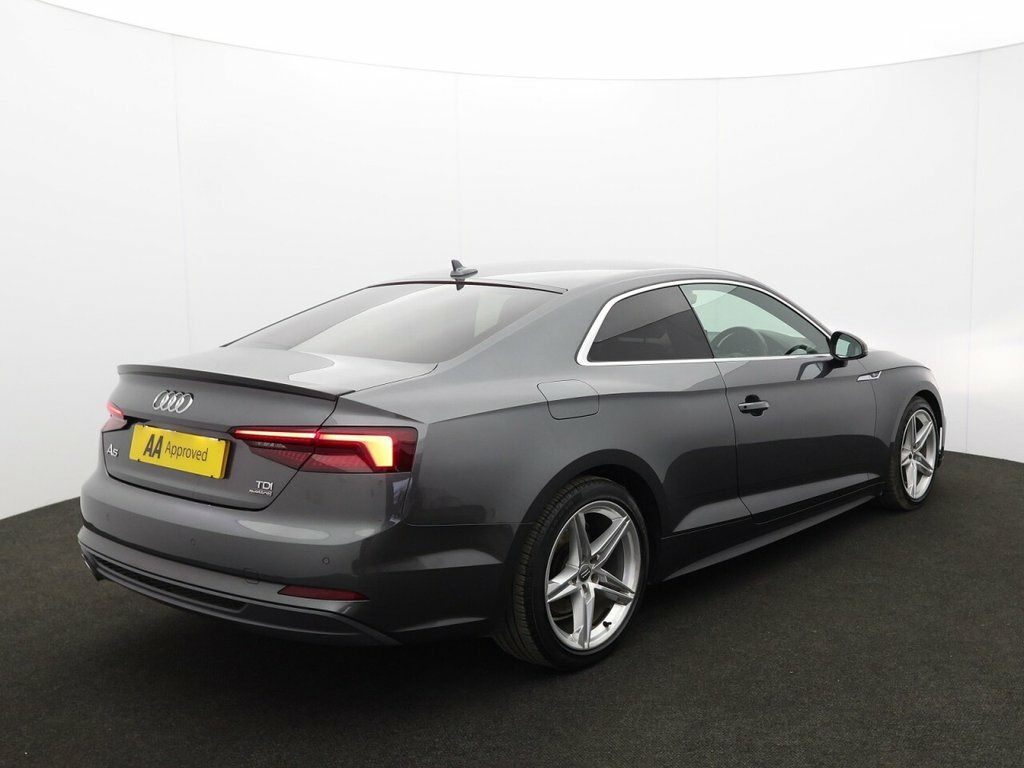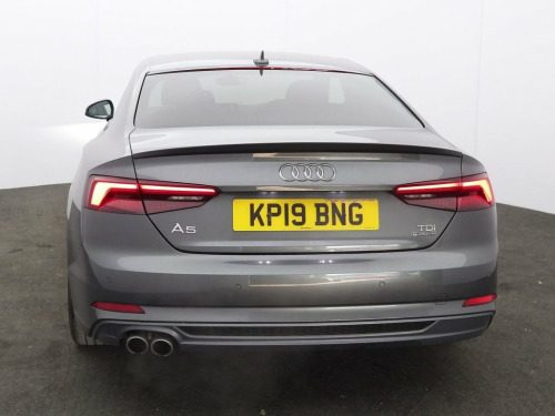 This 2019 Audi A5 TDI S line presents an exceptional opportunity with its remarkably low mileage of just 31,000 miles, significantly less than expected for a vehicle of its age. This four wheel drive model boasts a 2.0 litre diesel engine and meets Euro 6 emission standards, contributing to its low CO2 emissions. The MOT is long, and a clear vehicle history check confirms its excellent provenance. Inside, you will find the comfort of heated front seats, complemented by deluxe 3 zone electronic climate control. Further enhancing your driving experience are the advanced LED headlights with dynamic rear indicators, ensuring excellent visibility. The light and rain sensor automatically adjusts the headlights, while the Bluetooth interface allows for seamless connectivity. These features, combined with the vehicle's efficient engine and low mileage, demonstrate a superior level of specification and care compared to other similar Audi A5 models available. 2 x SDXC Card Readers, 2 x USB Charging Ports and 1 x AUX-IN, Audi Connect Infotainment Services - 3 M, Audi Connect Safety and Service, Audi Smartphone Interface, Audi Sound System, Bluetooth Interface, CD Drive, DAB Digital Radio Reception, MMI Navigation, Navigation Preparation - Ready 4 Nav, 19in Alloy Wheels - 5-Parallel Spoke Des, Air Inlets - Horizontal Inlay in Matt Al, Body Coloured Door Mirrors, Chrome-Plated Exhaust Trim, Door Mirrors - Folding, Electric Windows - Front, High Gloss Package, Honeycomb Side Air Inlet Grille in Titan, Radiator Grille in Twilight Grey with Ma, Rear Diffuser in Twilight Grey Matt with, Rear Diffuser Strip in Chrome, Rear Grille - Black Grained, S Line