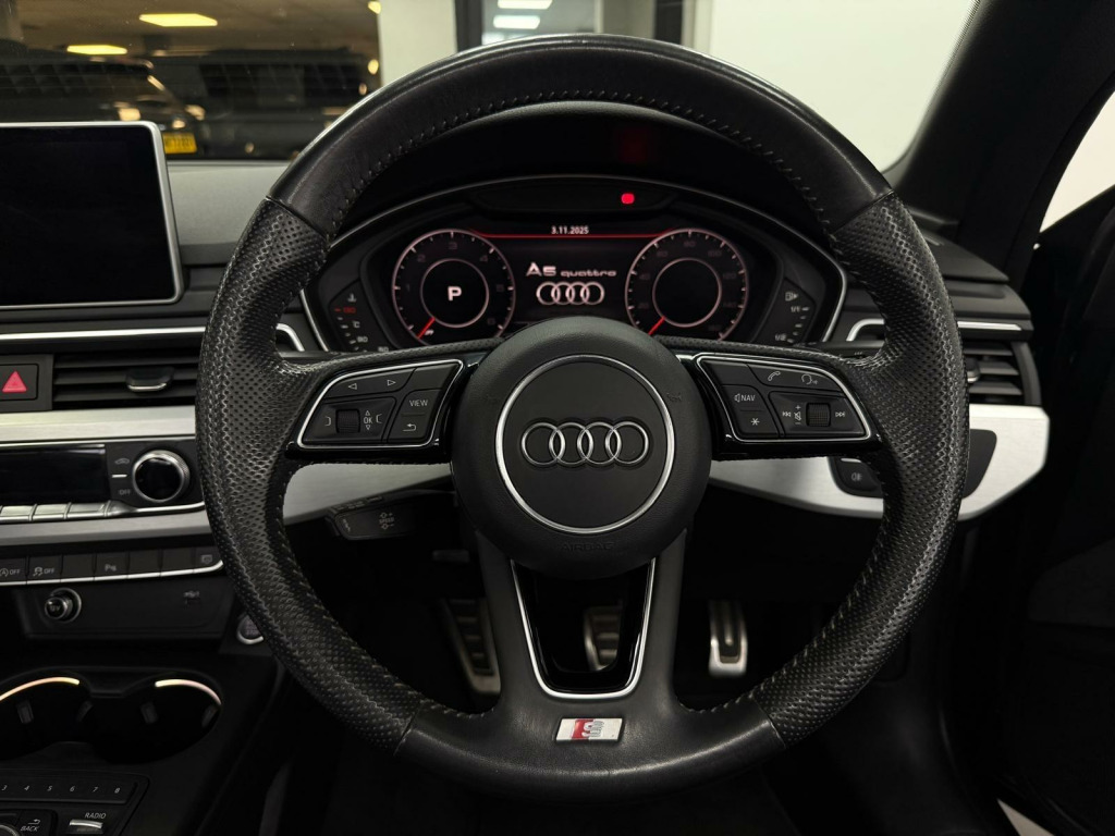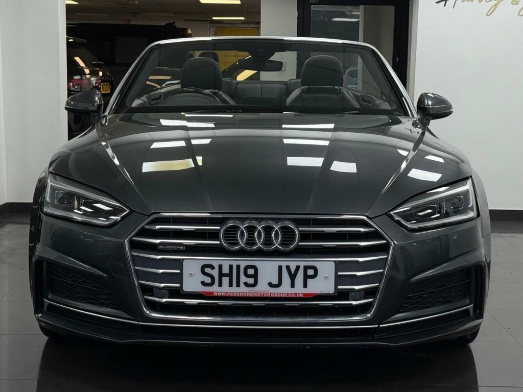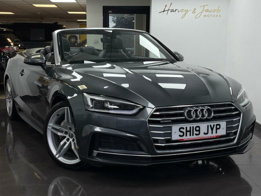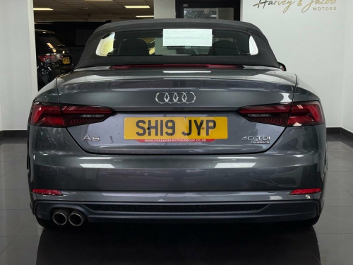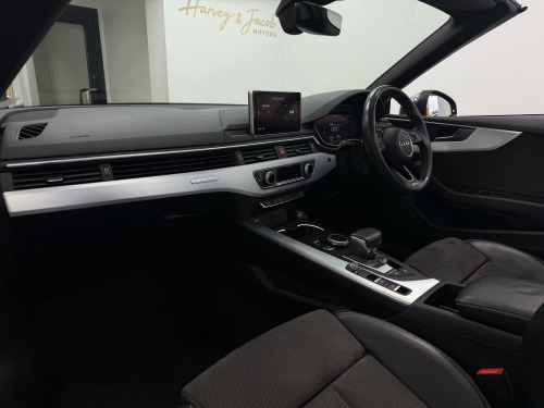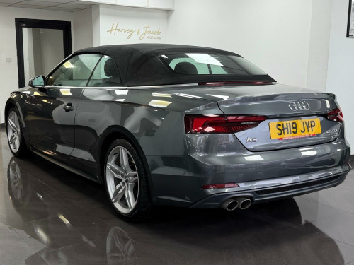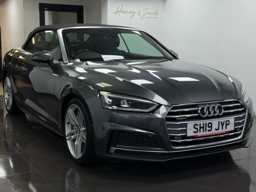 With only two owners and a full service history, this 2019 Audi A5 Cabriolet TDI S line presents a compelling proposition. This stylish convertible features a powerful 2.0 litre diesel engine, paired with a capable four wheel drive system, ensuring confident performance in all conditions. As a Euro 6 compliant vehicle, it meets stringent emission standards. The S line trim enhances its sporty appeal, and you'll appreciate the convenience of the light and rain sensor, which automatically activates the headlights. Enjoy seamless connectivity with the integrated Bluetooth interface, and experience superior illumination thanks to the LED headlights and dynamic rear indicators. For added comfort, the front seats are heated, and the deluxe 3 zone electronic climate control allows for personalised cabin temperatures.This Audi A5 Cabriolet boasts a low mileage of just 44,800 miles for its age, a testament to its careful ownership. Its impressive acceleration, reaching 0-62mph in a swift 8.0 seconds, highlights its dynamic capabilities. These factors, combined with its comprehensive features and excellent provenance, indicate that this A5 Cabriolet offers a superior driving experience compared to other vehicles in its class. in alloy wheels - 5-parallel spoke design, 2 x sdxc card readers, 2 x usb charging ports and 1 x aux-in, 4-way electric lumbar support, 6-airbag system, acoustic hood - fully automatic, acoustic soft top - black, air inlets - horizontal inlay in matt aluminium, anti theft locking wheel bolts, anti-theft alarm, audi connect infotainment services - 3 month trial, audi connect safety and service, audi drive select, audi smartphone interface, audi sound system, auto-dimming rear-view mirror, black hood, bluetooth interface, body coloured door mirrors, cd drive, chrome-plated exhaust trim, cloth headlining in black, colour drivers information system with 7in high-resolution tft screen, contrast stitching on seats - steering wheel and gear lever gaiter, cruise control with speed limiter, dab digital radio reception, deluxe 3-zone electronic climate control, door mirrors - folding, esc - electronic stabilisation control inc abs - asr and edl, electric windows - front, electromechanical parking brake, electromechanical power steering, first aid kit and warning triangle, front centre armrest, front and rear floor mats, fully automatic hood tray, gear lever knob in black perforated leather, heated front seats, high gloss package, high multi-function 3-spoke leather steering wheel with grips in perforated leather and s badging, high-beam assist, hill hold assist, honeycomb side air inlet grille in titan black, isofix child seat mounting and top tether, illuminated door sill trims with s logo, inlays - matt brushed aluminium, interior lighting, keyless go, led headlights with led rear lights and dynamic rear indicators, led interior light package, light and rain sensor, luggage compartment mat, mmi navigation, manual seat adjustment, multi collision brake assist, navigation preparation - ready 4 nav, non-smoking package, parking system plus, pedals and footrest - stainless steel, pop-up bonnet for pedestrian protection, pre-sense city, radiator grille in twilight grey with matt aluminium inlays, rear diffuser strip in chrome, rear diffuser in twilight grey matt with honeycomb grille, rear grille - black grained, s line badges on front wings, s line front and rear bumpers, s line side skirts in black, seat belt microphone, seat belt monitoring, space saver spare wheel, split-folding 3-seater rear seat bench in 3 parts - 40-20-40, sport suspension, tool kit and car jack, tyre pressure warning light, variable restraint system, voice control system, windscreen with acoustic glazing, technology package, audi side assist including pre-sense rear