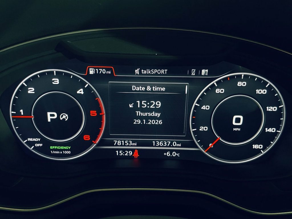 Audi A5 S Line Sportback Auto – Daytona Grey Metallic Registration: KM19 UVC | Mileage: 77,000 miles | ULEZ Compliant This Audi A5 S Line Sportback Automatic is finished in Metallic Daytona Grey and has covered 77,000 miles from new. It offers sleek styling, advanced technology, and a premium interior. Exterior & Styling: S Line Exterior Styling Metallic Daytona Grey Paintwork Interior & Comfort: Partial Leather Interior with Embossed S Line Seats Heated Front Seats Multifunction Steering Wheel Technology & Connectivity: Audi Virtual Cockpit Satellite Navigation Bluetooth Media Connectivity Apple CarPlay Safety & Driver Assistance: Parking Sensors Cruise Control Vehicle Checks & Assurance: AA 128-Point Inspection Passed (Report Available) Free HPI Certificate Provided Nationwide Warranty Packages Available Any Inspection Welcome Emissions & Compliance: ULEZ Compliant Additional Information: Up to 20 Photos Available on Our Website Indoor Viewing Available Over 100 Cars in Stock Debit Card Payments Accepted Approved Finance Partner (Consumer Credit Licence Held) Part Exchange Welcome Private Plate Transfers Available Delivery Service Available on Request Vehicle Can Be Reserved with a Deposit. Privacy Glass - Side and Rear Windows, Technology Package, Daytona Grey, 19in Alloy Wheels - 5-Parallel Spoke Des, 2 x SDXC Card Readers, 2 x USB Charging Ports and 1 x AUX-IN, 4-Way Electric Lumbar Support, 6-Airbag System, Air Inlets - Horizontal Inlay in Matt Al, Anti Theft Locking Wheel Bolts, Anti-Theft Alarm, Audi Connect Infotainment Services - 3 M, Audi Connect Safety and Service, Audi Drive Select, Audi Smartphone Interface, Audi Sound System, Auto-Dimming Rear-View Mirror, Bluetooth Interface, Body Coloured Door Mirrors, CD Drive, Chrome-Plated Exhaust Trim, Cloth Headlining in Black, Colour Drivers Information System with 7, Contrast Stitching on Seats - Steering W, Cruise Control
